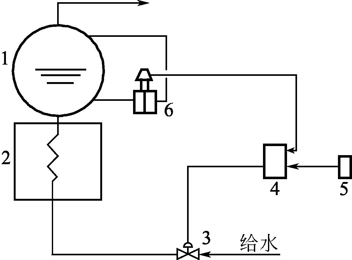 1—汽包;2—加热器;3—调节阀;4—调节器;5—给定器;6—变送器