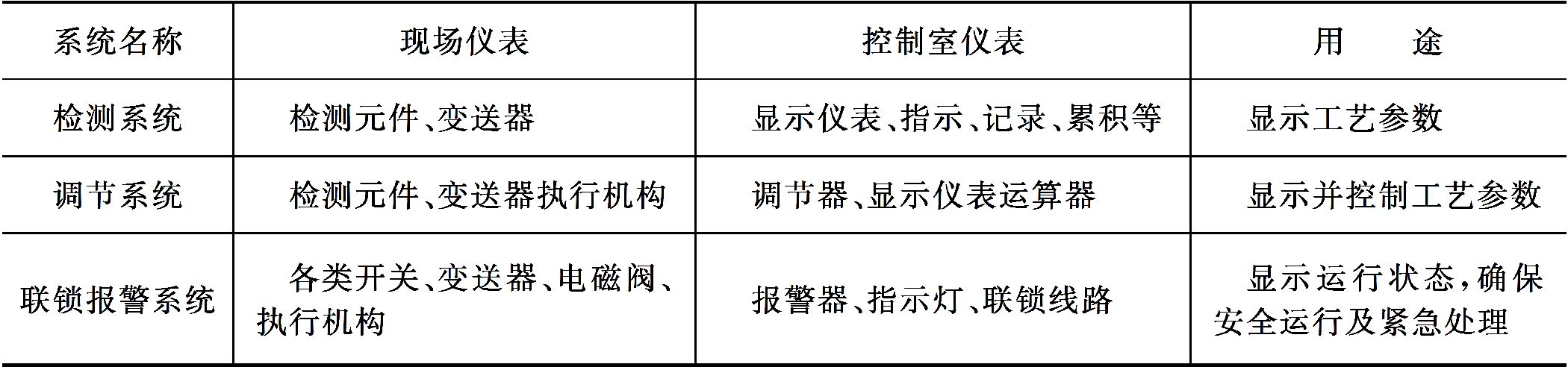 (1)检测仪表 检测仪表是测量化工参数的基本仪表。通常按测量参数的性质来分,可以分为四大类型:压力仪表、温度仪表、流量仪表和物位仪表。此外还有气体成分分析仪表。