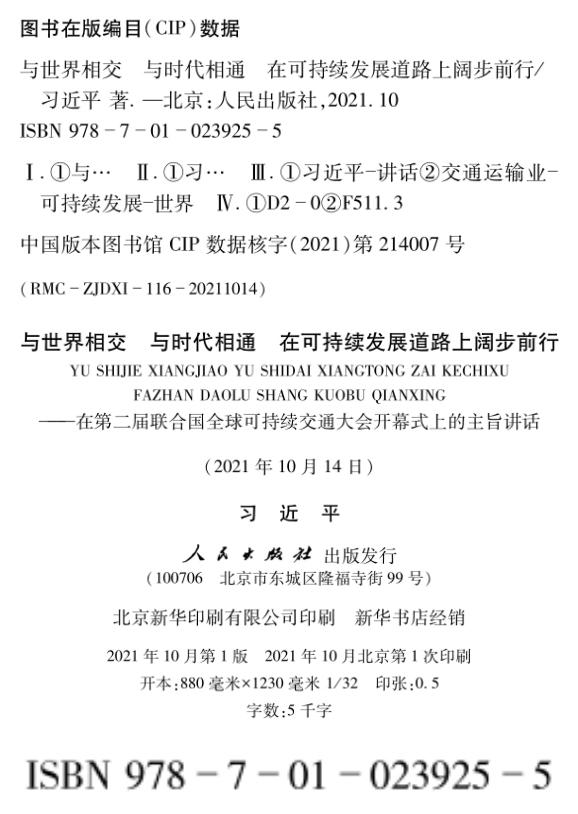 中国将继续推进高质量共建“一带一路”,加强同各国基础设施互联互通,加快建设绿色丝绸之路和数字丝绸之路。我宣布,中方将建立中国国际可持续交通创新和知识中心,为全球交通发展贡献力量。