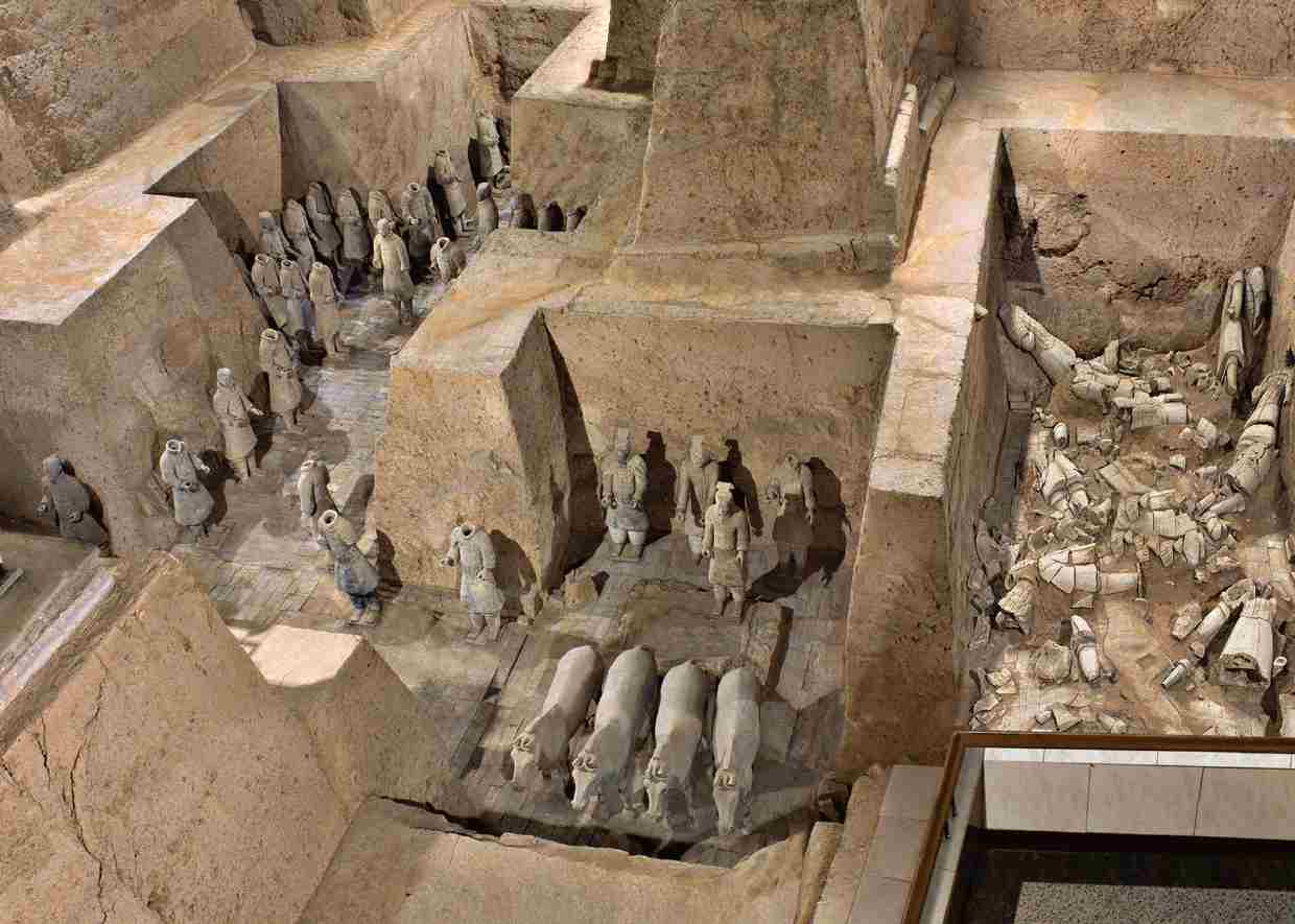 三号坑的面积虽小,但内部结构复杂,陶俑的身份亦较特殊:俑与俑是呈面对面夹道式排列,像担任警卫任务的卫士。因此三号坑有可能是统率一、二号兵马俑军队的指挥部。