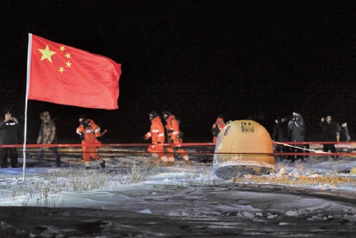 2020年12月17日凌晨,“嫦娥五号”返回器携带月球样品返回,在内蒙古四子王旗预定区域安全着陆