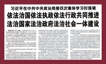 2013年2月23日,习近平总书记在主持十八届中央政治局第四次集体学习时强调,要全面推进科学立法、严格执法、公正司法、全民守法,坚持依法治国、依法执政、依法行政共同推进,坚持法治国家、法治政府、法治社会一体建设,不断开创依法治国新局面