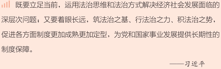 治理一个国家、一个社会,关键是要立规矩、讲规矩、守规矩。法律是治国理政最大、最重要的规矩。推进国家治理体系和治理能力现代化,必须坚持依法治国,为党和国家事业发展提供根本性、全局性、长期性的制度保障。