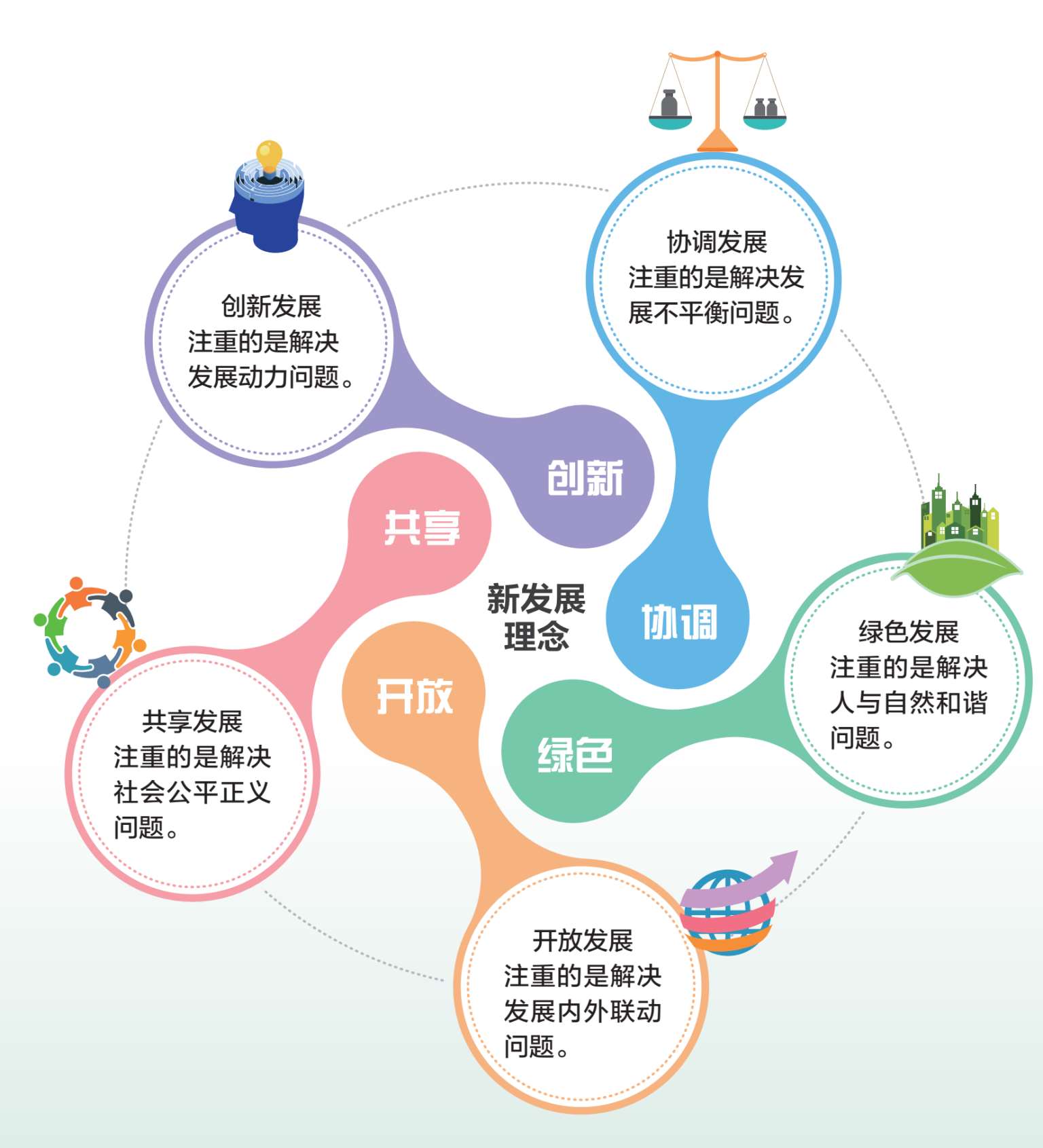 创新、协调、绿色、开放、共享的新发展理念,是引领我国发展的指挥棒、红绿灯。我们要以新发展理念引领高质量发展,将其落地生根、变成普遍实践,真正做到崇尚创新、注重协调、倡导绿色、厚植开放、推进共享。