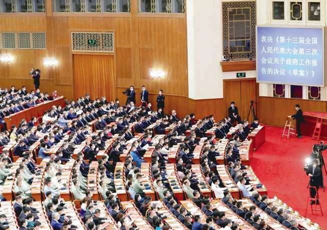 2020年,全国人大代表表决《第十三届全国人民代表大会第三次会议关于政府工作报告的决议(草案)》