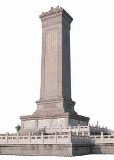 天安门广场上矗立着人民英雄纪念碑,碑身正面镌刻着毛泽东的题词“人民英雄永垂不朽”,背面是毛泽东起草、周恩来题写的碑文: