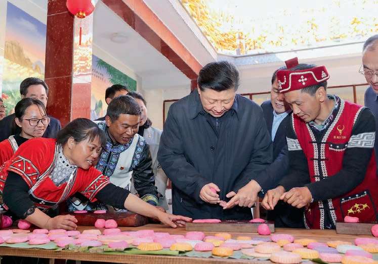 2020年1月,习近平爷爷来到云南省腾冲市清水乡司莫拉佤(wǎ)族村,同村民李发顺一家制作当地节日传统食品大米粑(bā)粑。