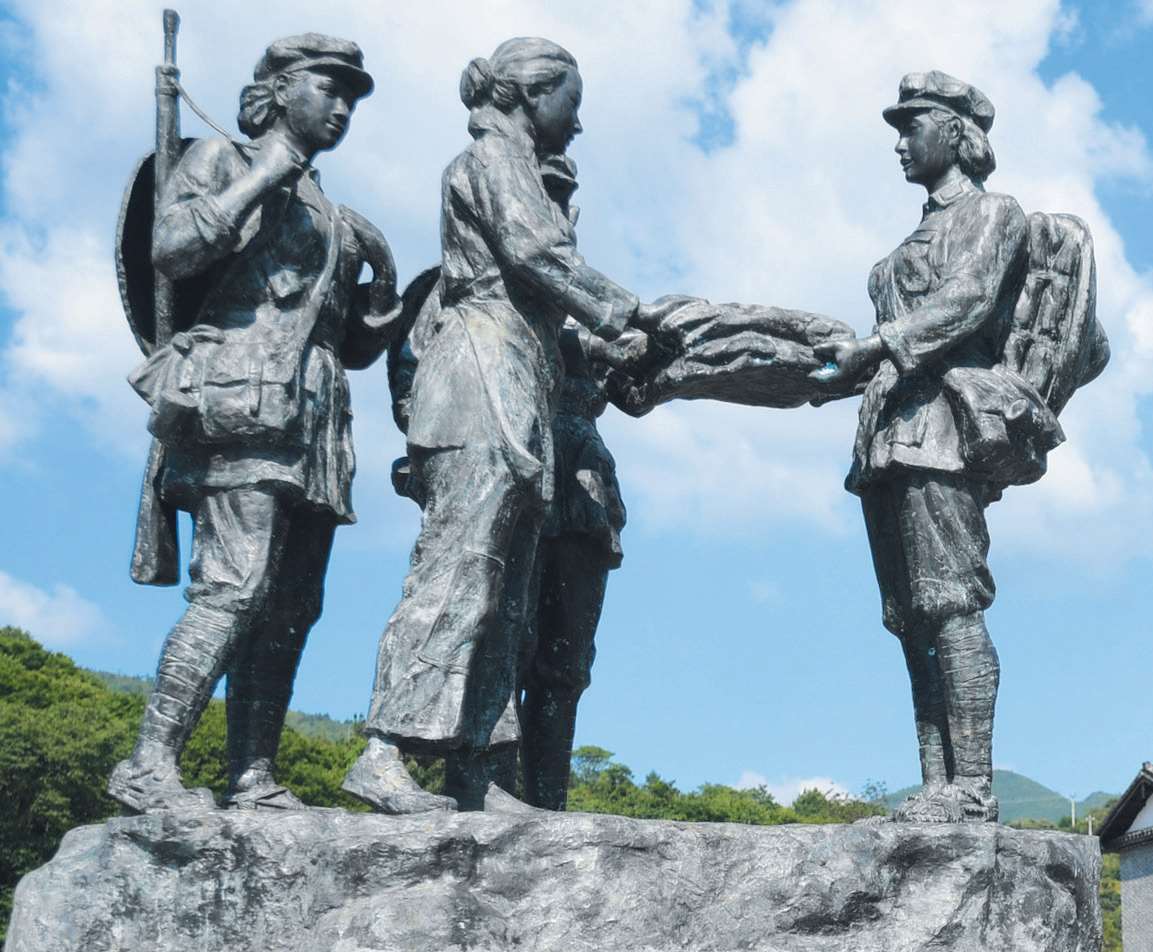 革命战争年代,在山东沂(yí)蒙这片红色土地上,有一群无私奉献的沂蒙妇女被人们称为“红嫂”。她们送子参军、送夫支前,缝军衣做军鞋、抬担架推小车,舍生忘死救伤员,谱写了一曲曲水乳交融的军民鱼水情。据不完全统计,她们共做军鞋315万双,做军衣122万件,碾(niǎn)米碾面11716万斤,动员参军参战20万人,救护病员6万人,掩护革命同志9万多人。