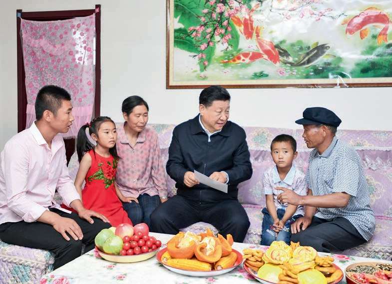 2019年8月,习近平爷爷来到甘肃省古浪县黄花滩生态移民区,看望富民新村的乡亲们。他同村民李应川一家人亲切交谈。