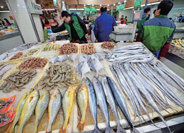 这里的东西好丰富,鱼、肉、蛋、蔬菜、水果样样都有。