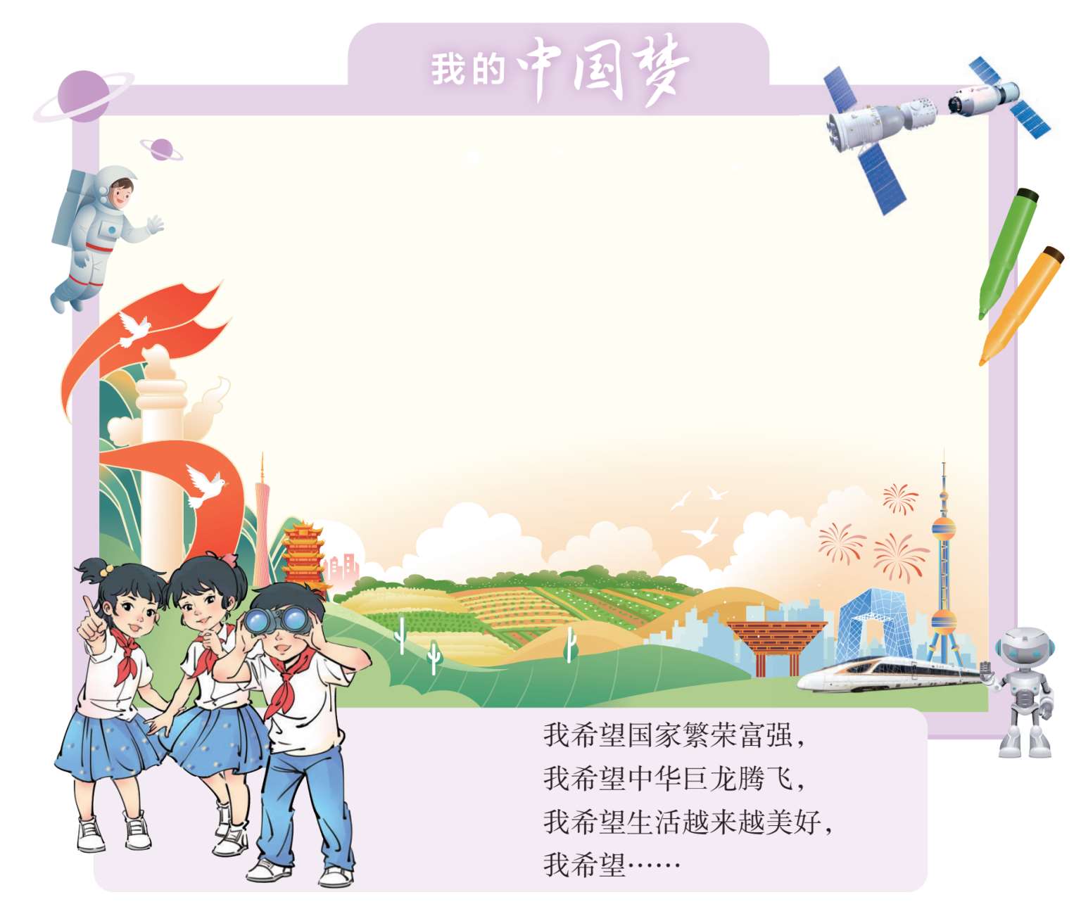 今天我们是祖国的好儿童,明天要当祖国的建设者。我们要好好学习、天天向上,时刻准备着为实现中华民族伟大复兴的中国梦贡献力量。