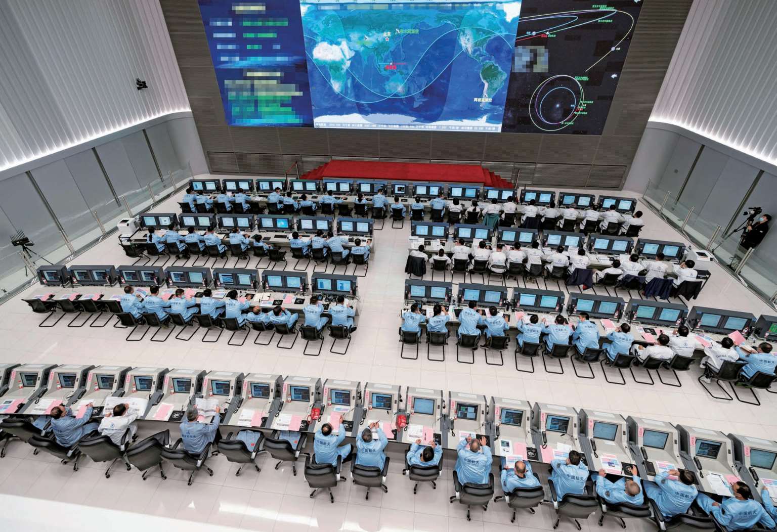 北京飞行控制中心的指挥员们在工作
