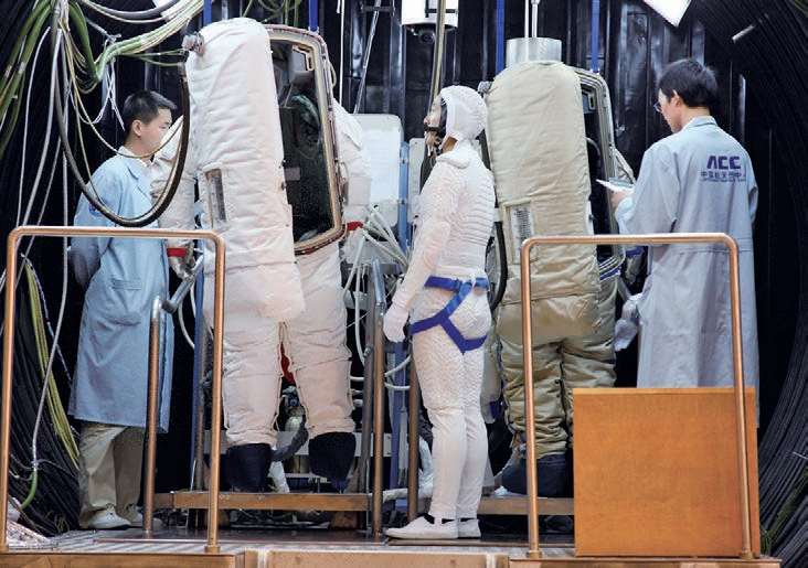 航天员准备进入低压舱锻炼耐受力