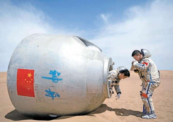 航天员在模拟(nǐ)返回舱内进行训练