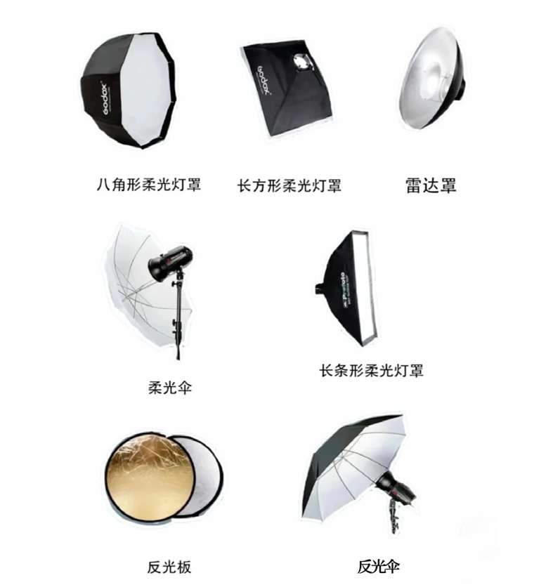 在拍摄短视频的过程中,光线的运用直接影响着最终成片的质量。一般情况下,为了避免画面昏暗、细节丢失,创作者会使用灯光设备来提高画面的亮度。并且,合理布置灯光能够有效减少阴影,使画面更加通透、色彩更加饱满,从而给观众带来舒适的视觉体验。常用的灯光设备如图1-5所示。