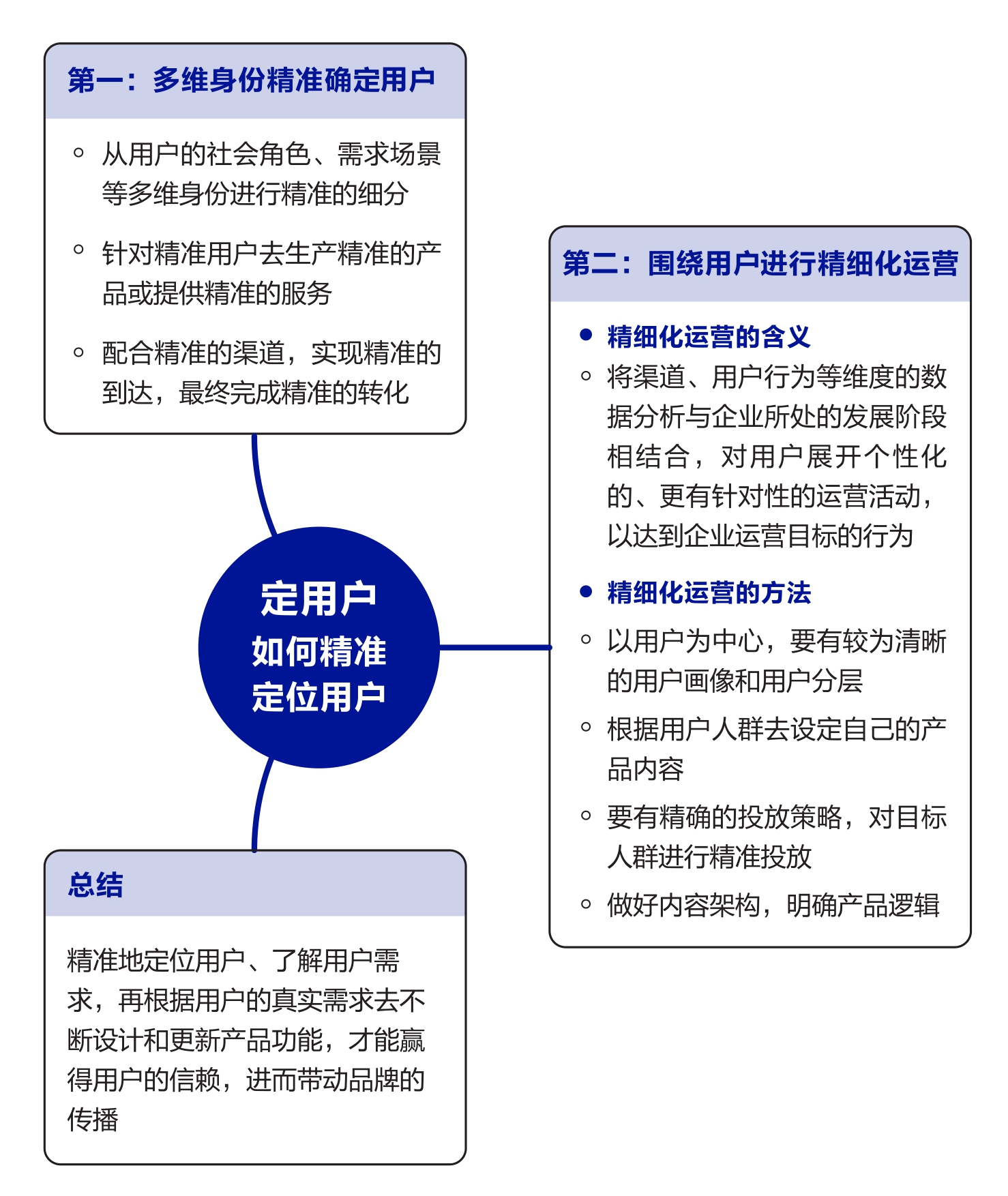 通过这个案例可以发现,不同人对同一件事的理解可能也是完全不同的。所以,在定位用户时,企业更需要从用户的社会角色、需求场景等多维身份进行精准细分,再针对精准用户去生产精准的产品或提供精准的服务,并且配合精准渠道,实现精准到达,最终完成精准转化。