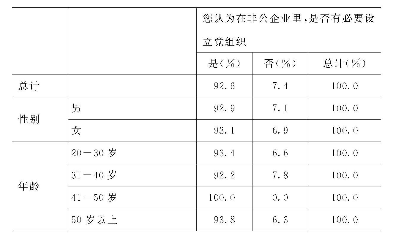 11.不同性别、年龄、教育、收入、党组织关系所在地的党员,认为在非公企业里是否有必要设立党组织的百分比