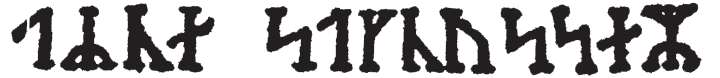 叔叔又把眼镜推到额头上,拿起一个大倍数的放大镜,仔细地检查该书的头几页。在第二页的背面,亦即有副标题的那一页,他发现了一些污迹,乍看上去,像是墨水渍。可是,再仔细地观看,却可以辨认出一些大半被擦去了的字母来。叔叔认为这可是值得加以探究的,于是,他认真仔细地辨认起这些字迹来。凭借那个大倍数的放大镜,他终于认出了以下的这些符号,而且认出那也是卢尼字母,便毫不犹豫地读了出来: