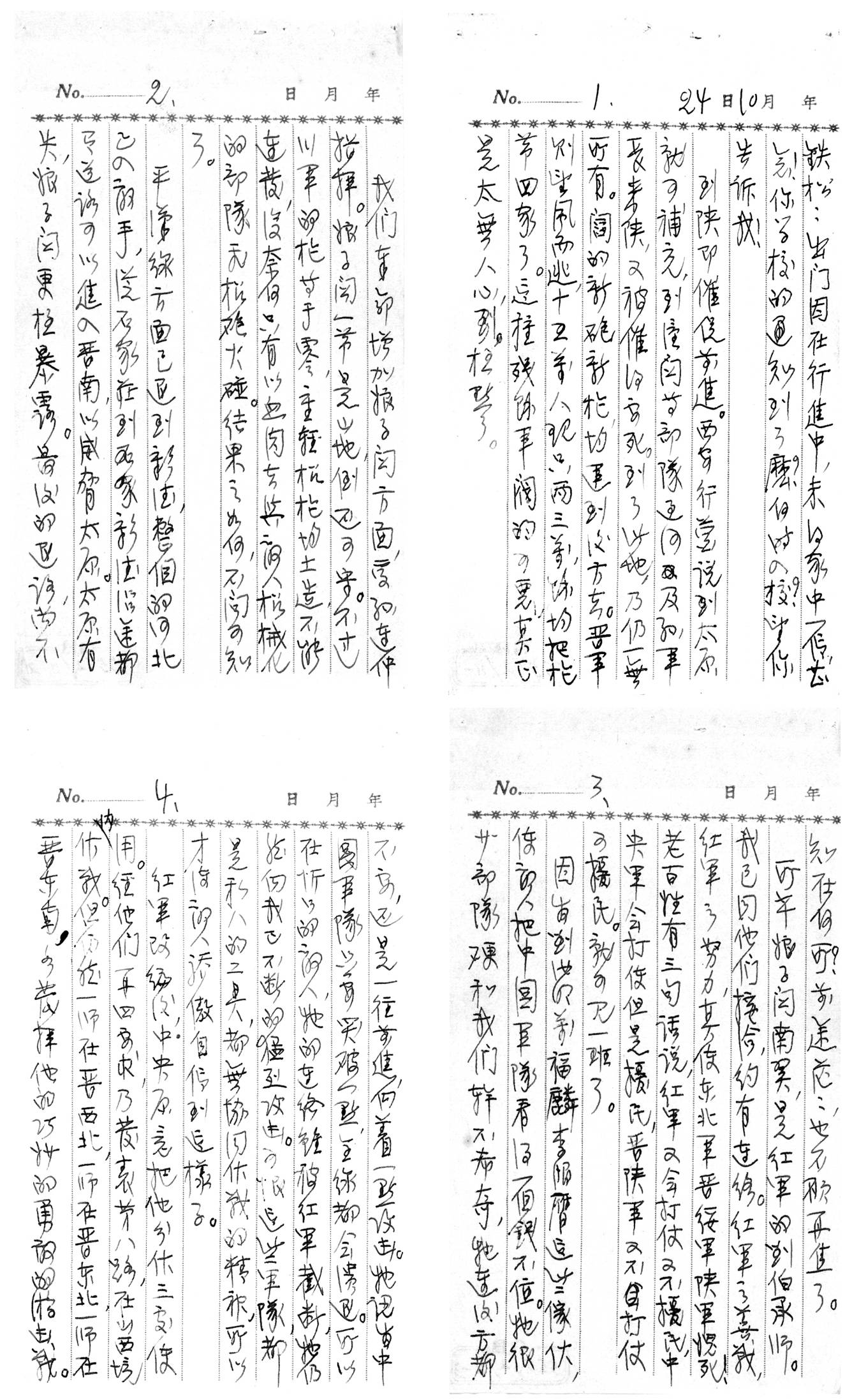 所幸娘子关南翼,是红军的刘伯承师。我已同他们接洽,约有连络。红军之善战,红军之努力,真使东北军、晋绥军、陕军愧死!老百姓有三句话说,红军又会打仗又不扰民,中央军会打仗但是扰民,晋陕军又不打仗又扰民。就可见一班〔斑〕了。