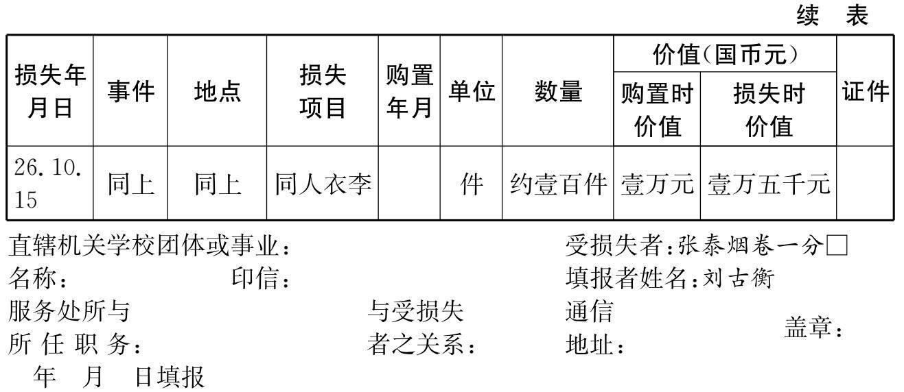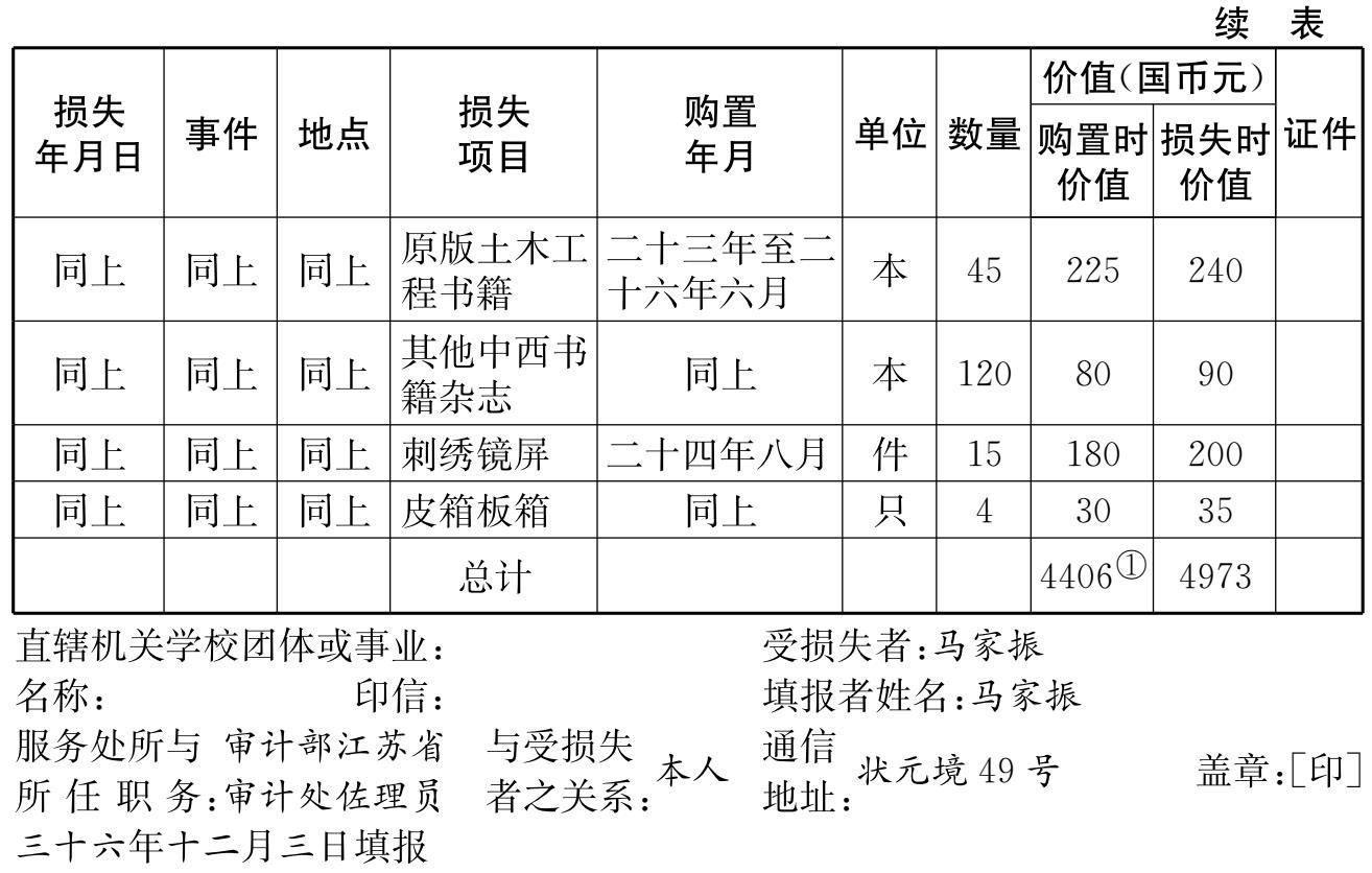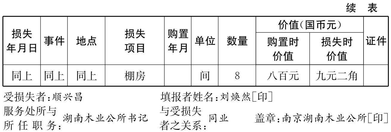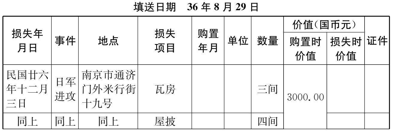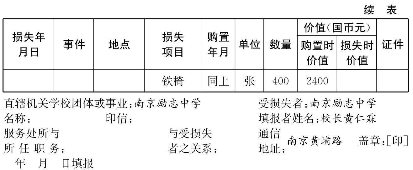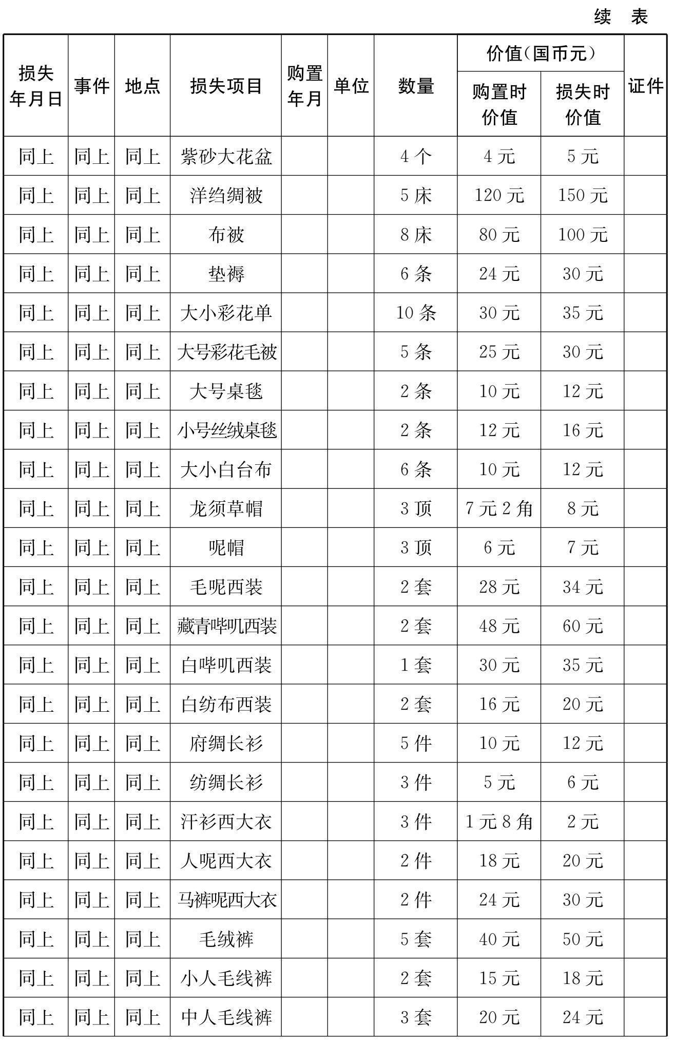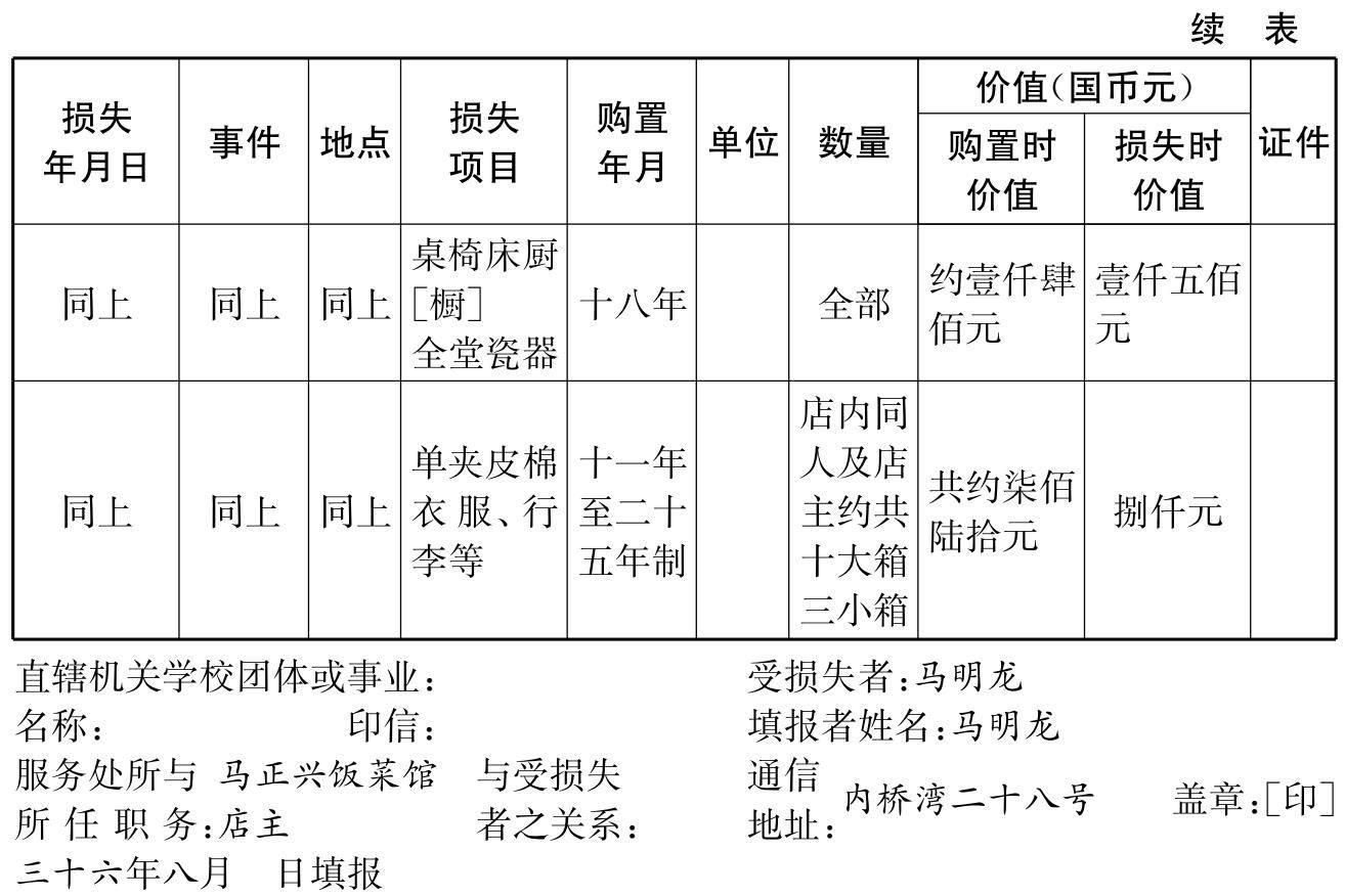 ② 本格及其上面几格填写位置可能有误,疑为“损失时价值”。原档如此。