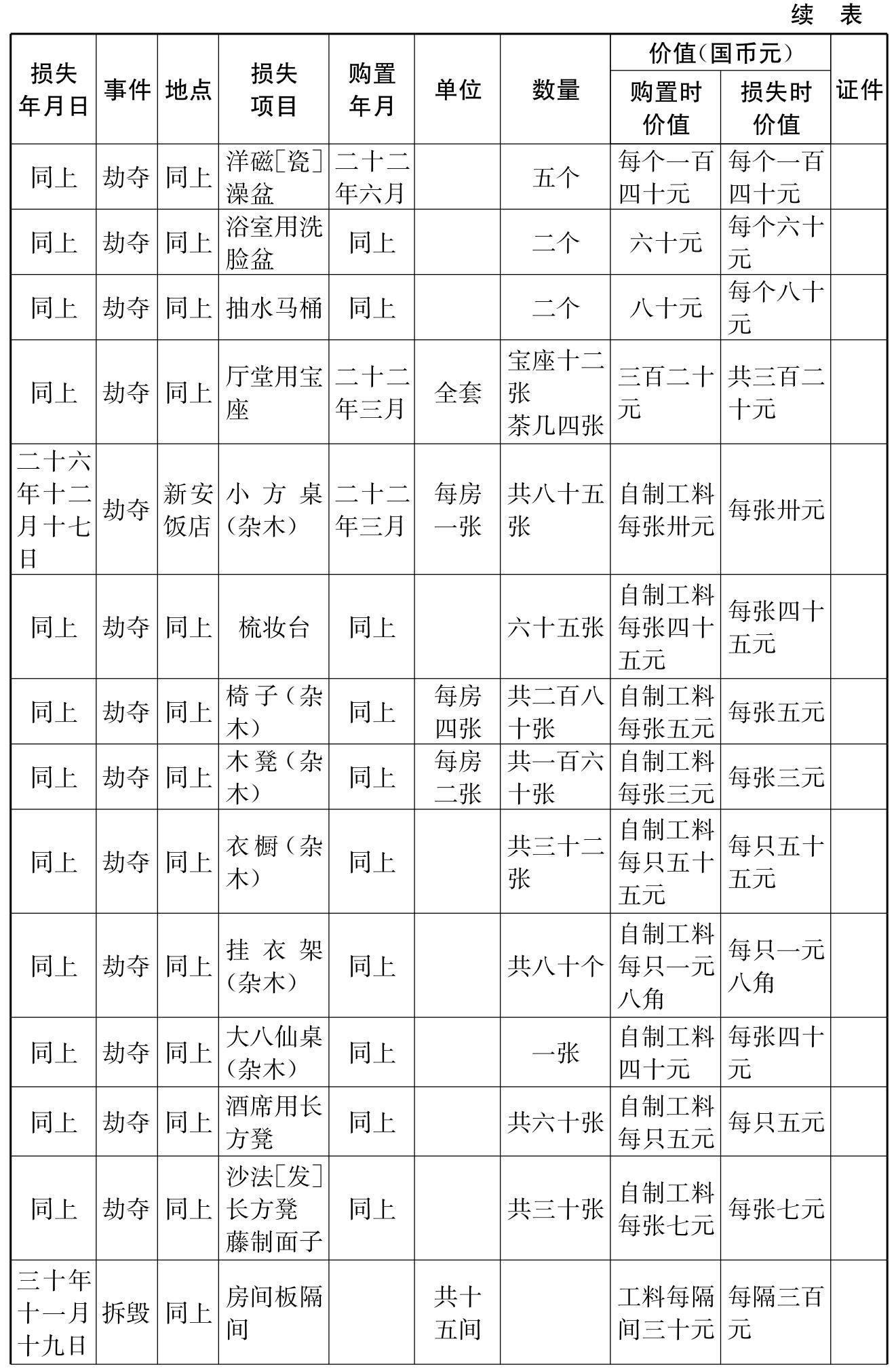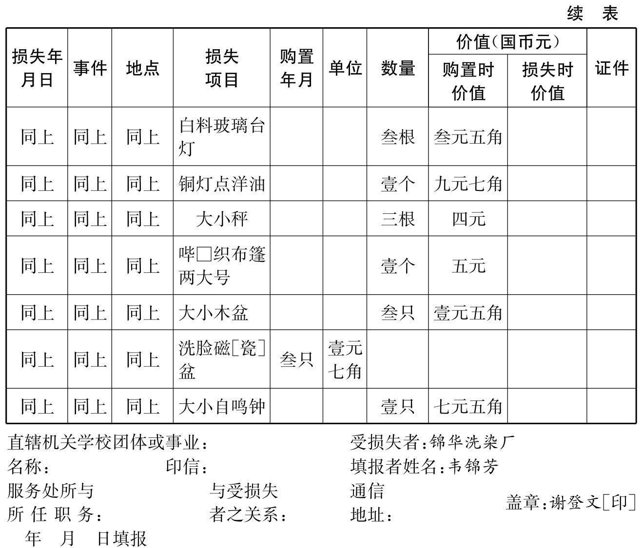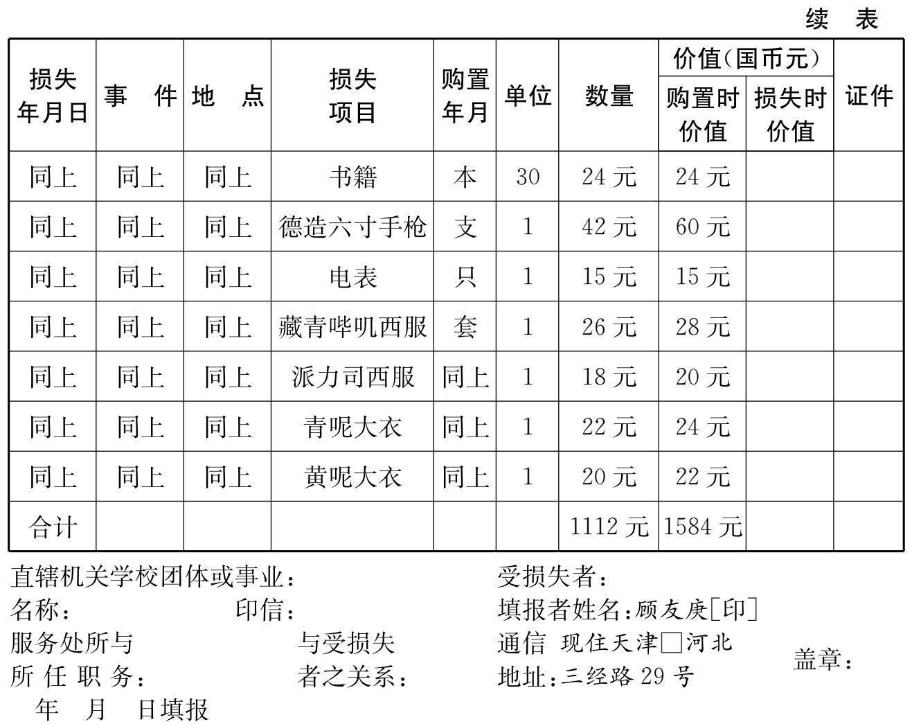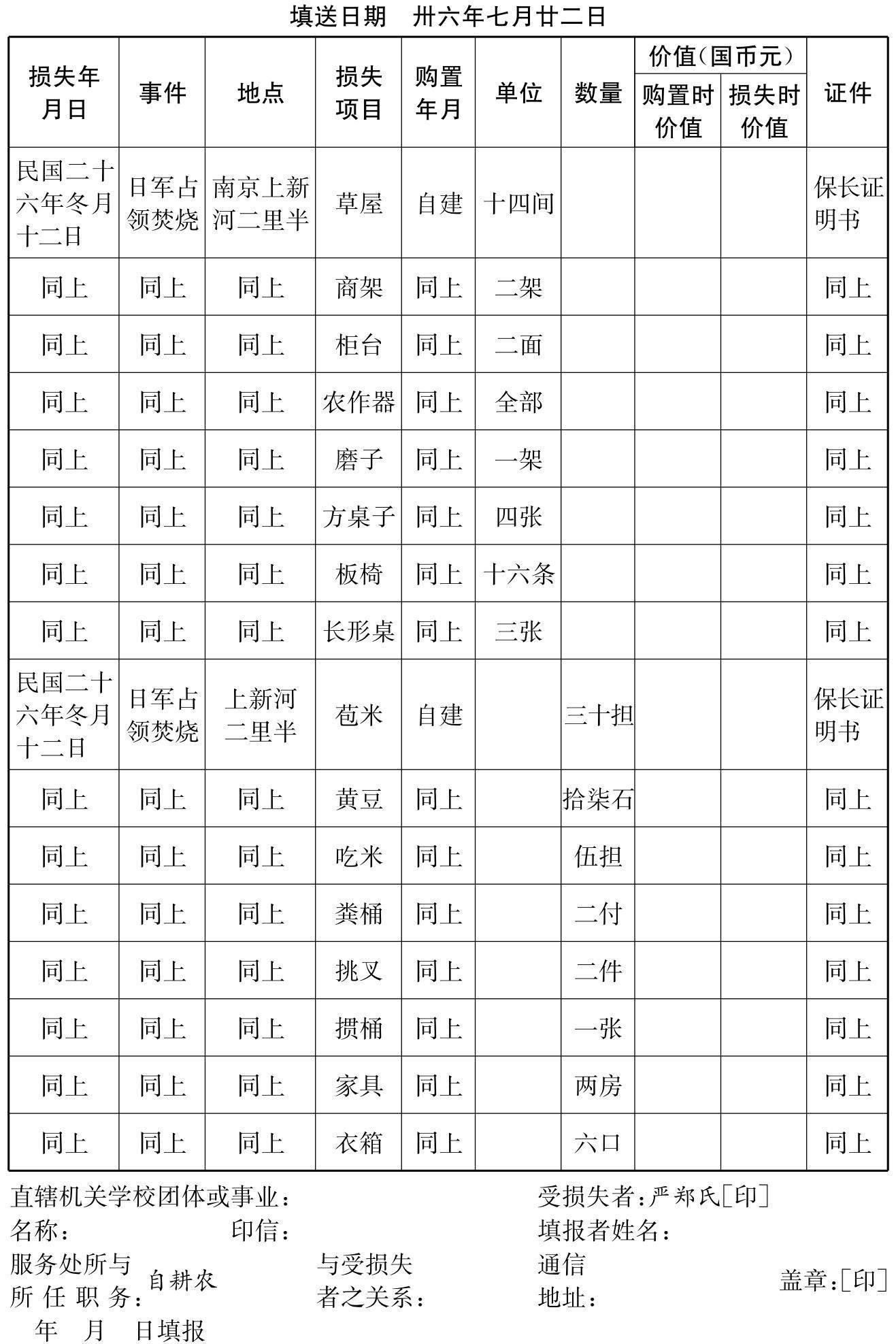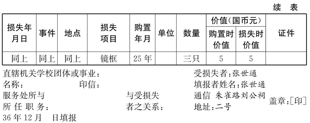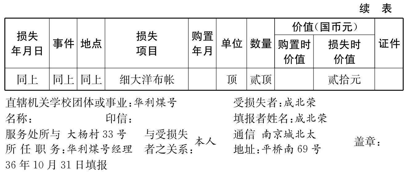 ② 本格及其上面几格填写位置可能有误,疑为“损失时价值”。原档如此。