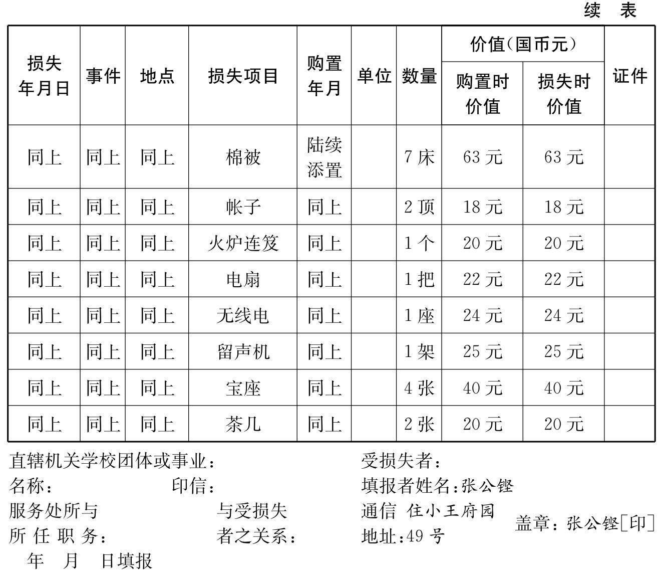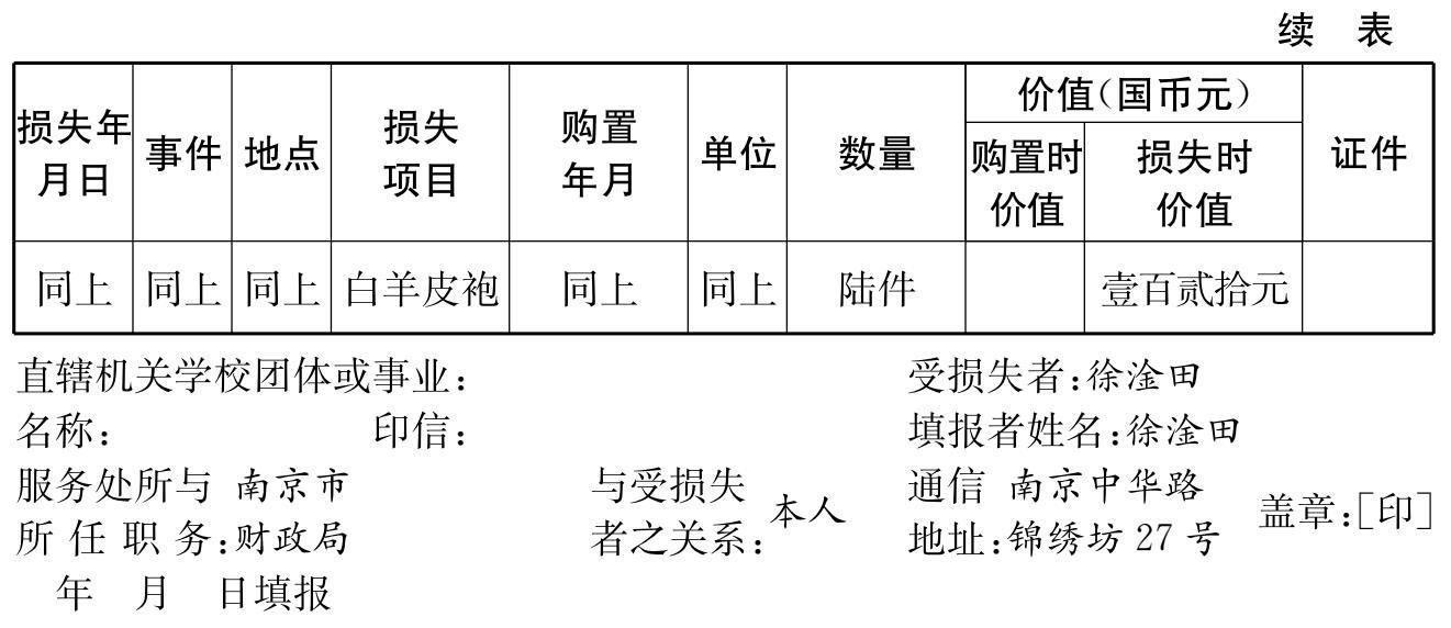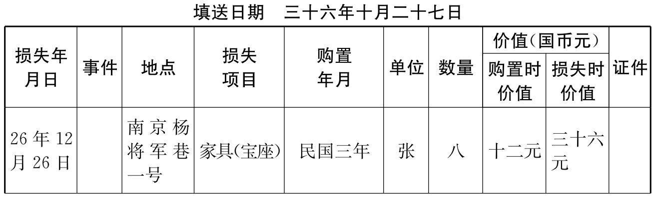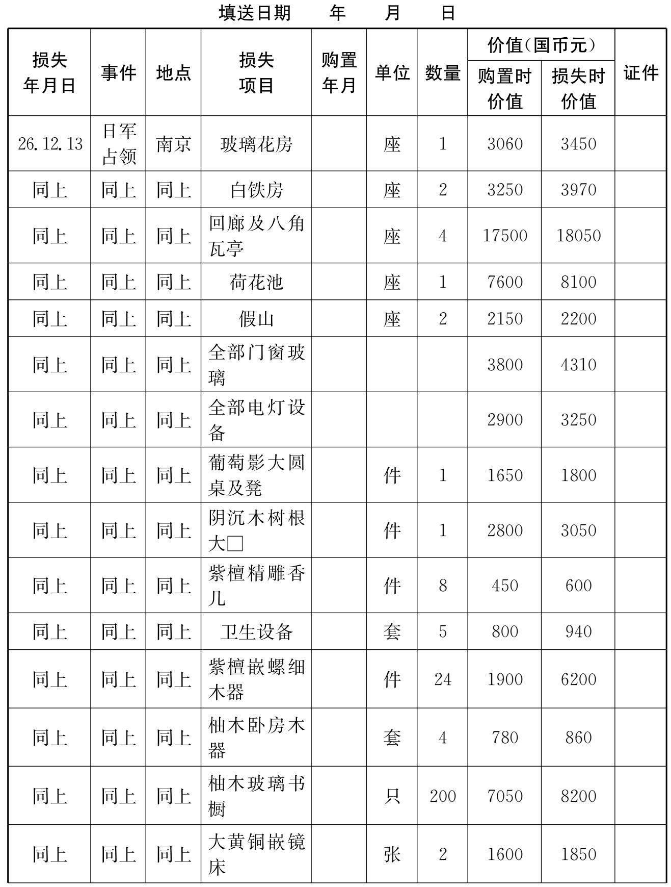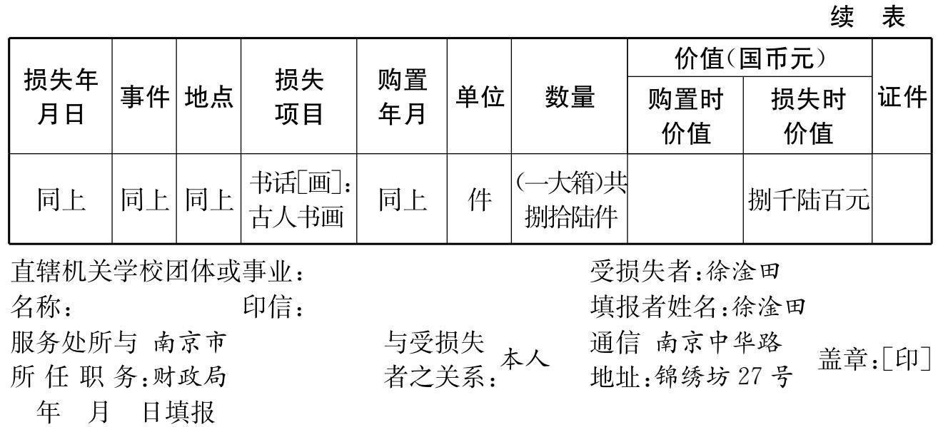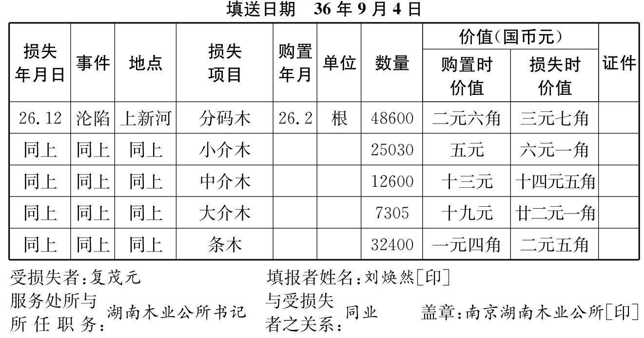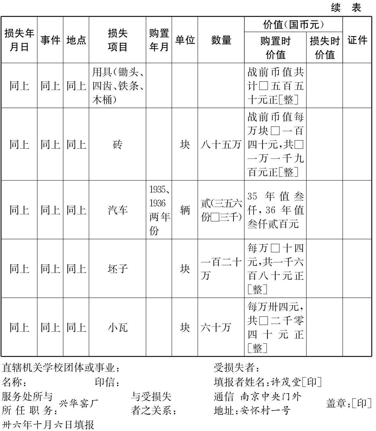 ② 本格及其上面几格填写位置可能有误,疑为“损失时价值”。原档如此。