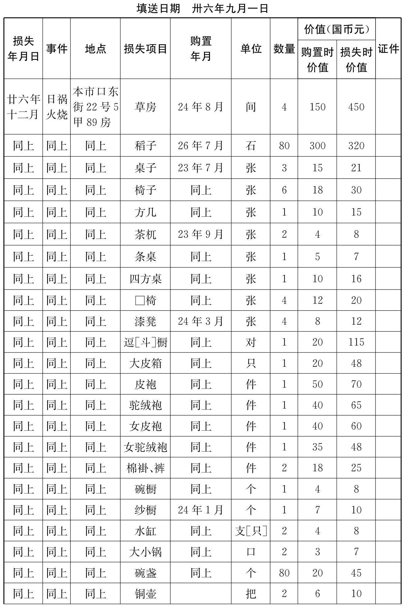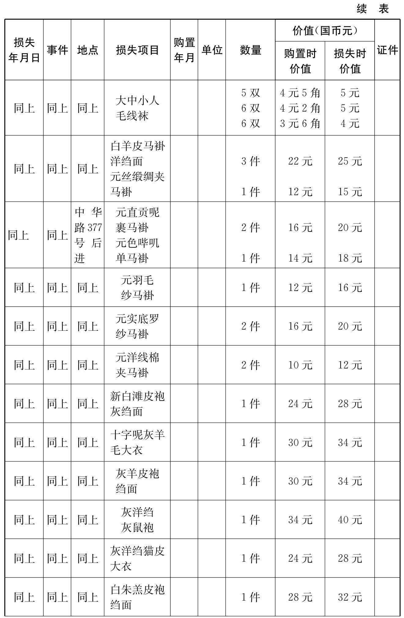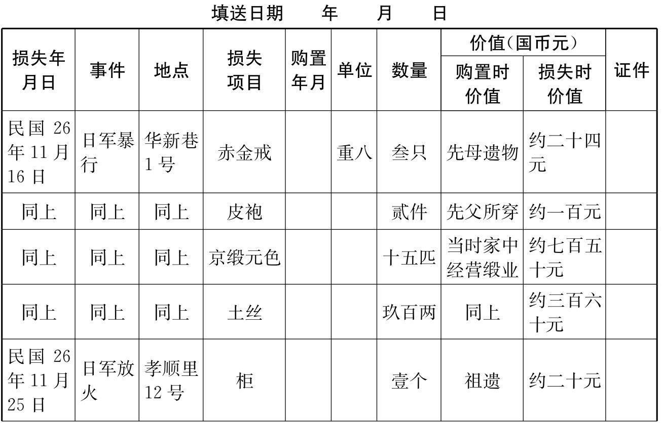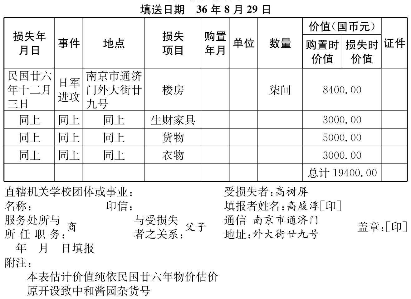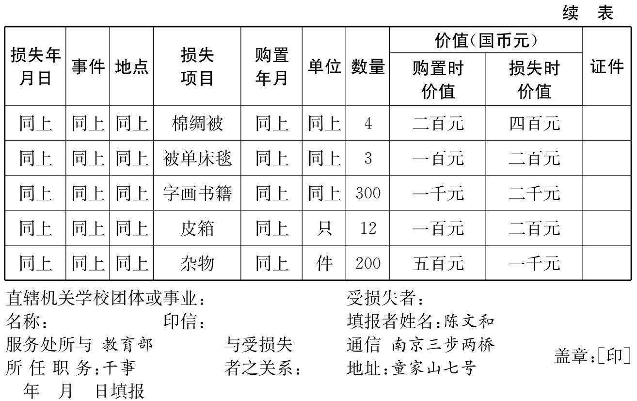 ② 本格及其上面几格填写位置可能有误,疑为“损失时价值”。原档如此。