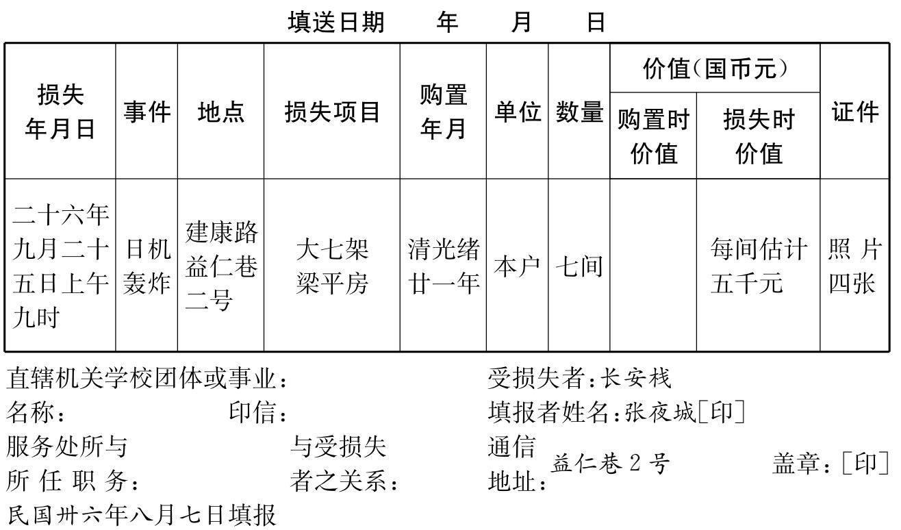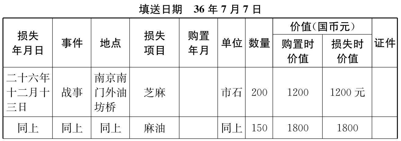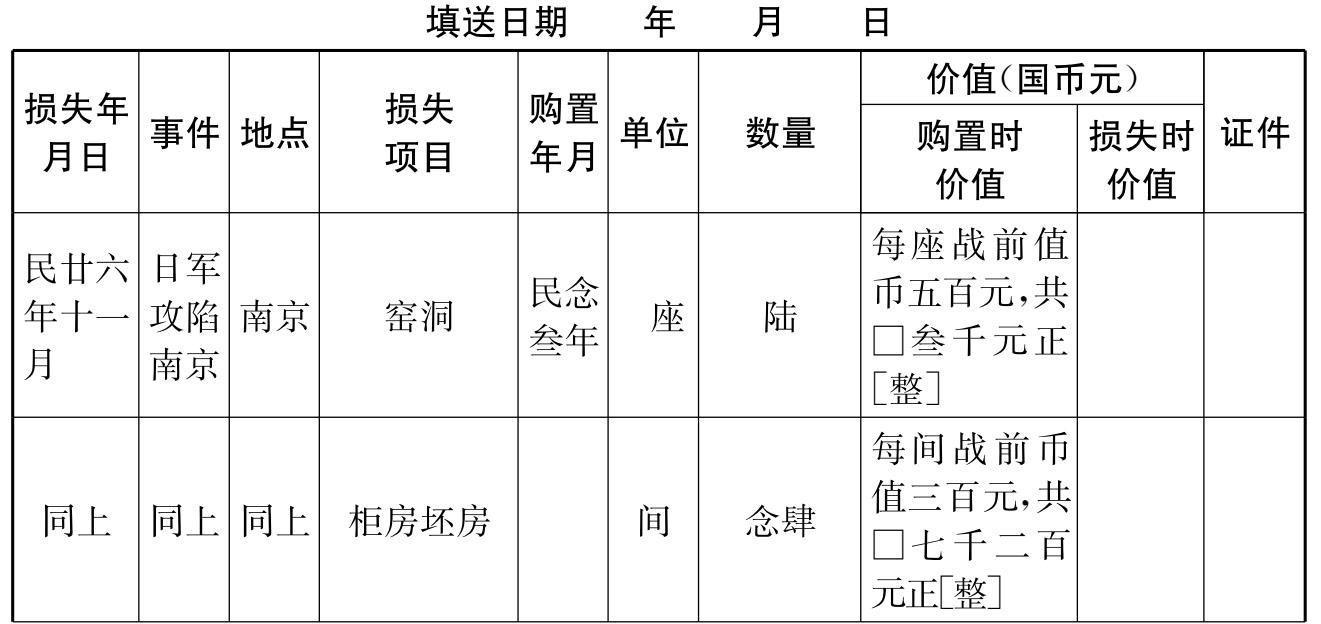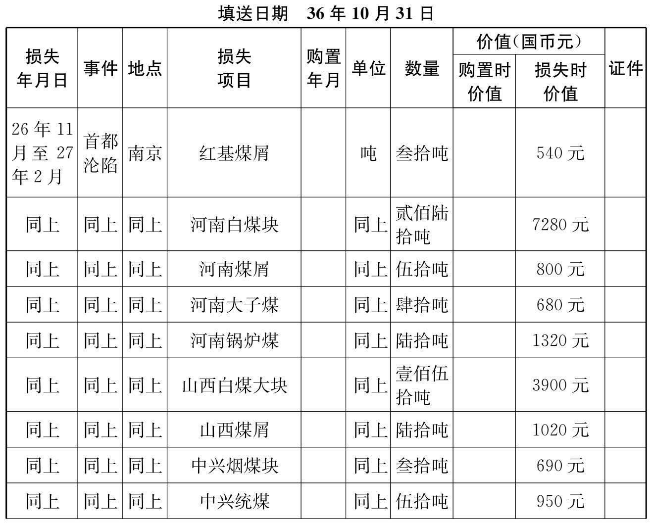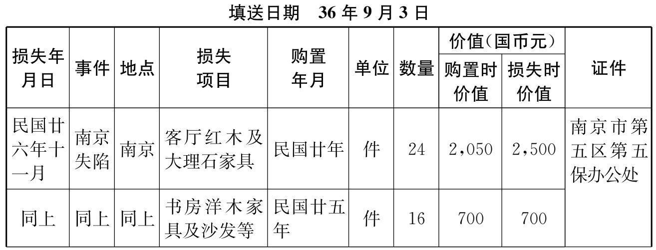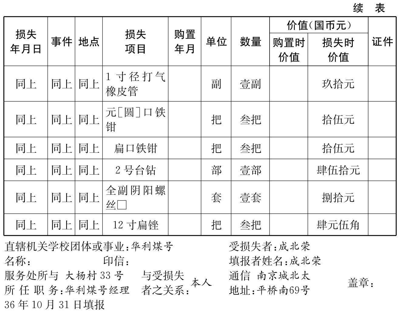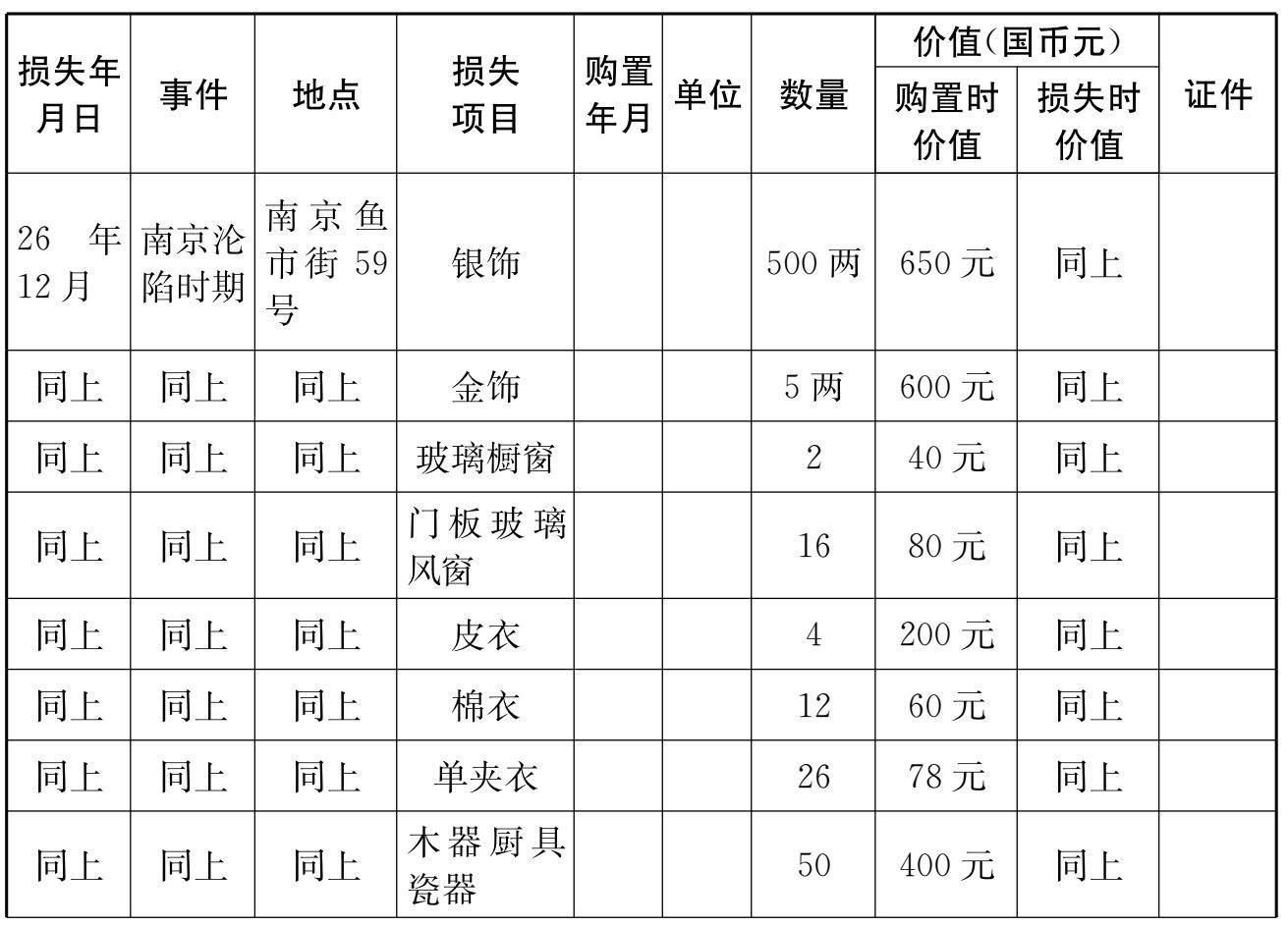 ② 本格及其上面几格填写位置可能有误,疑为“损失时价值”。原档如此。
