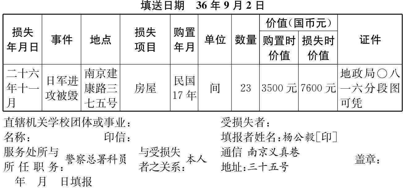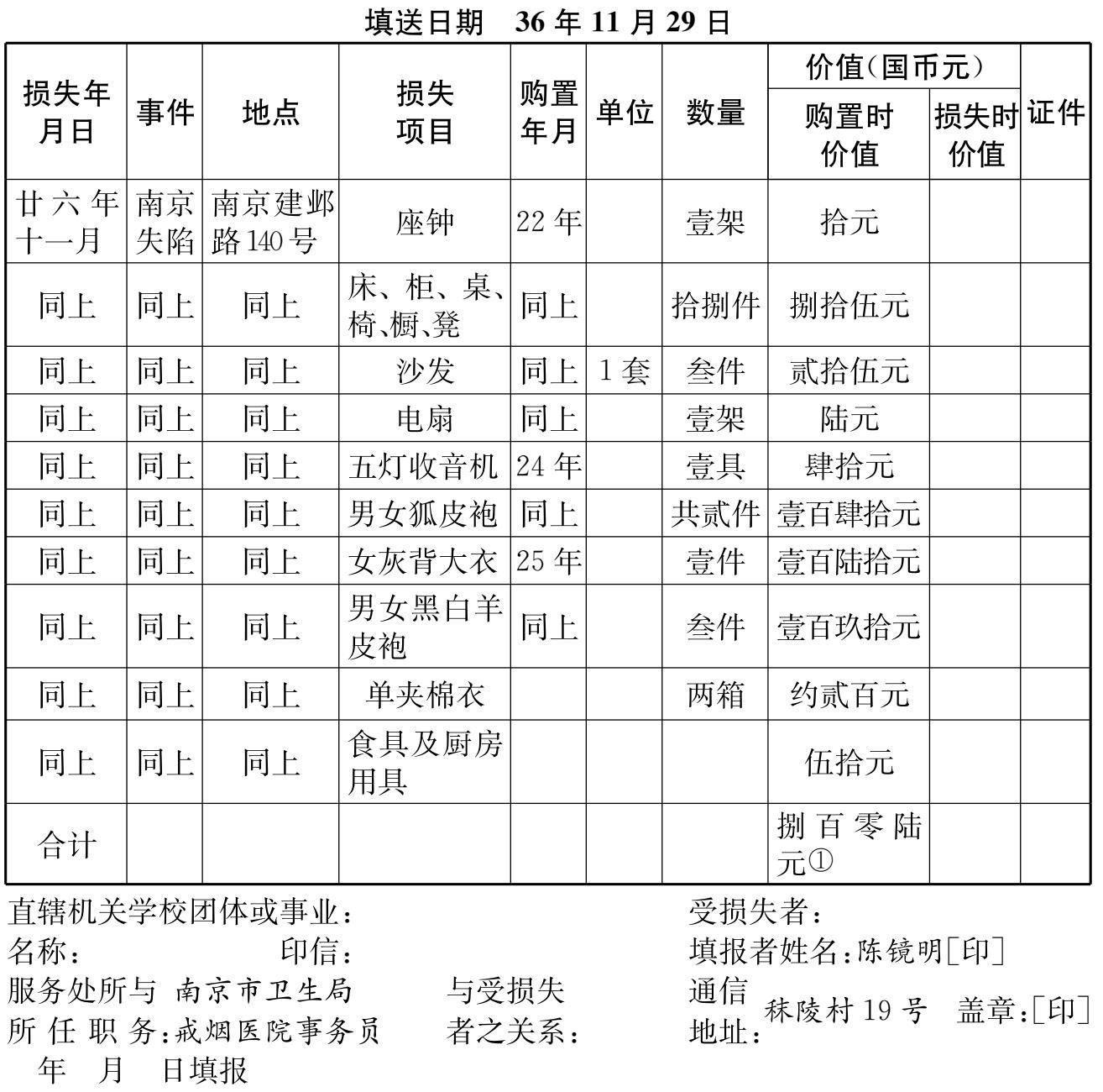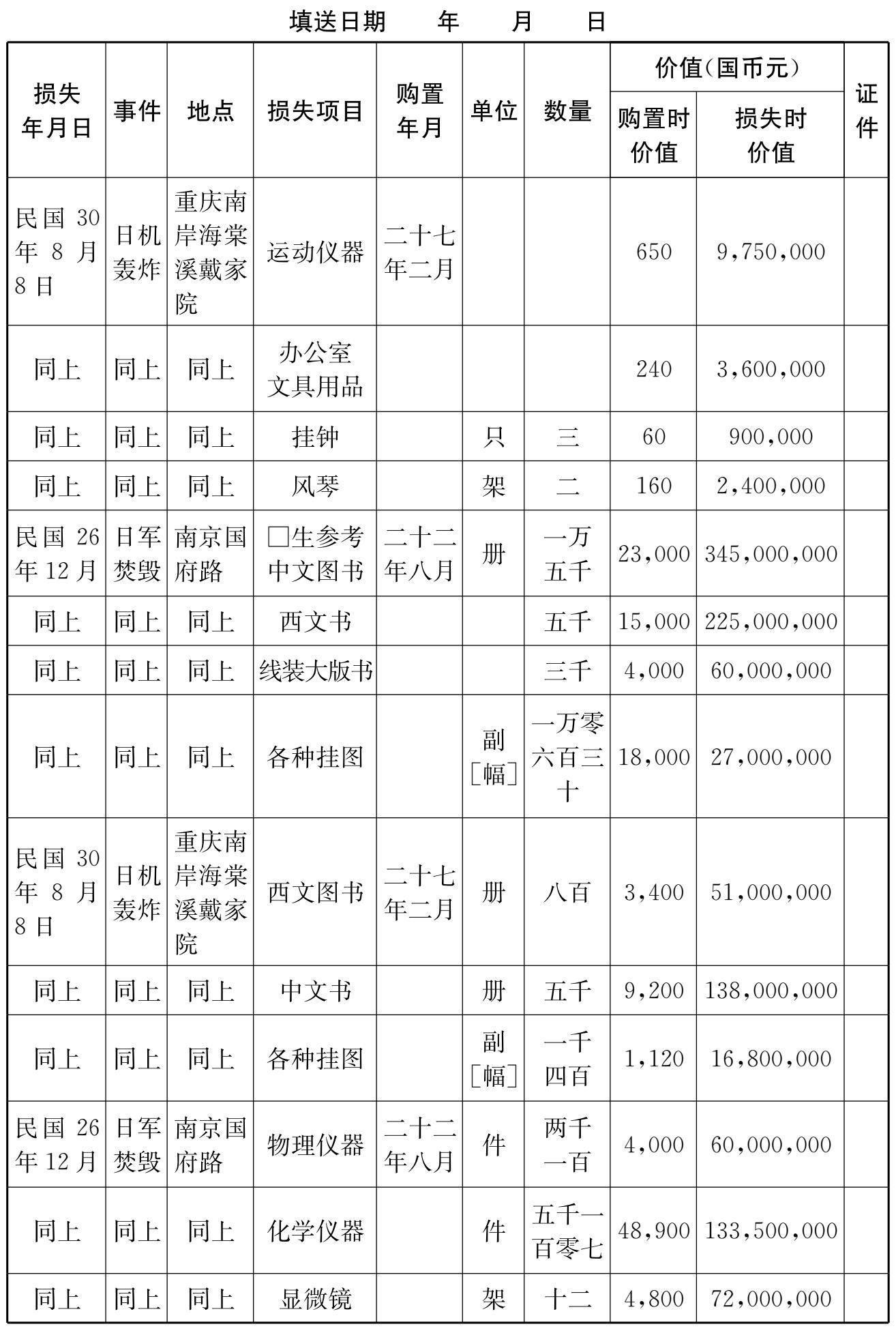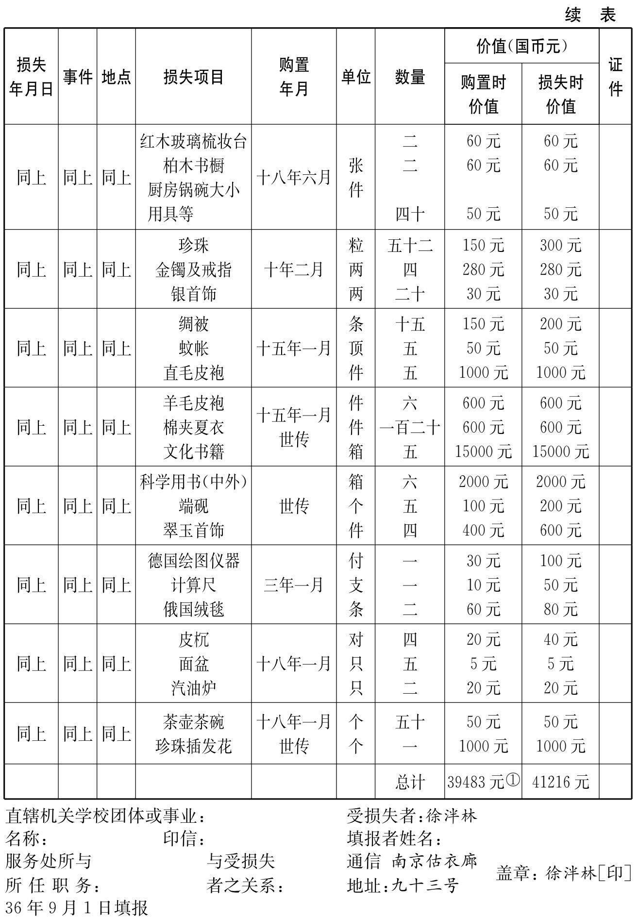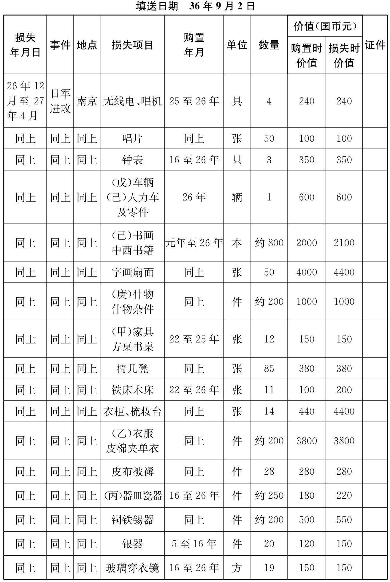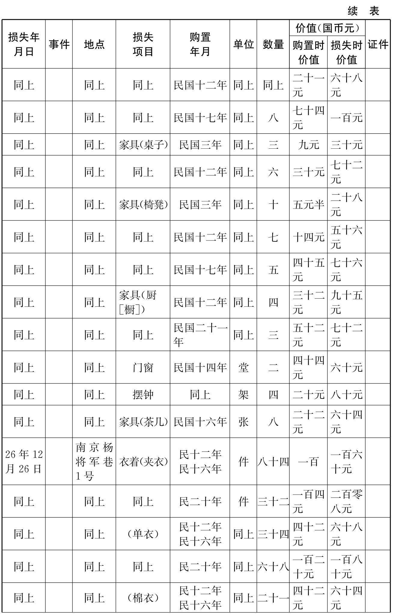 ② 本格及其上面几格填写位置可能有误,疑为“损失时价值”。原档如此。