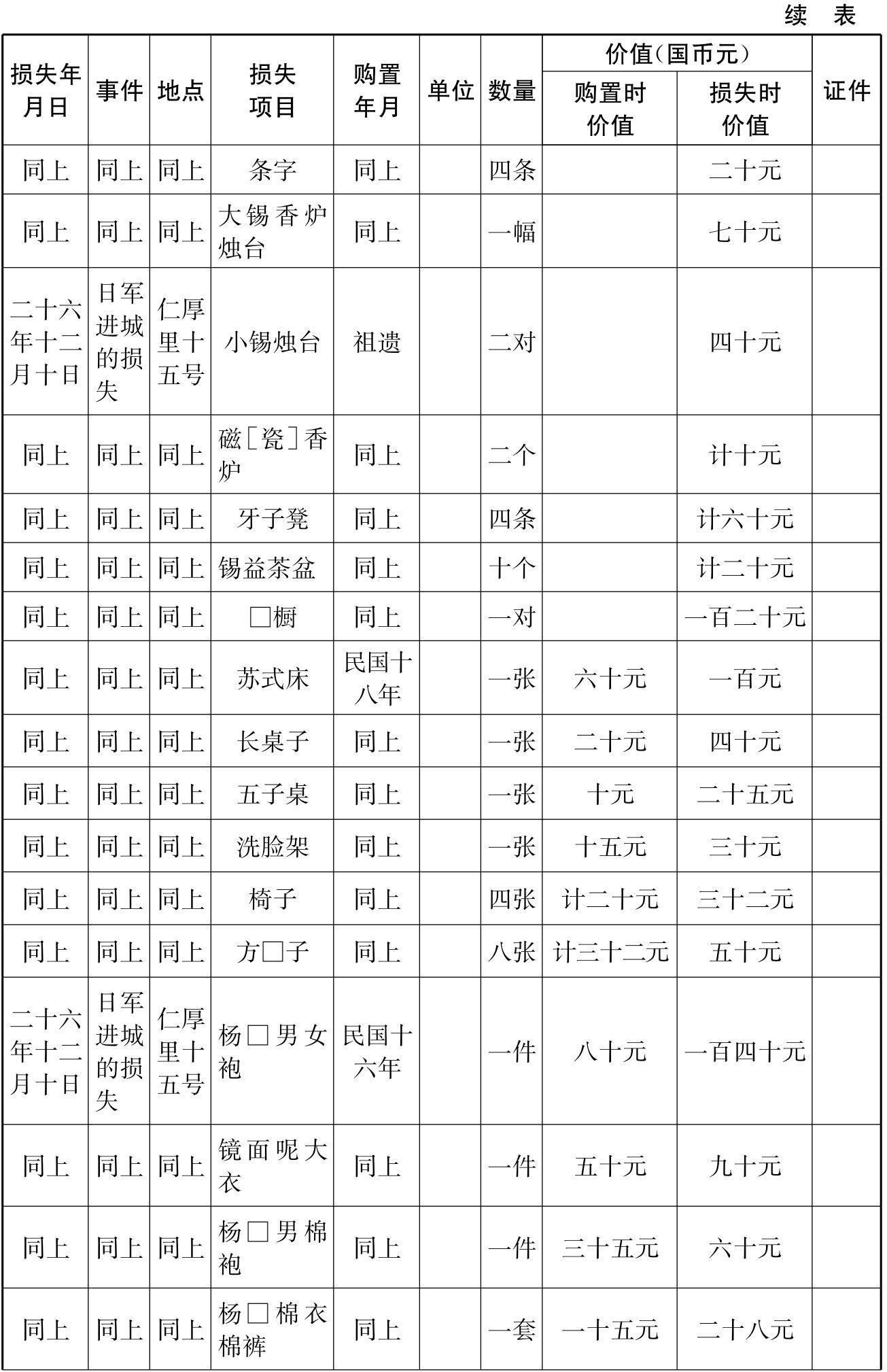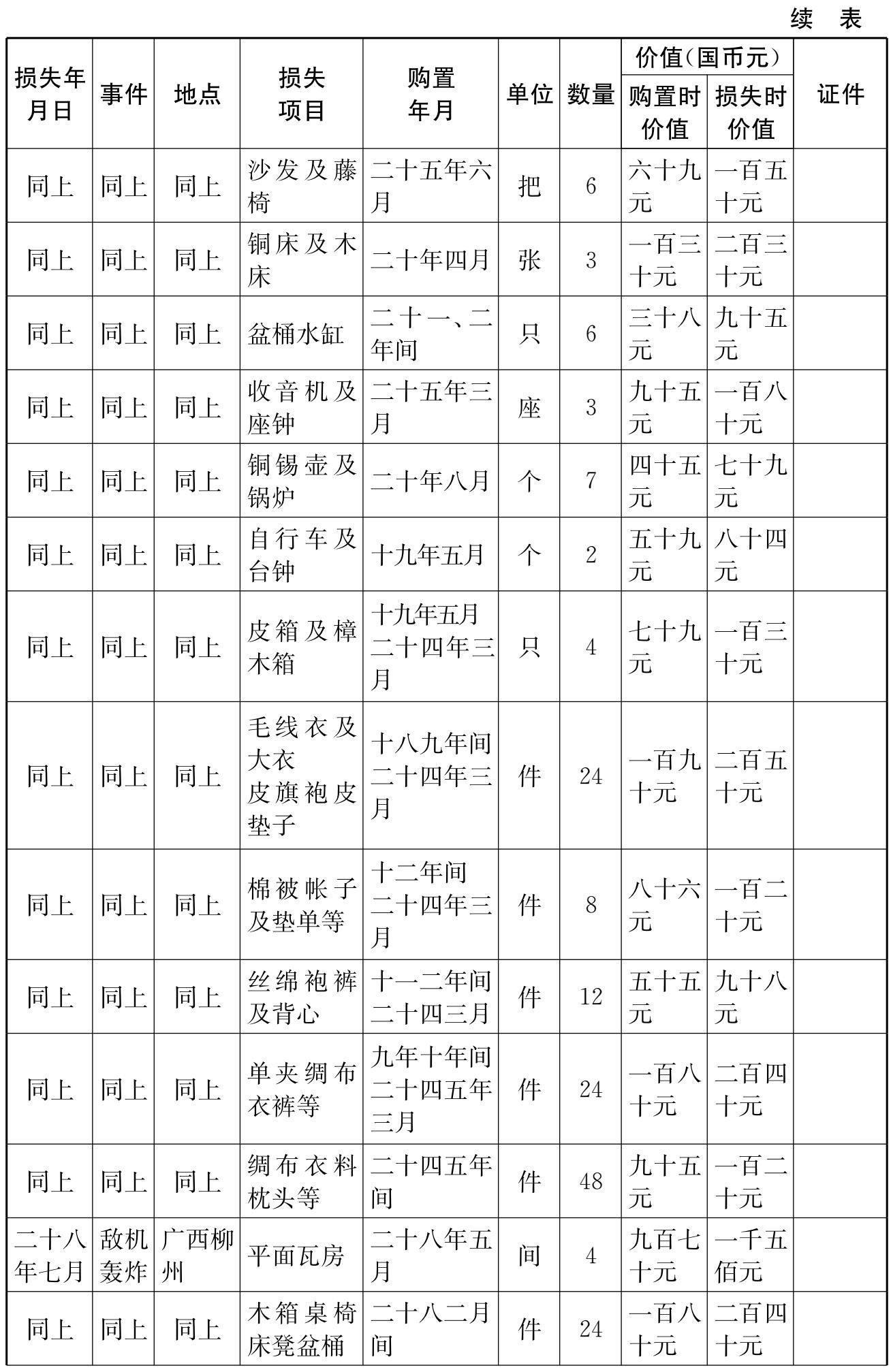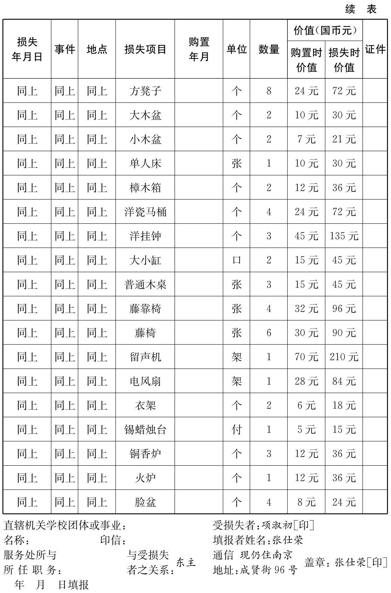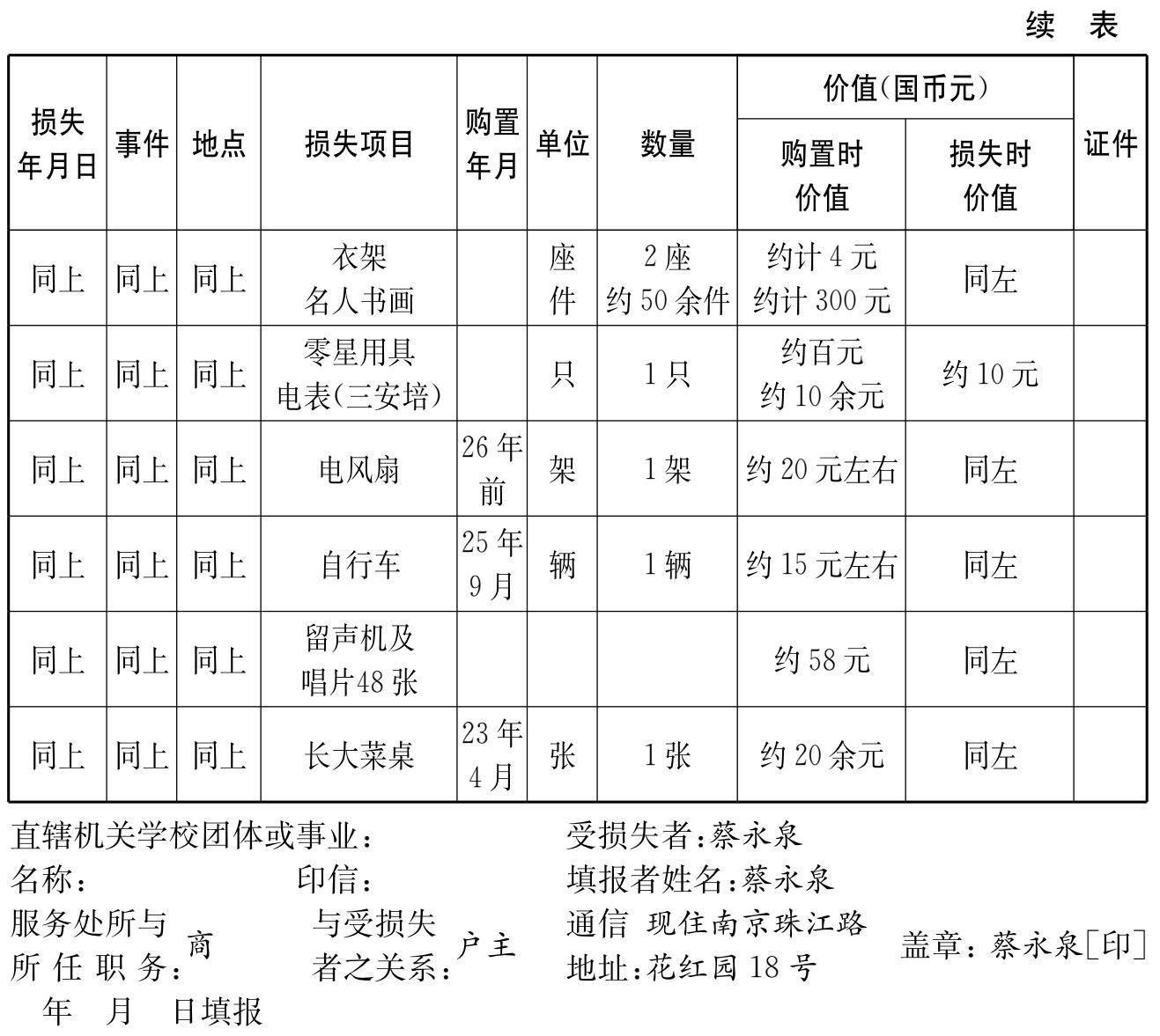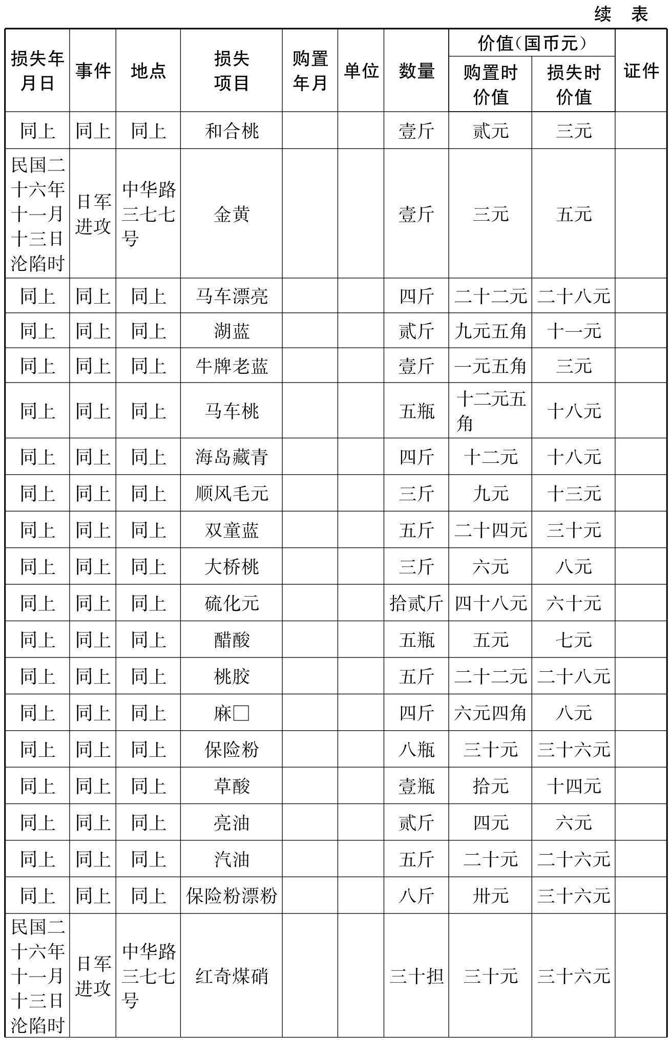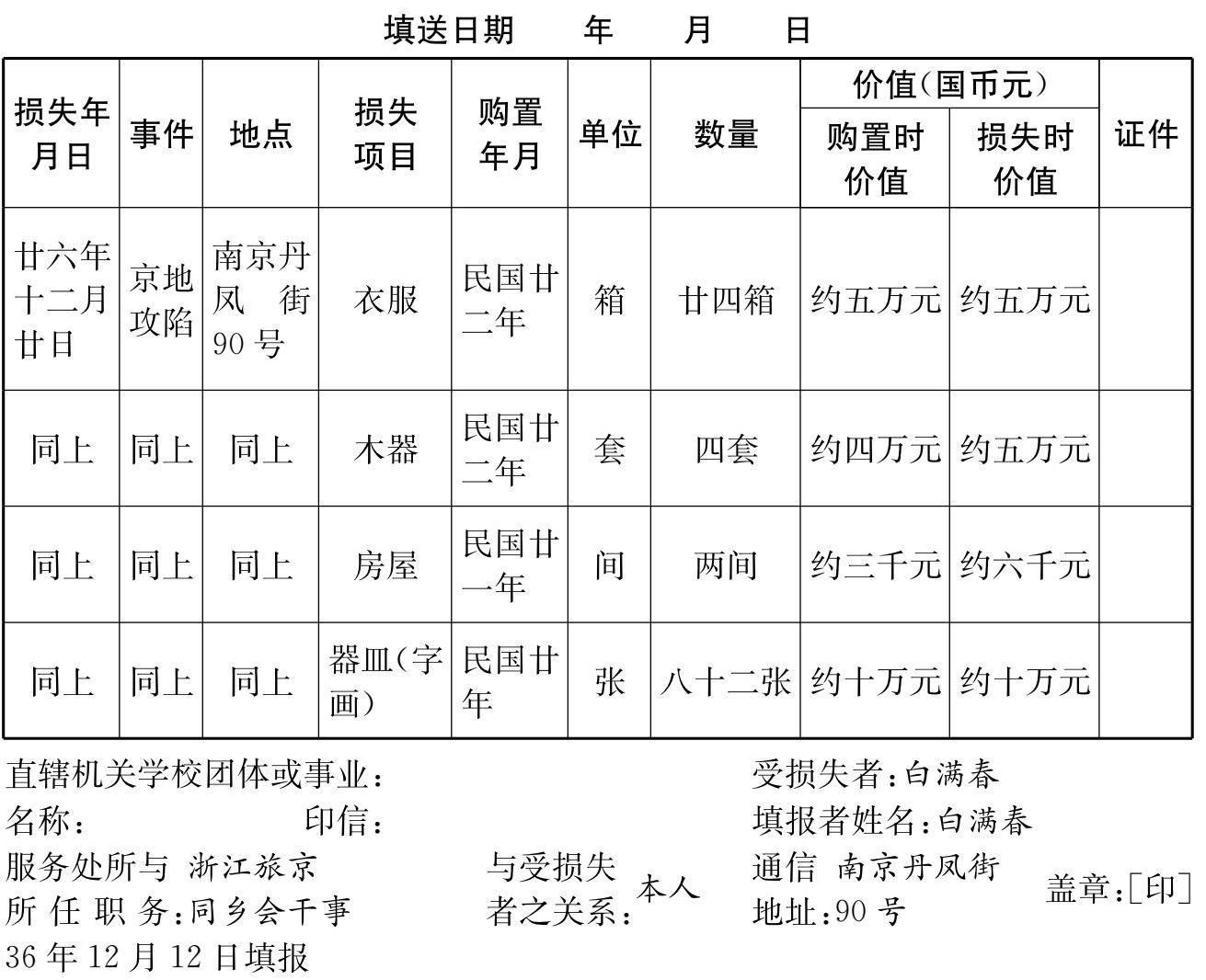 ② 本格及其上面几格填写位置可能有误,疑为“损失时价值”。原档如此。