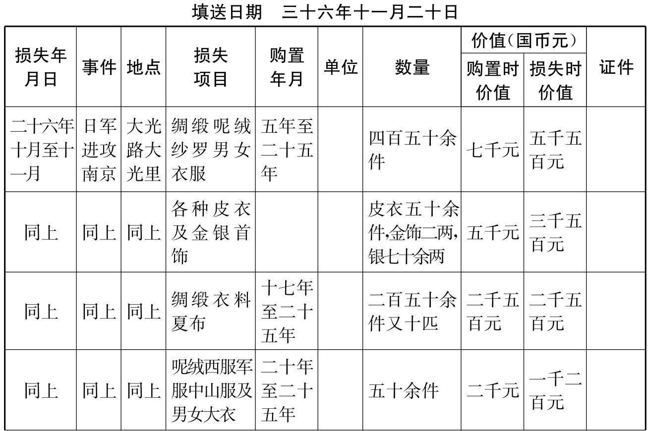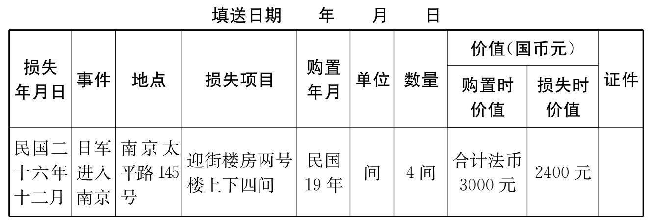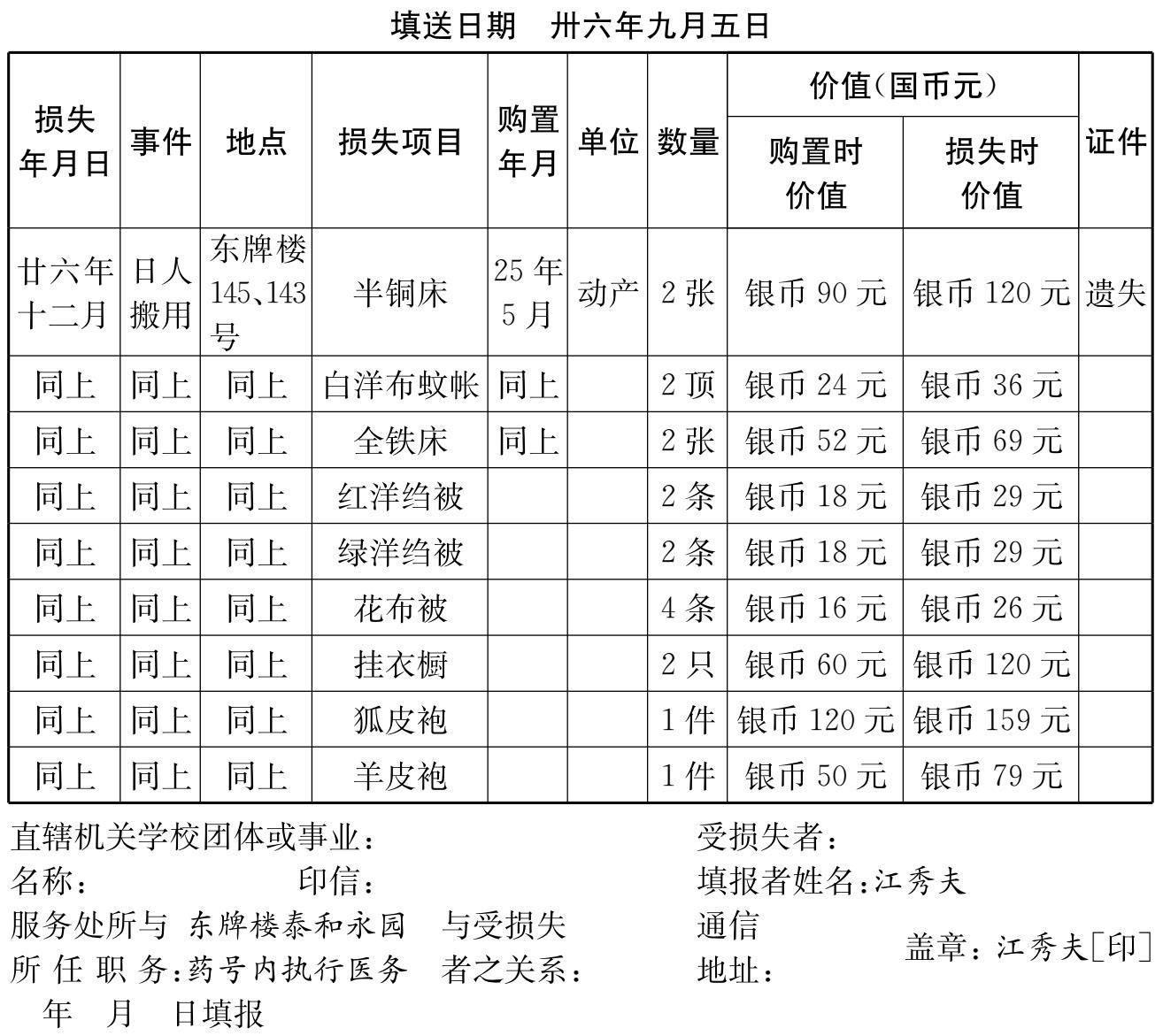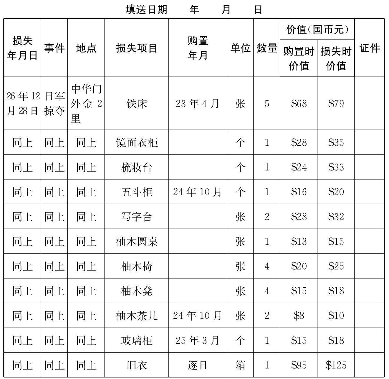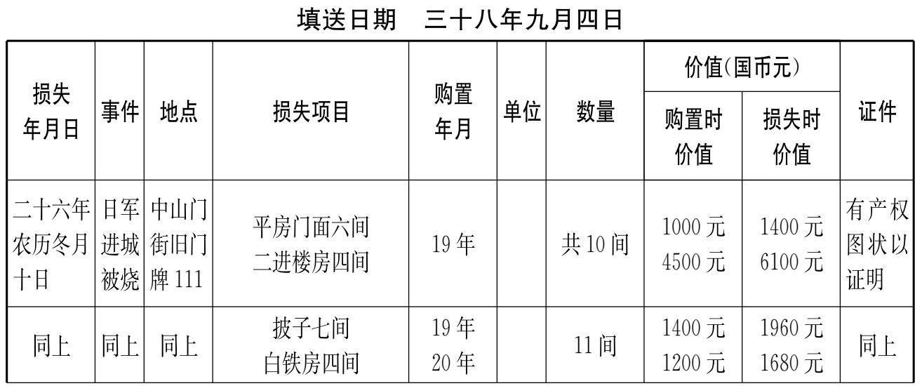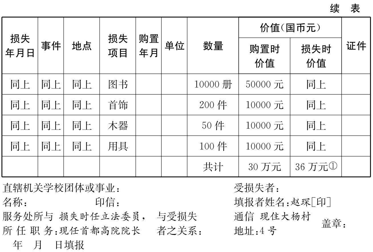 ② 本格及其上面几格填写位置可能有误,疑为“损失时价值”。原档如此。