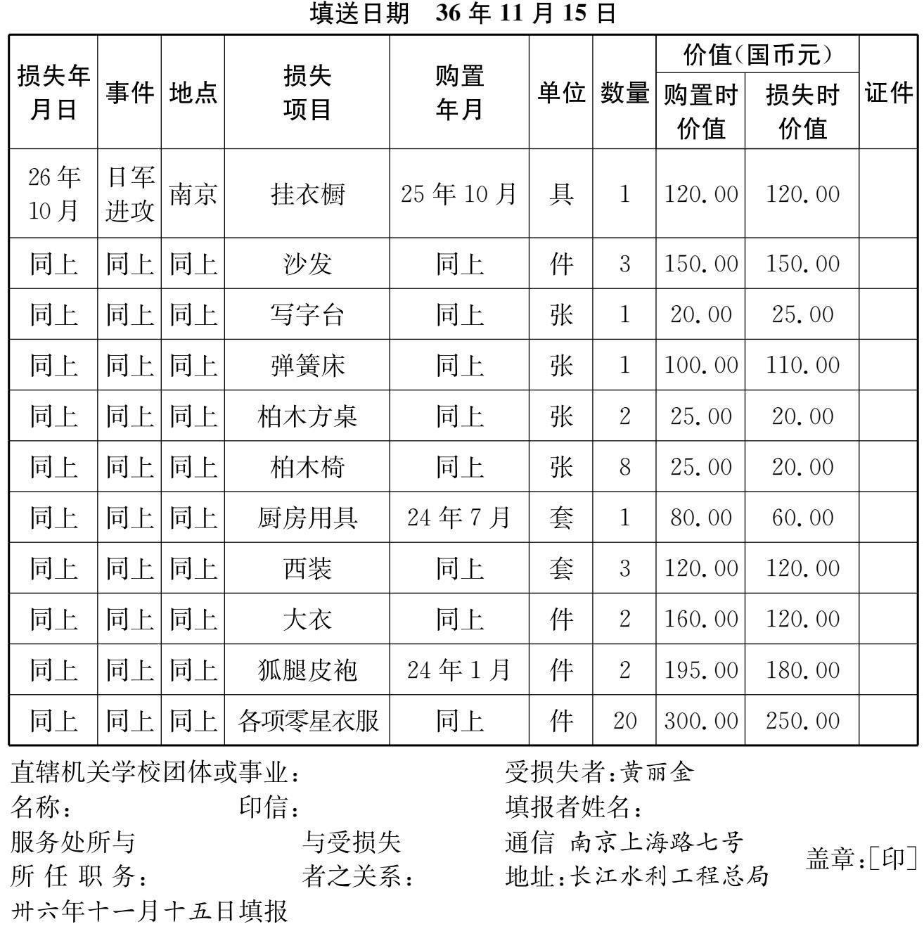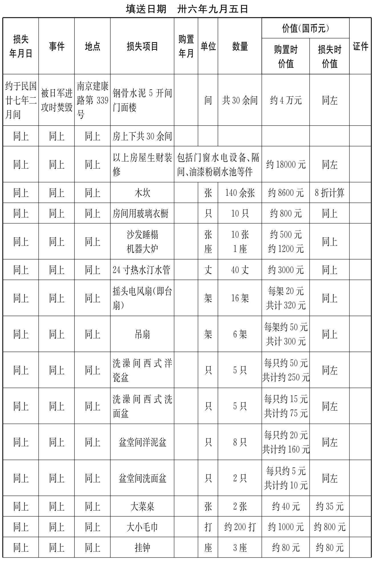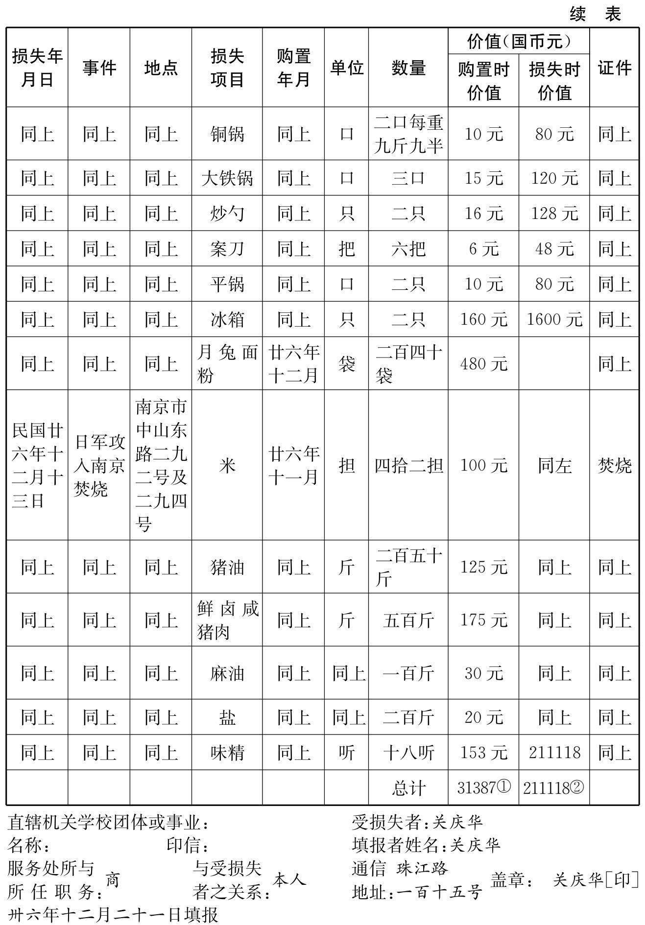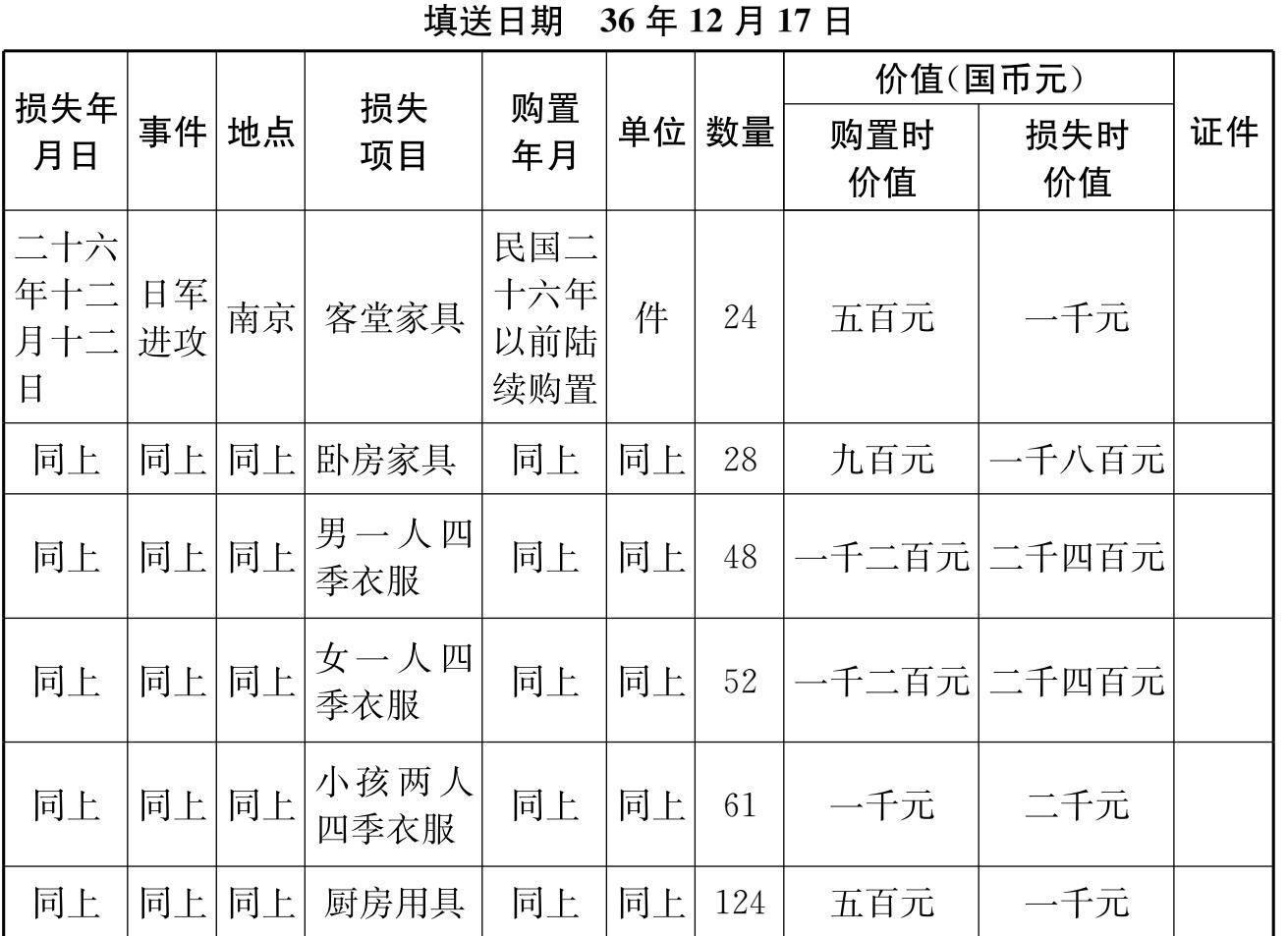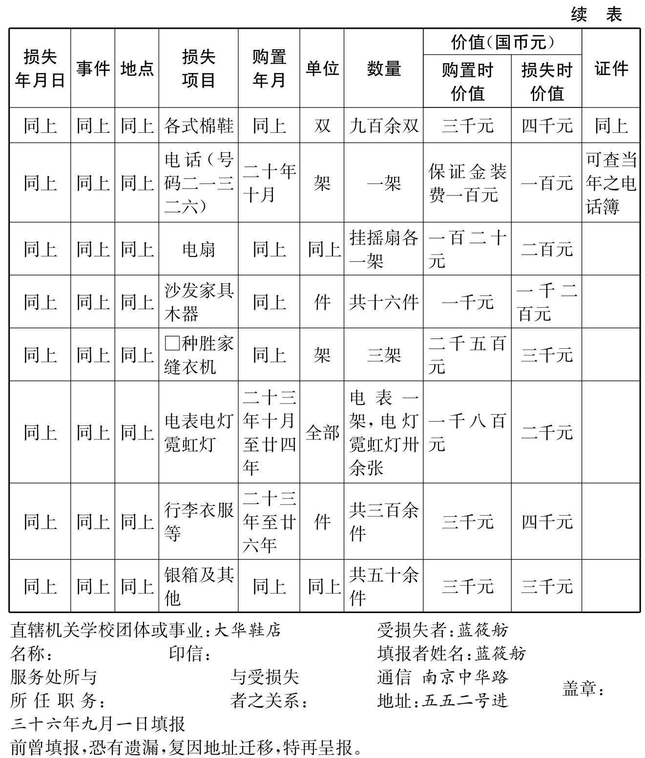 ② 本格及其上面几格填写位置可能有误,疑为“损失时价值”。原档如此。