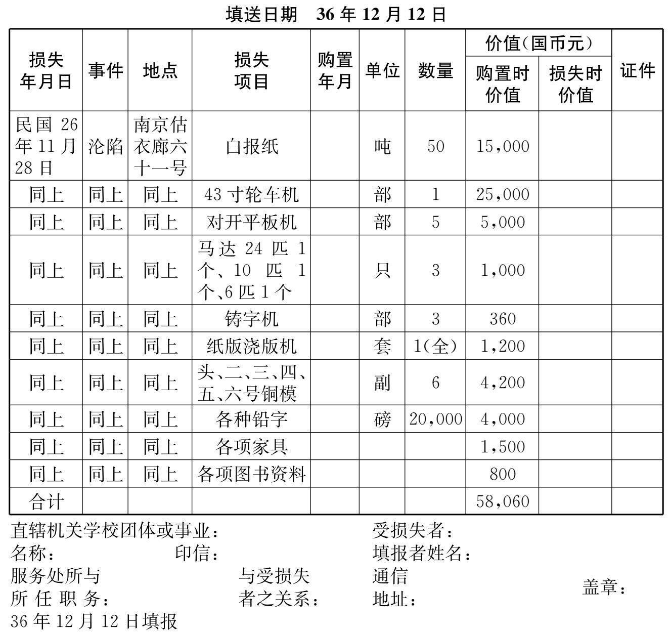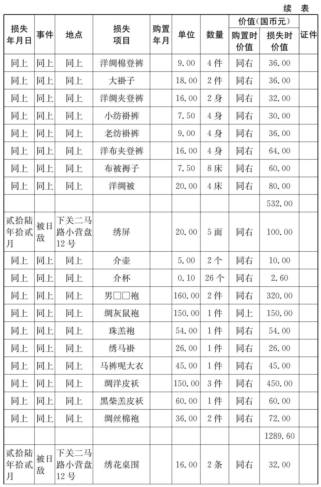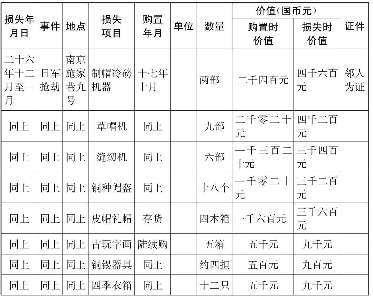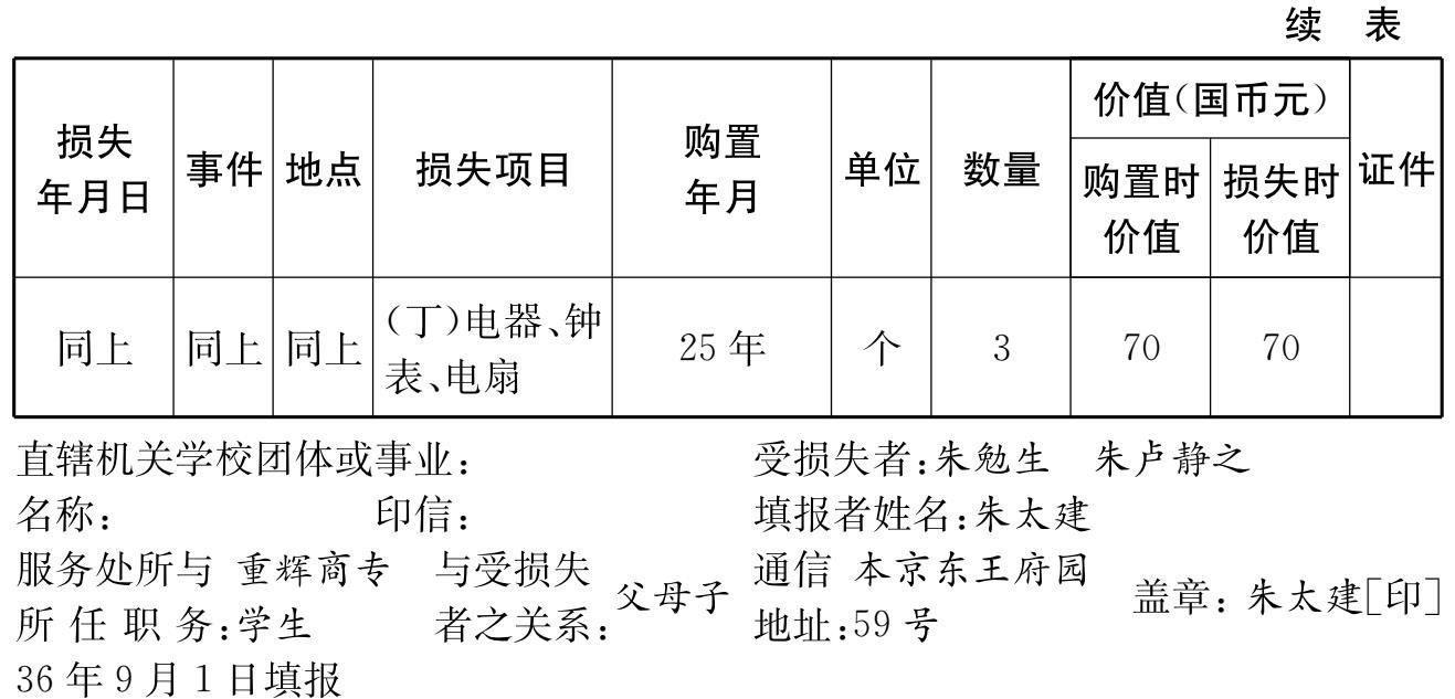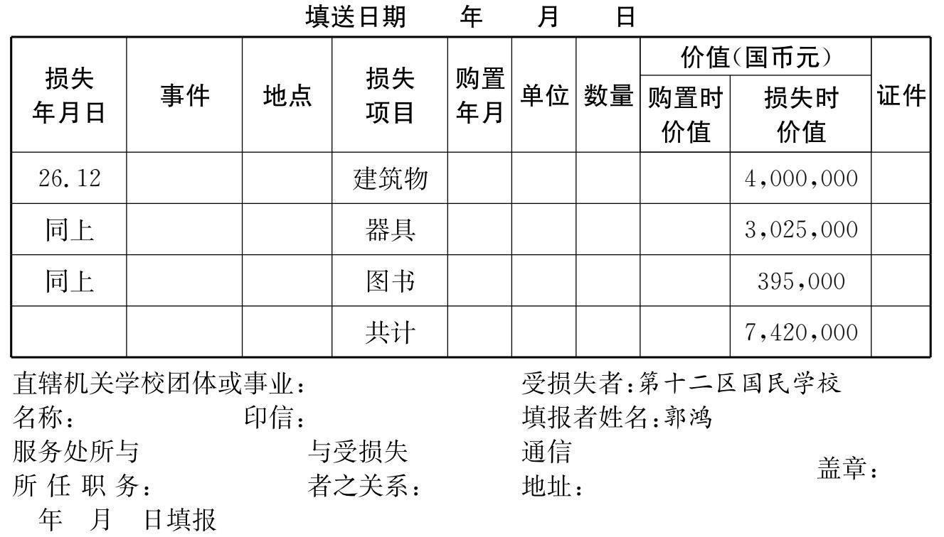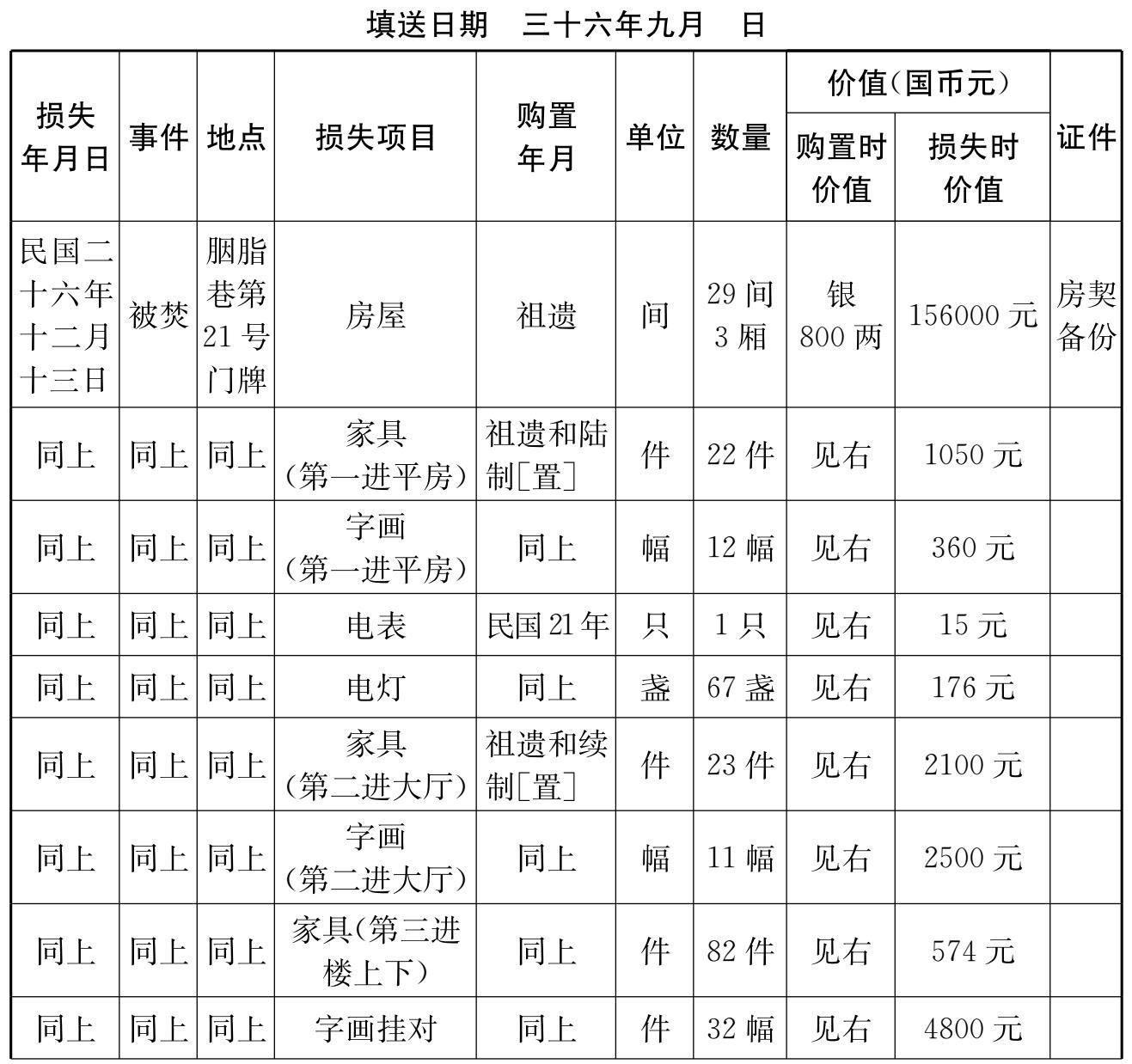 ② 本格及其上面几格填写位置可能有误,疑为“损失时价值”。原档如此。