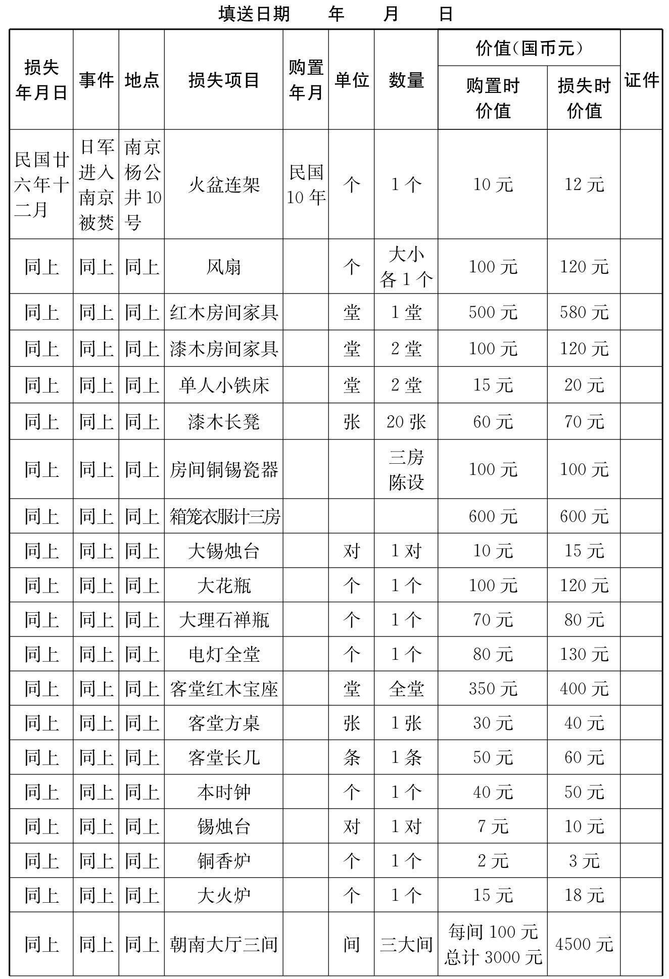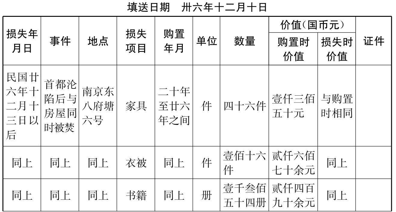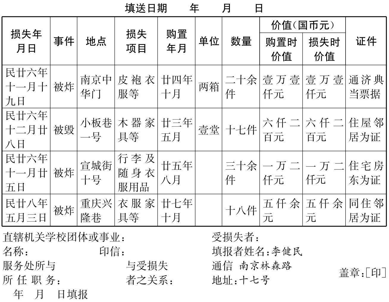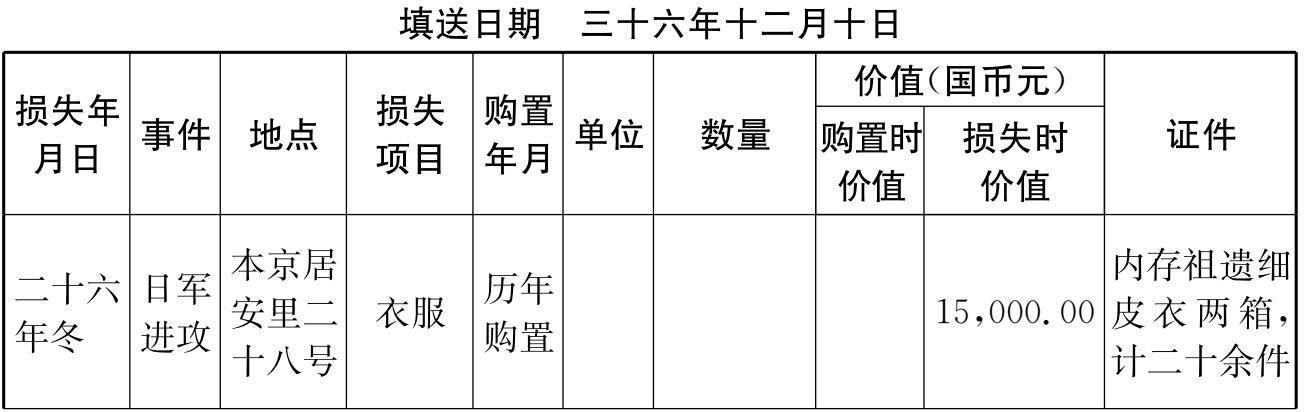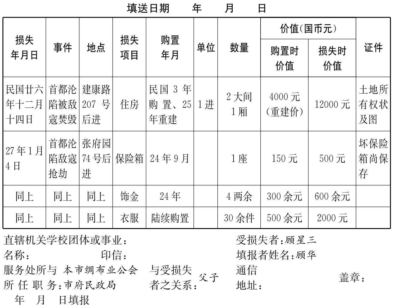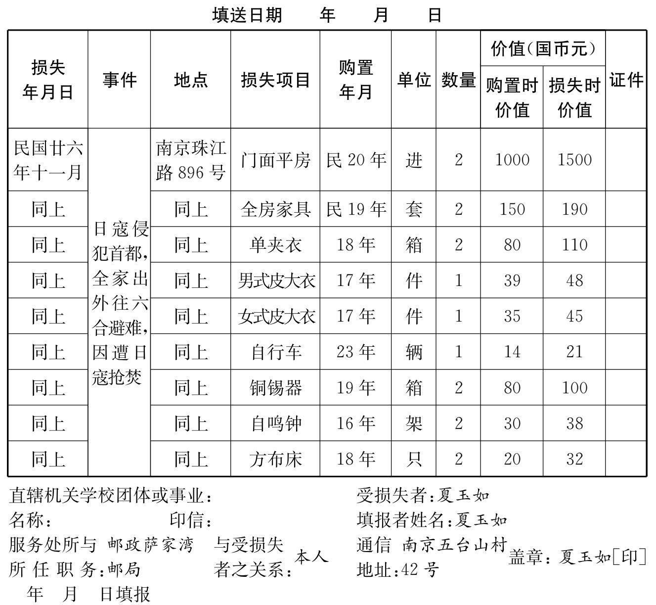 ② 本格及其上面几格填写位置可能有误,疑为“损失时价值”。原档如此。