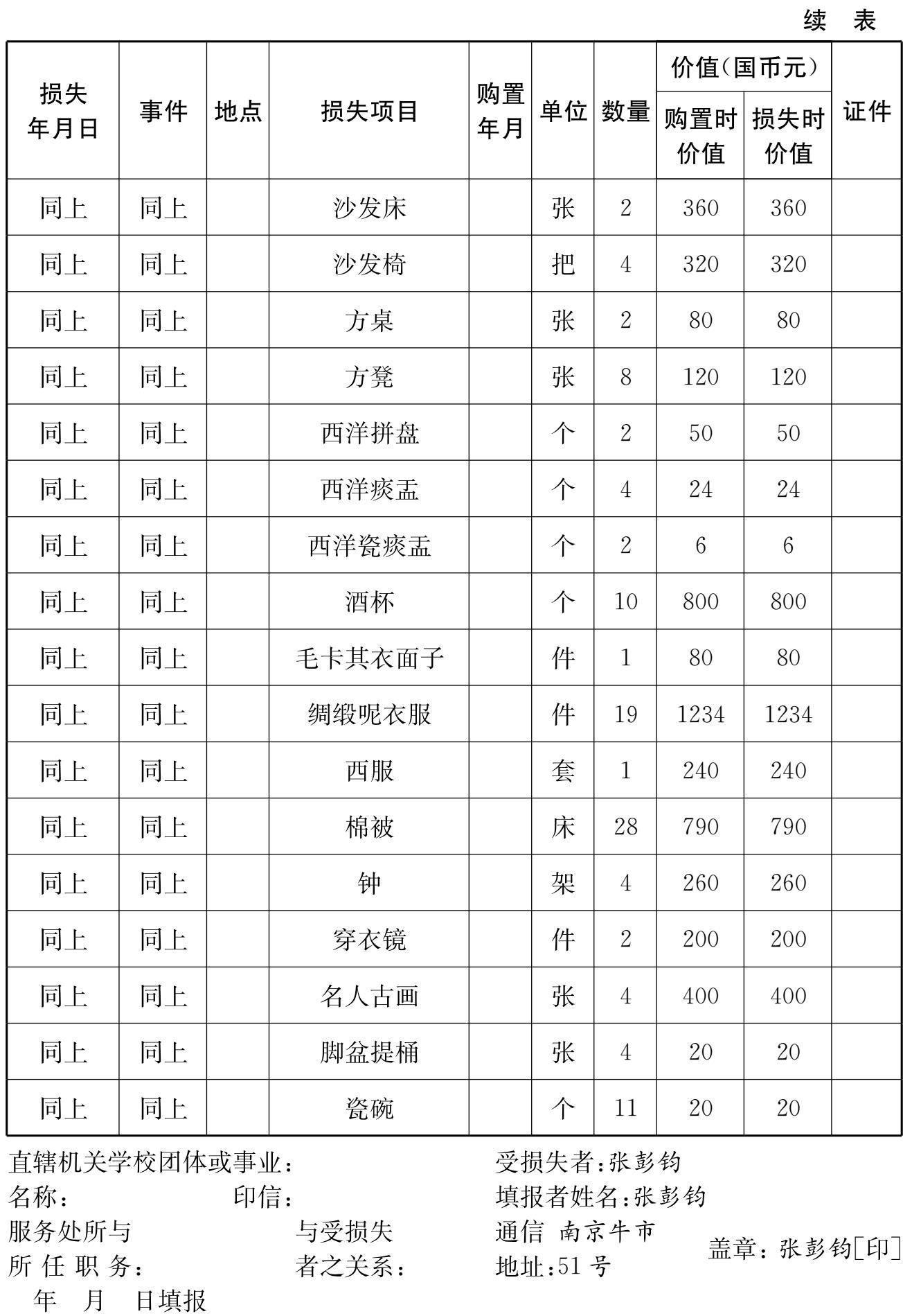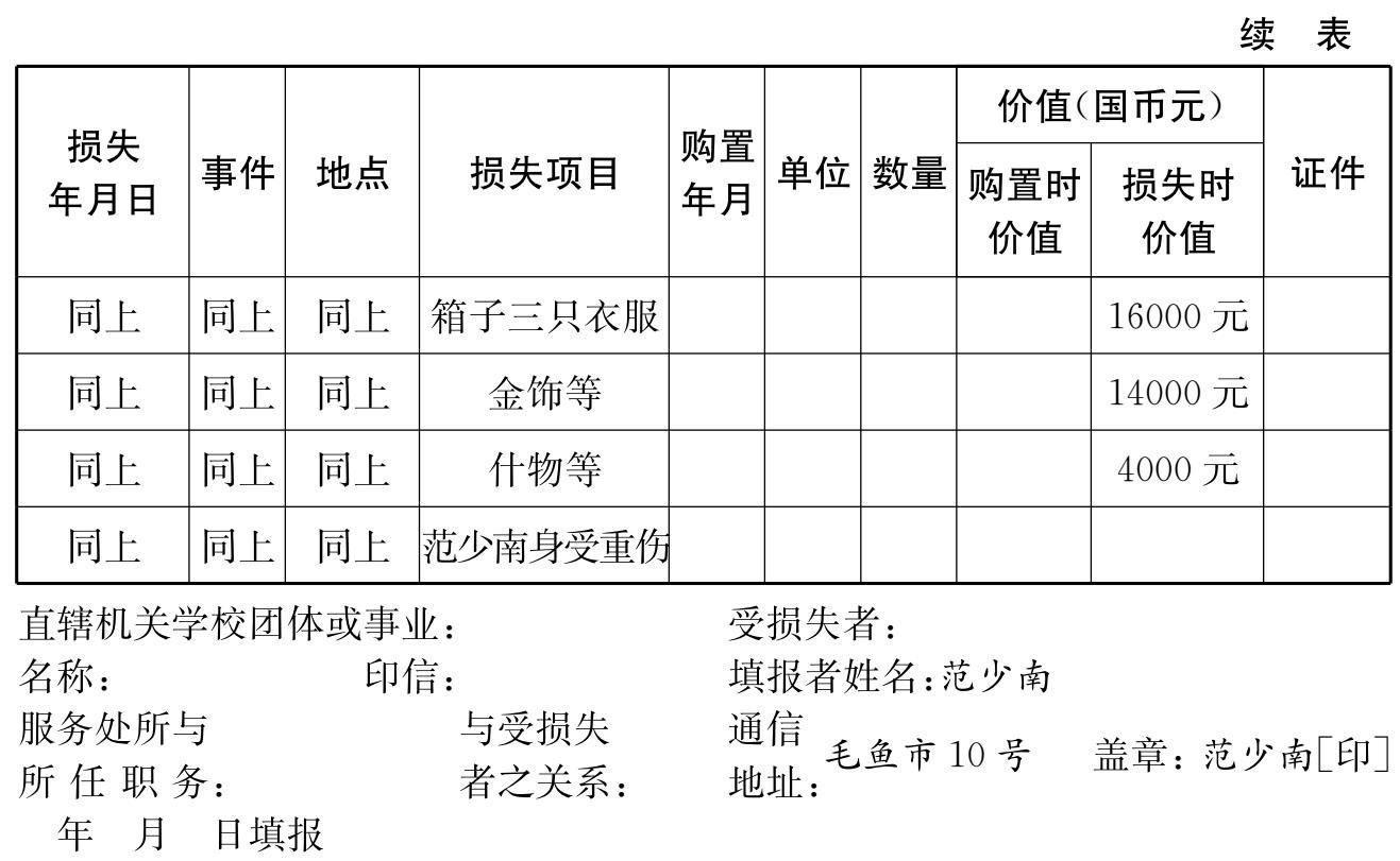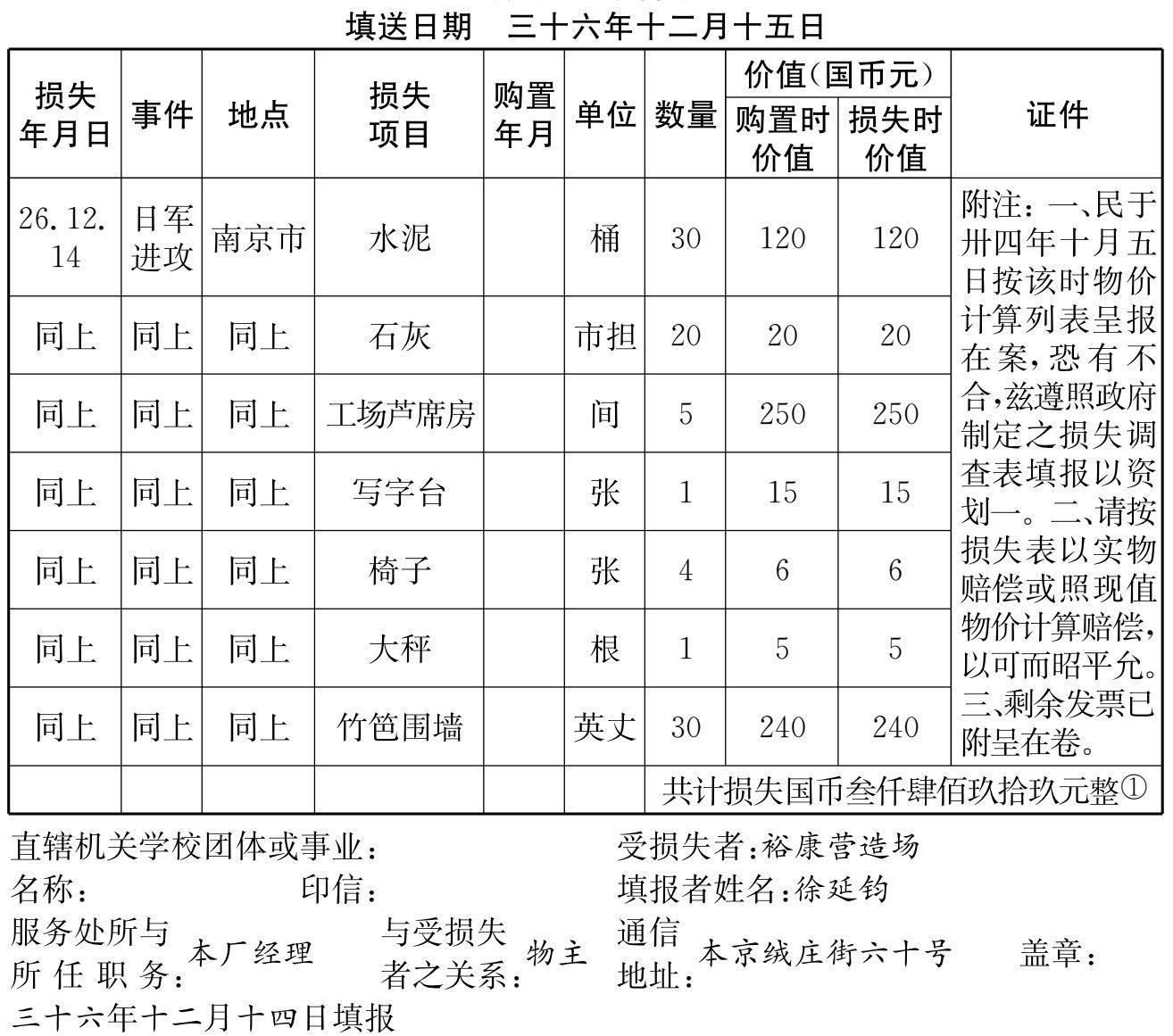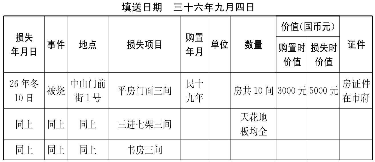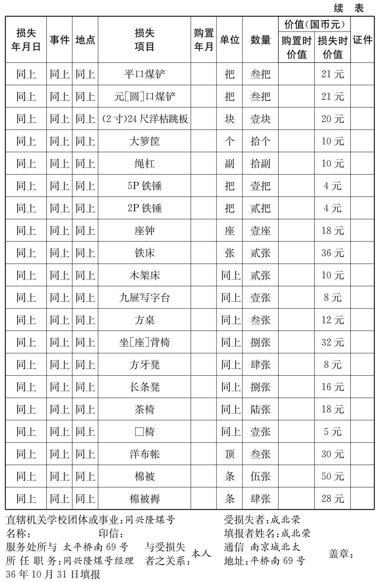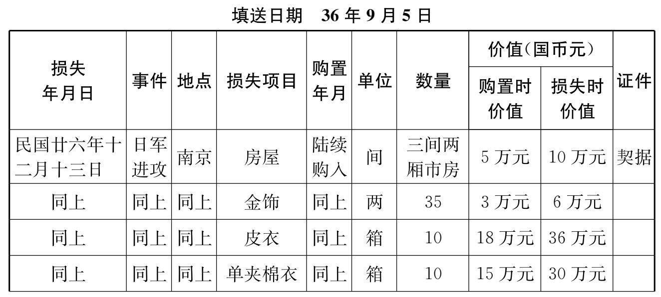 ② 本格及其上面几格填写位置可能有误,疑为“损失时价值”。原档如此。
