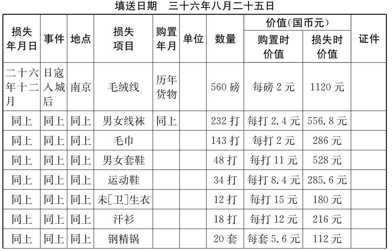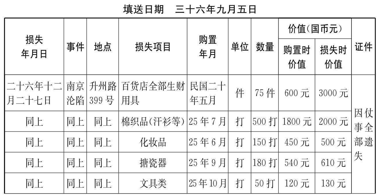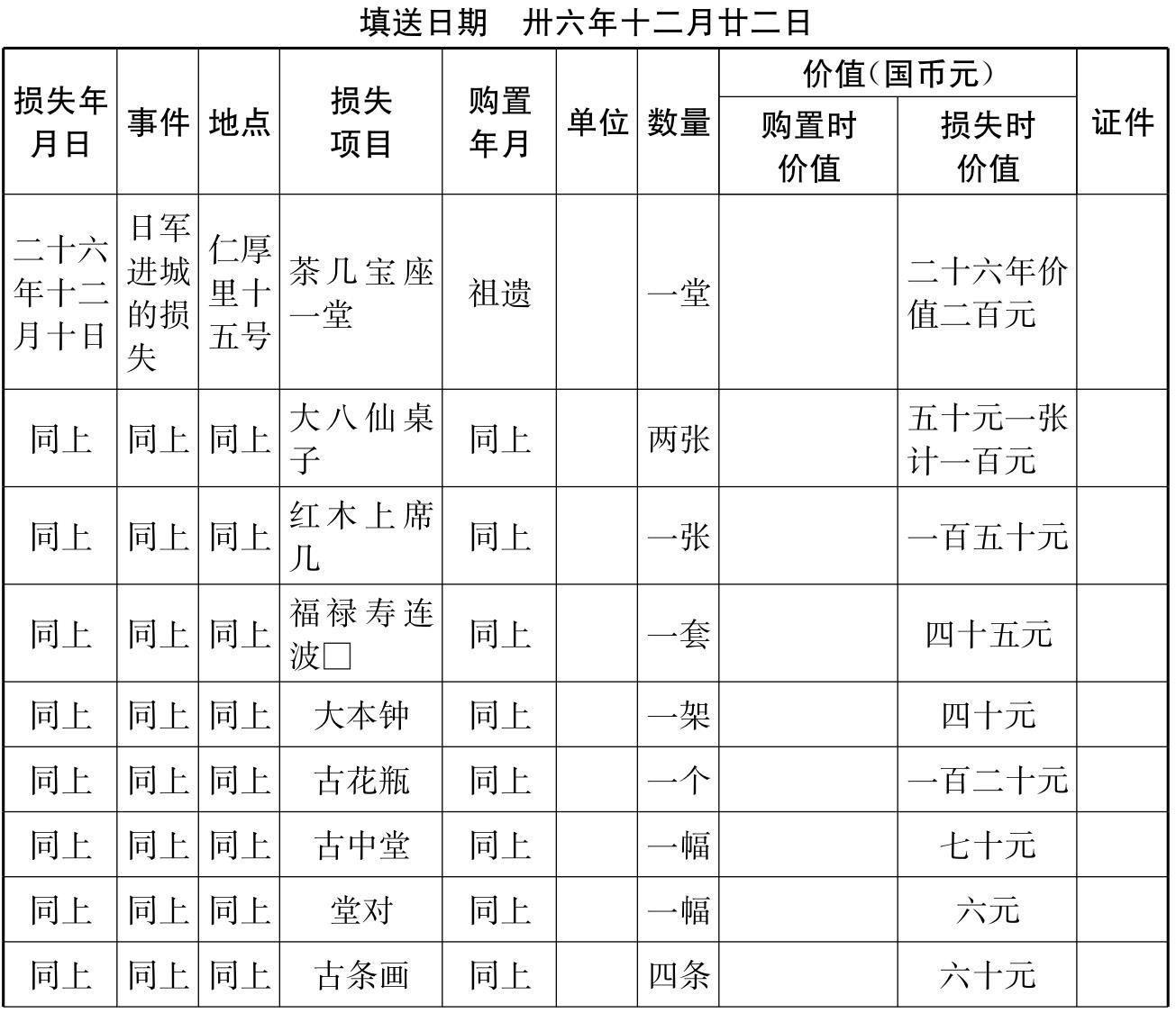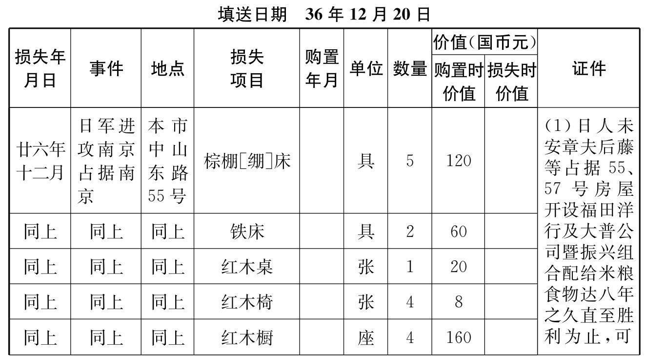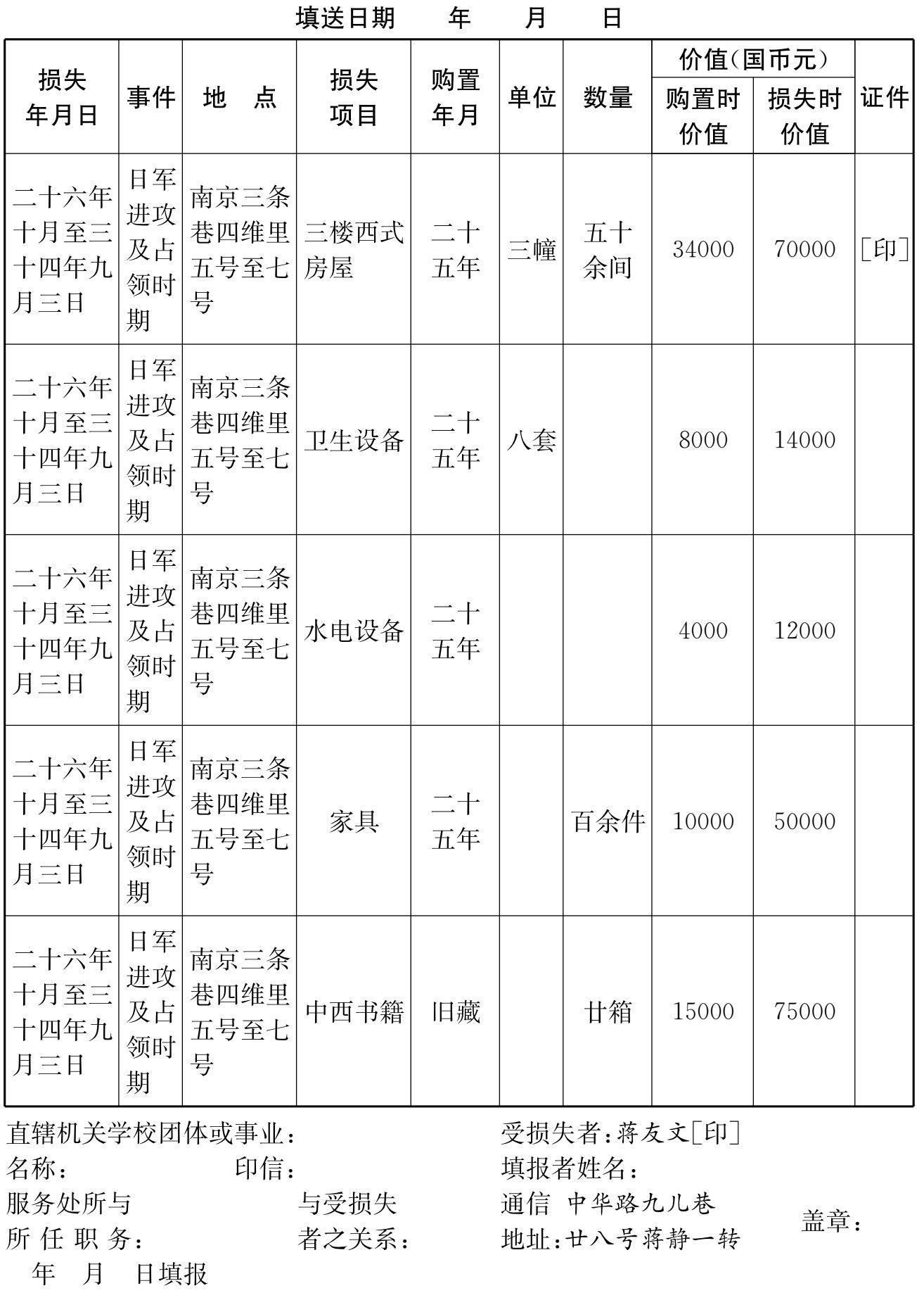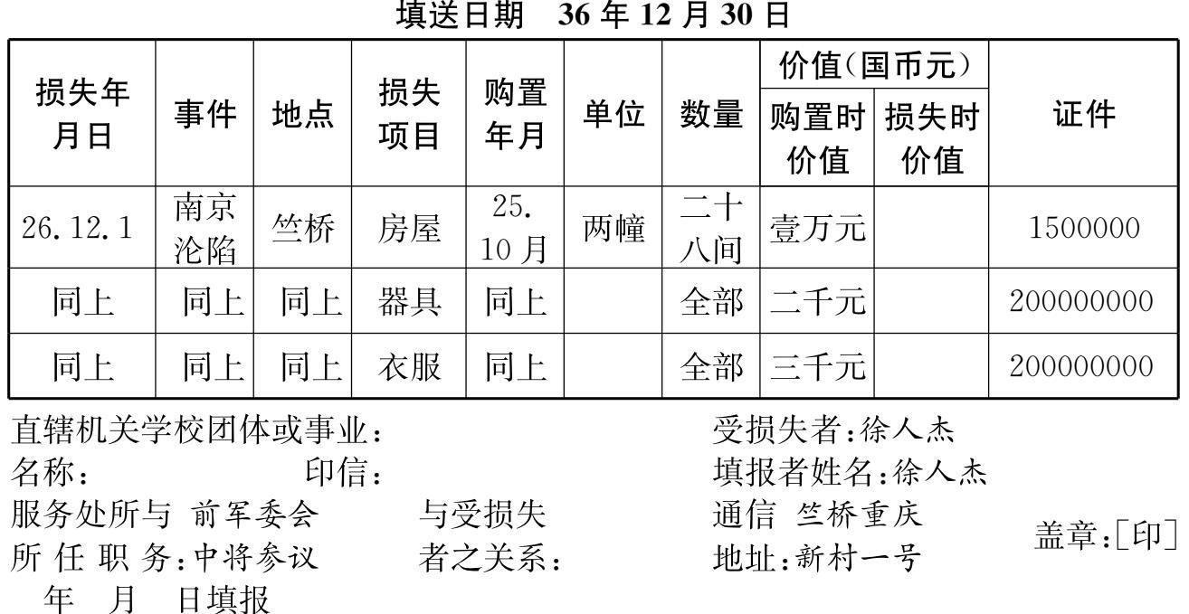 ② 本格及其上面几格填写位置可能有误,疑为“损失时价值”。原档如此。