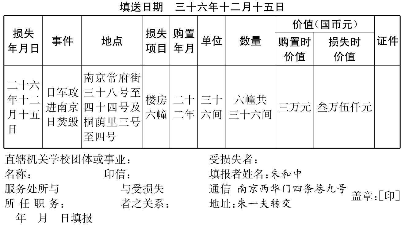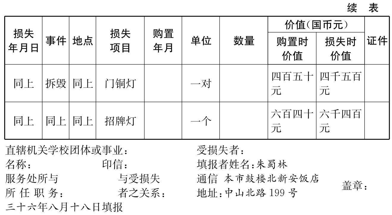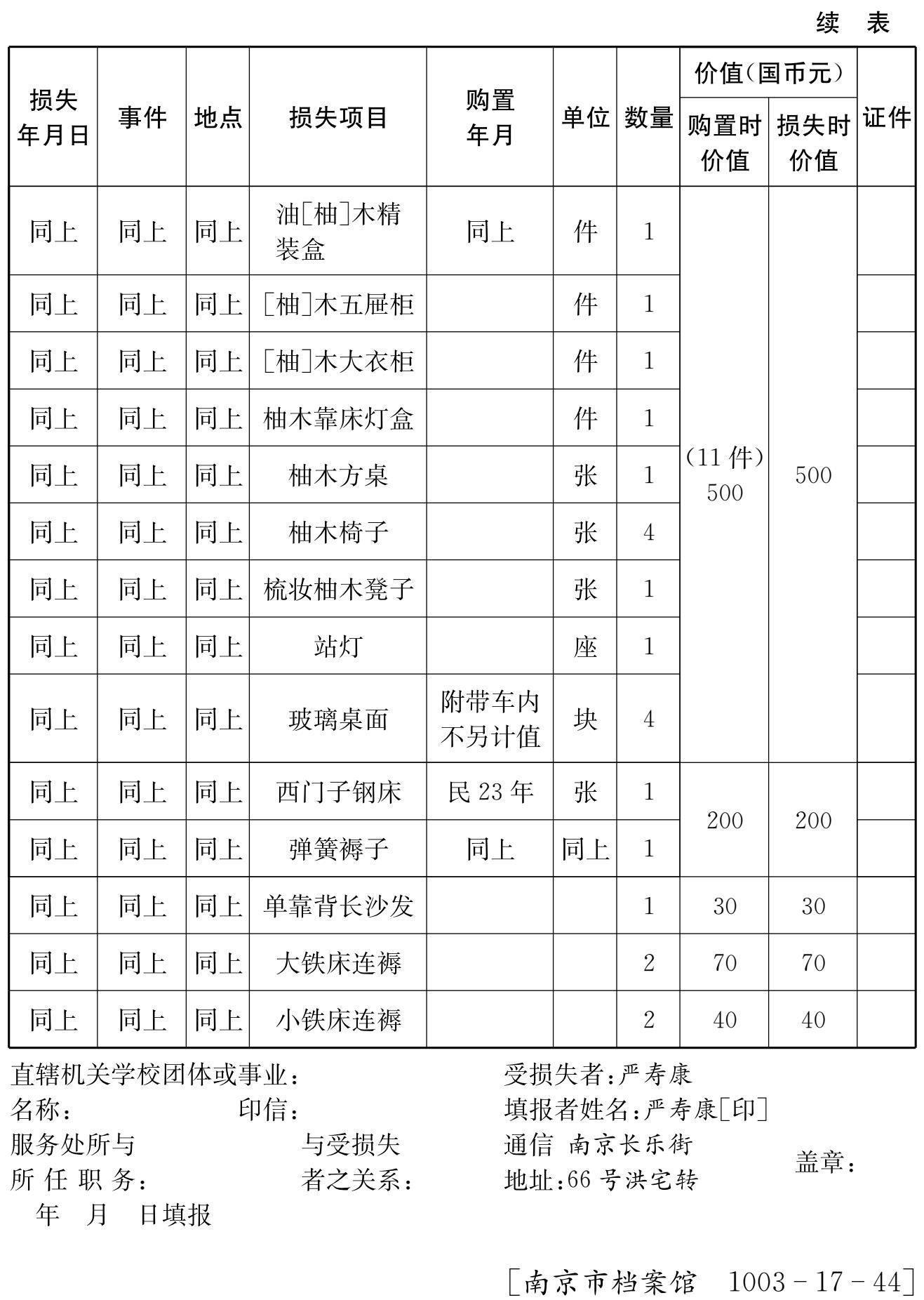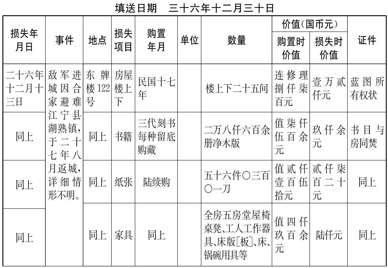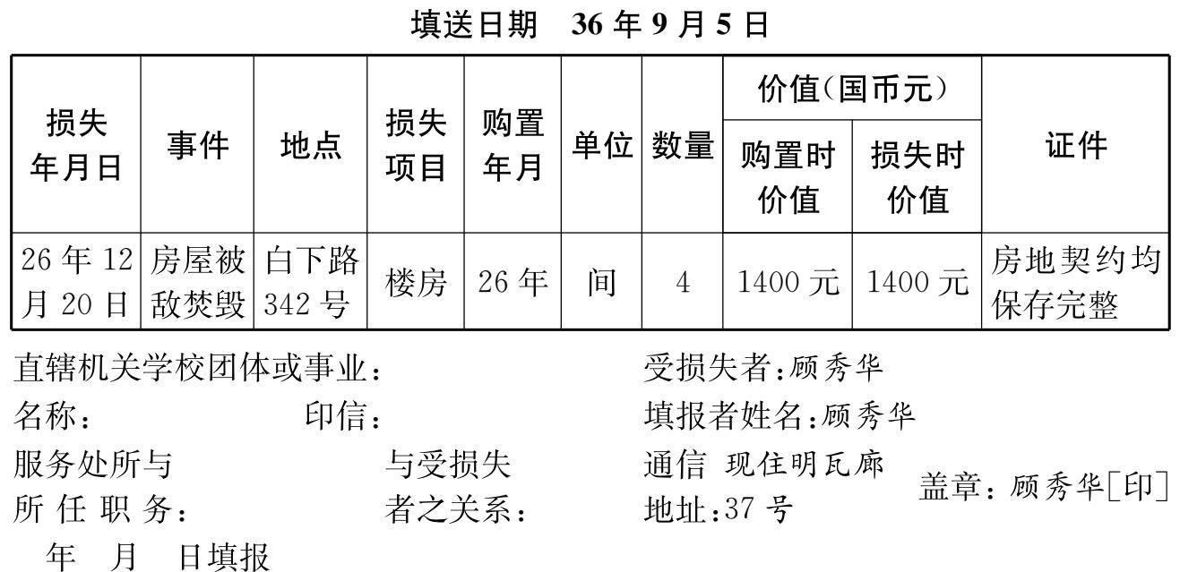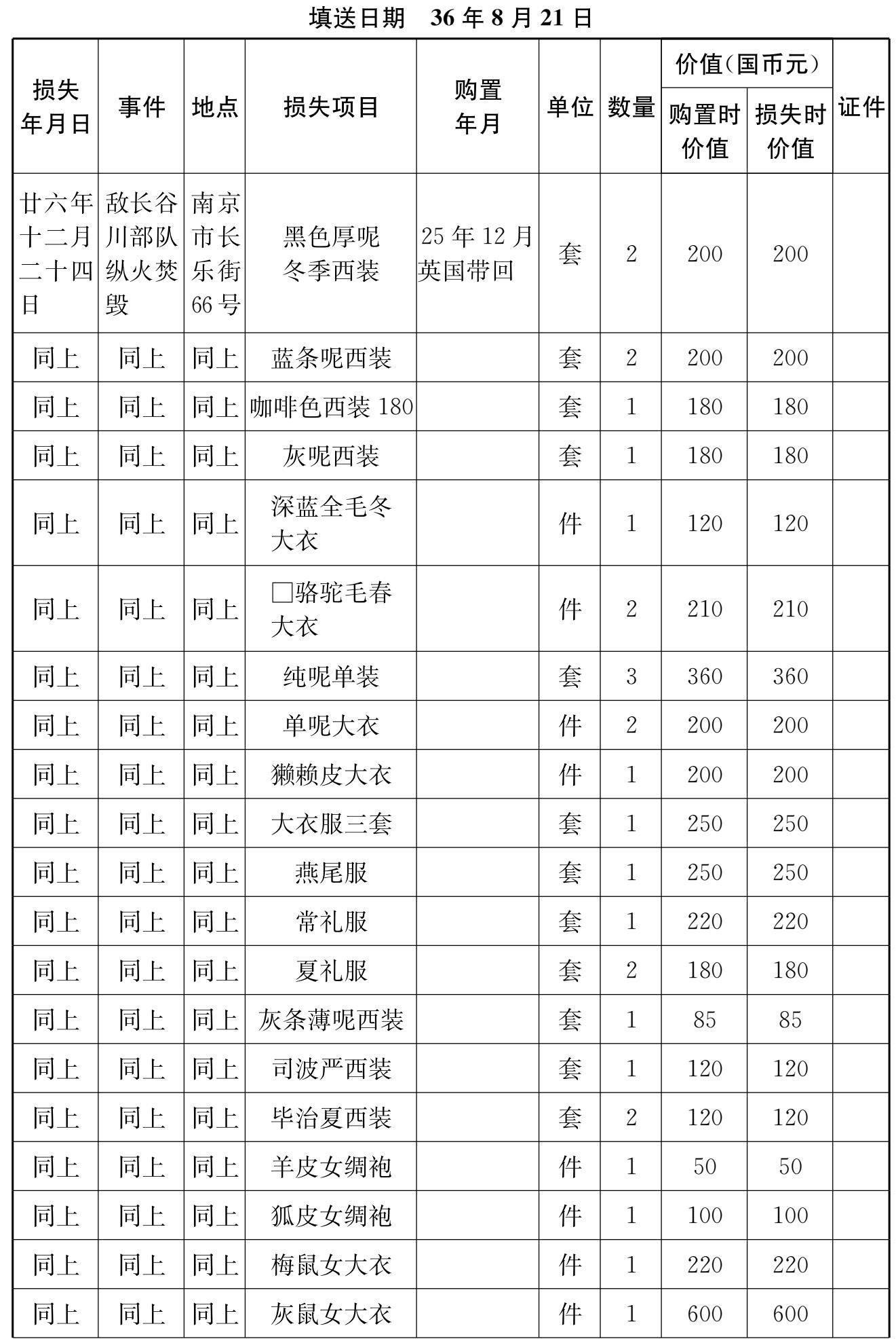 ② 本格及其上面几格填写位置可能有误,疑为“损失时价值”。原档如此。
