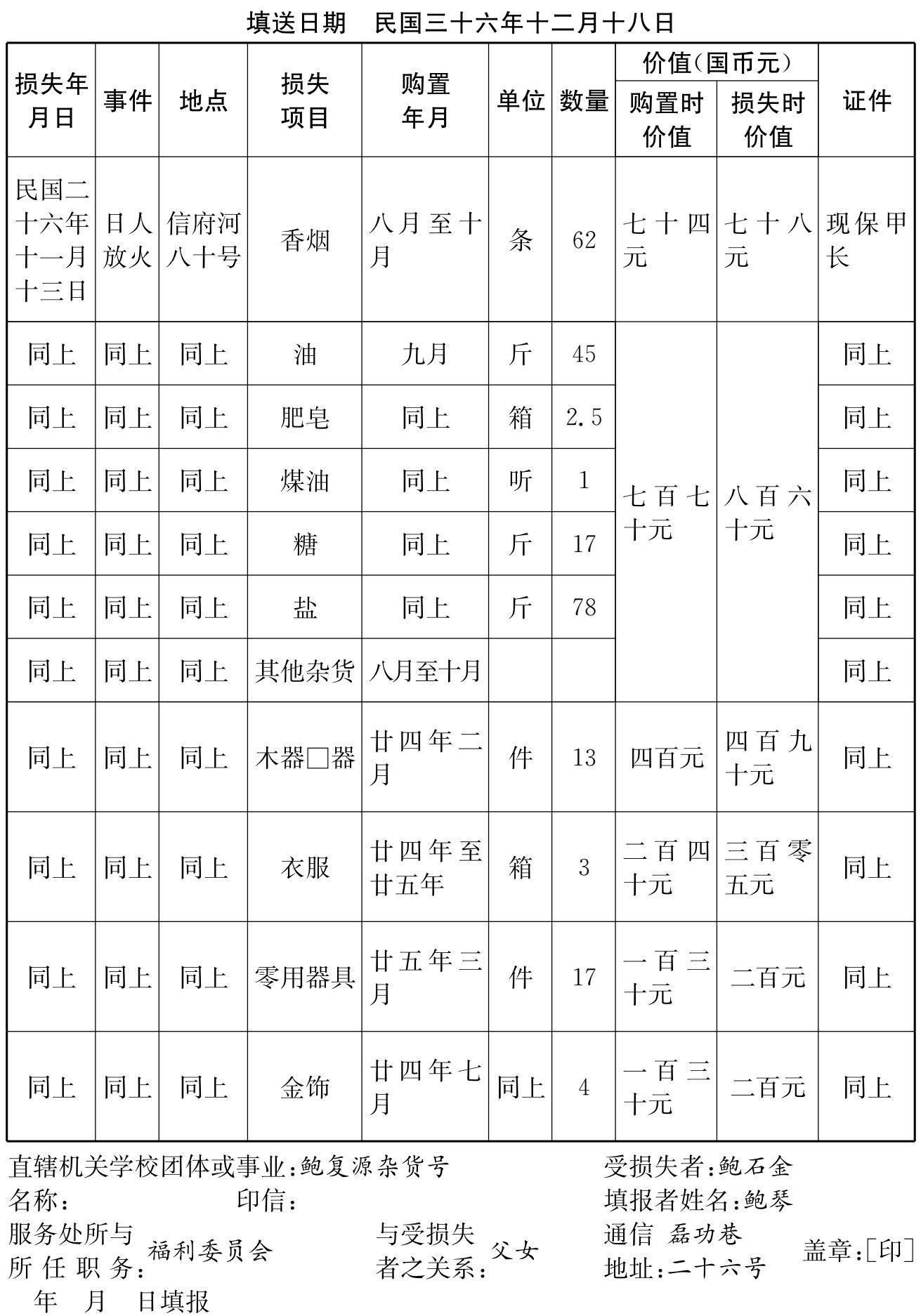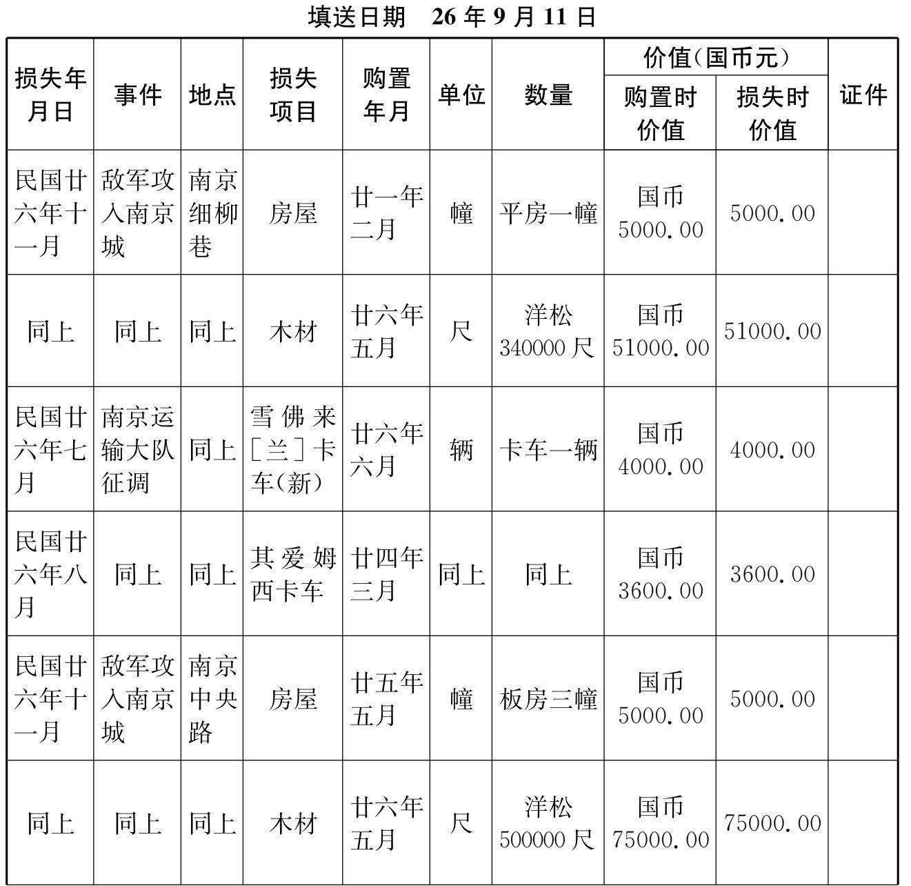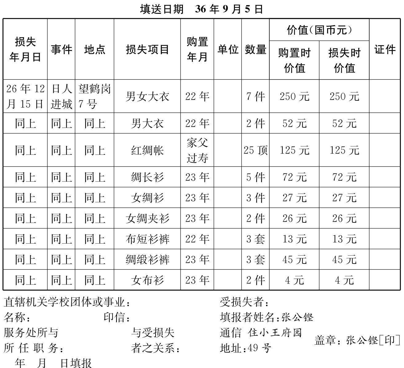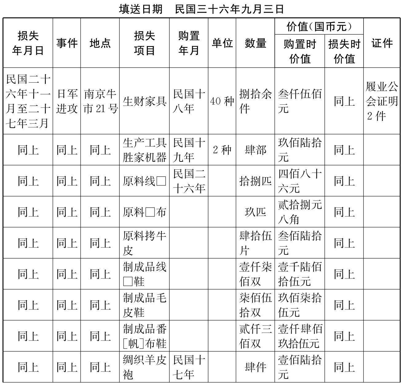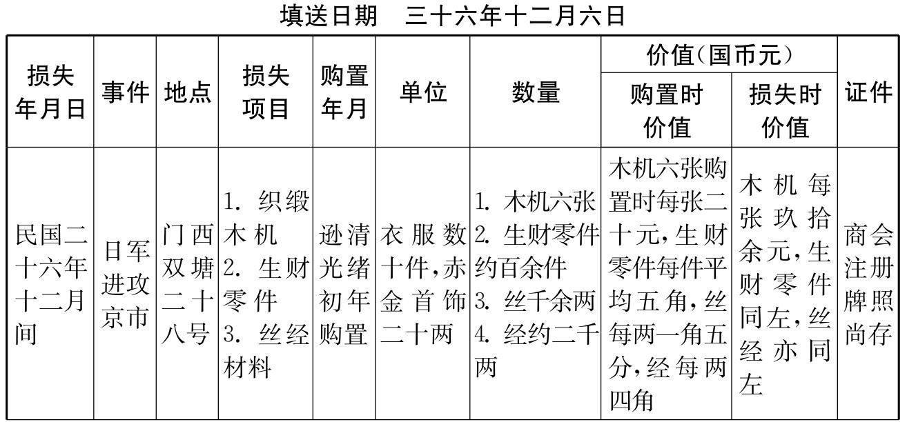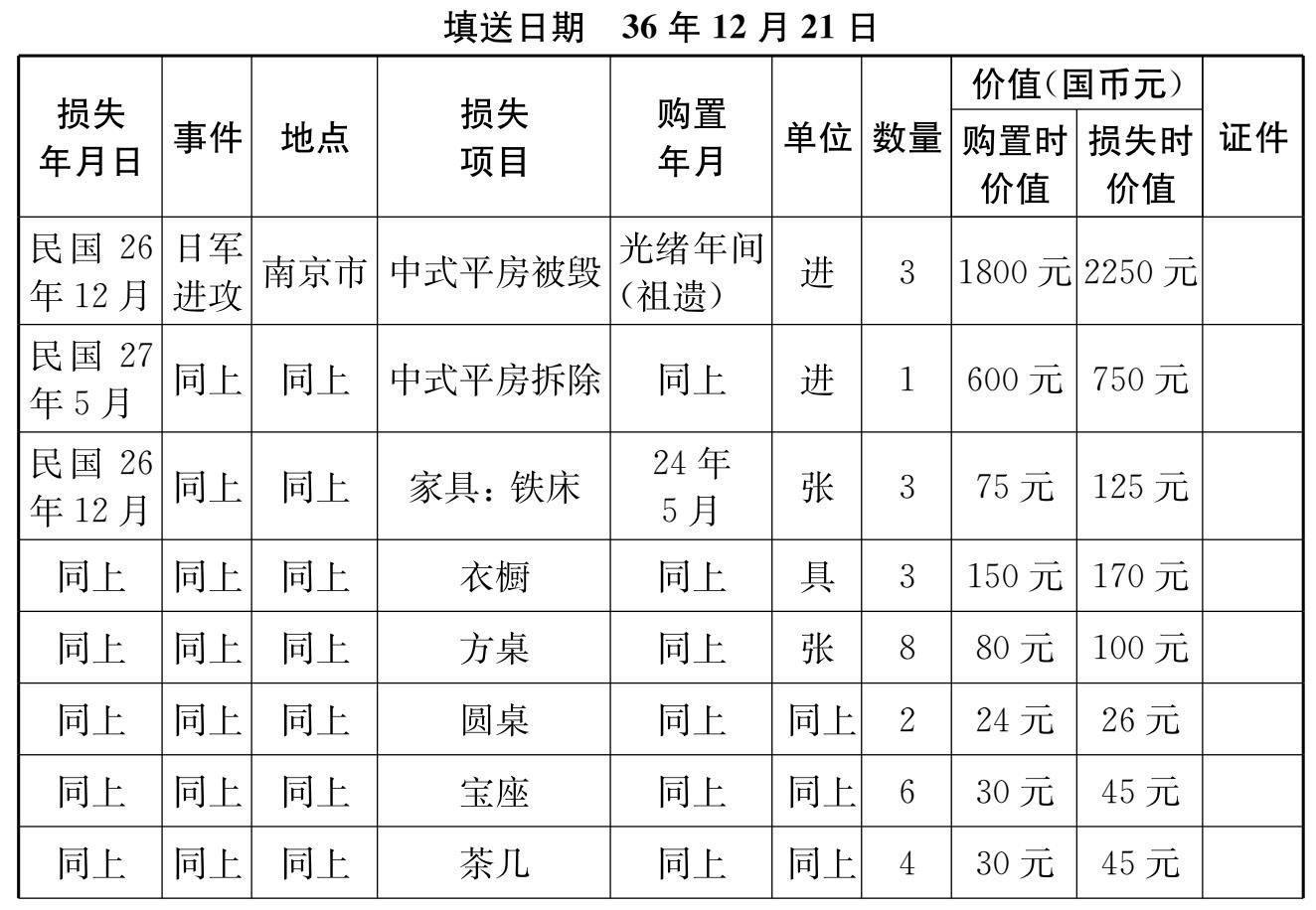 ② 本格及其上面几格填写位置可能有误,疑为“损失时价值”。原档如此。