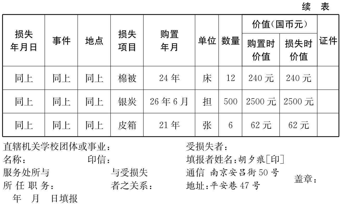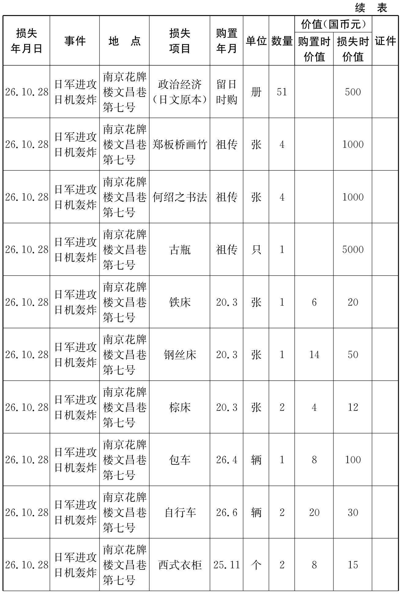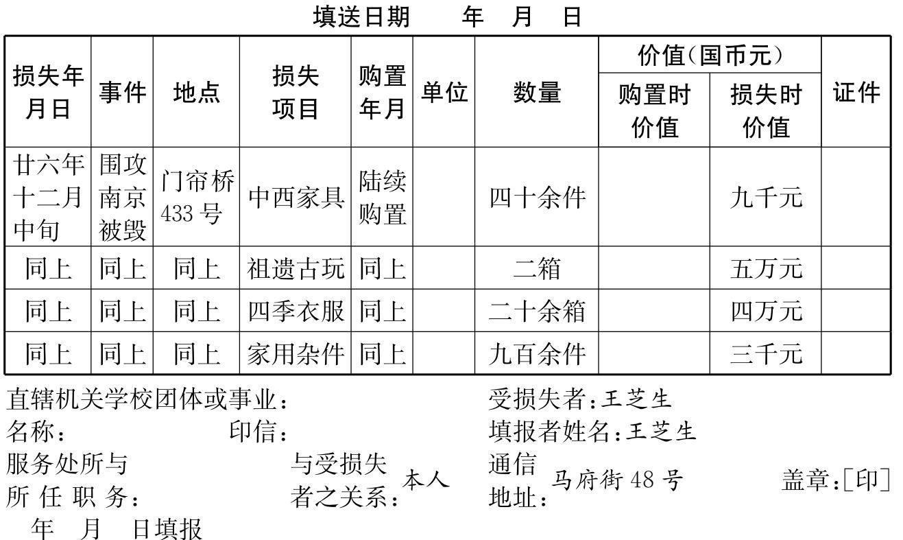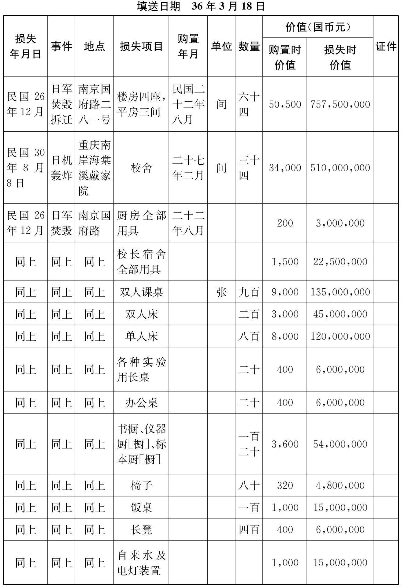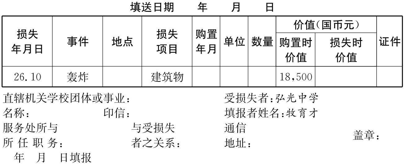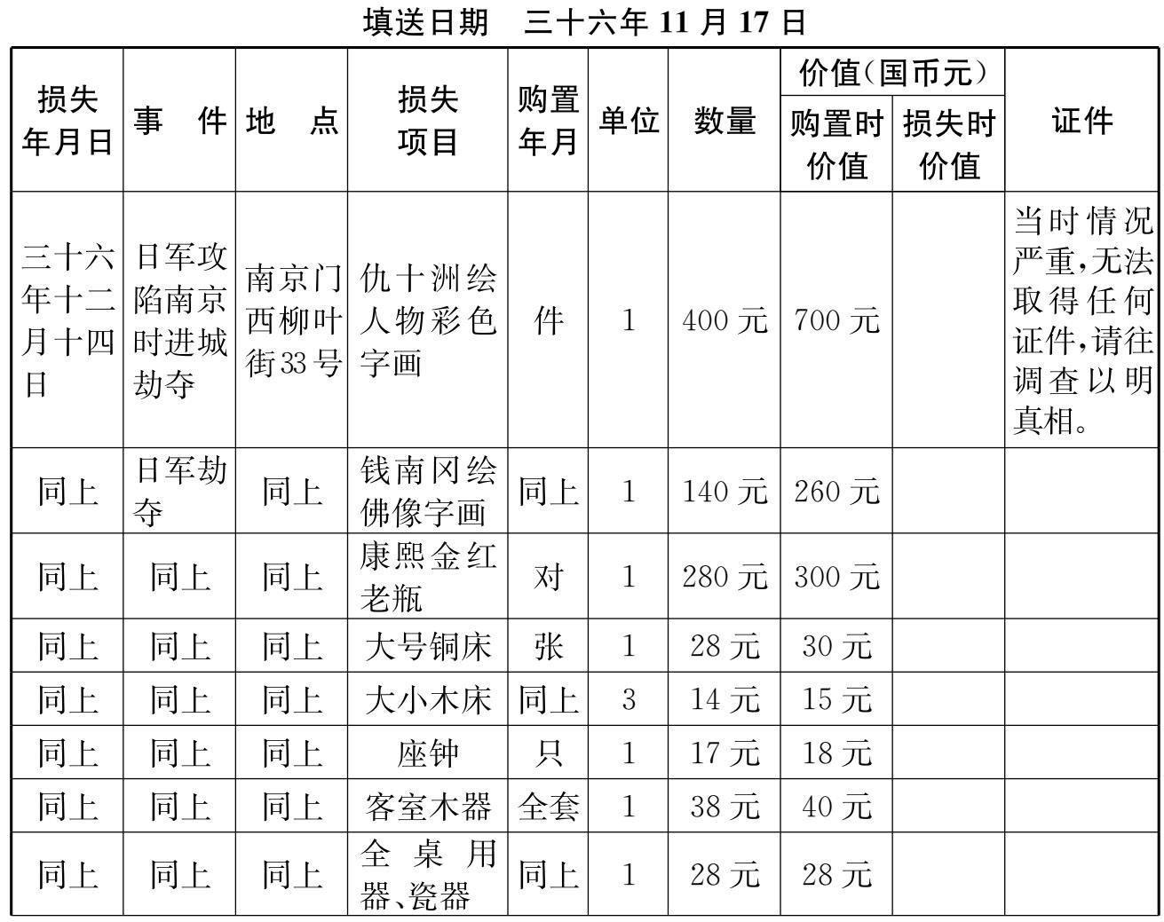 ② 本格及其上面几格填写位置可能有误,疑为“损失时价值”。原档如此。