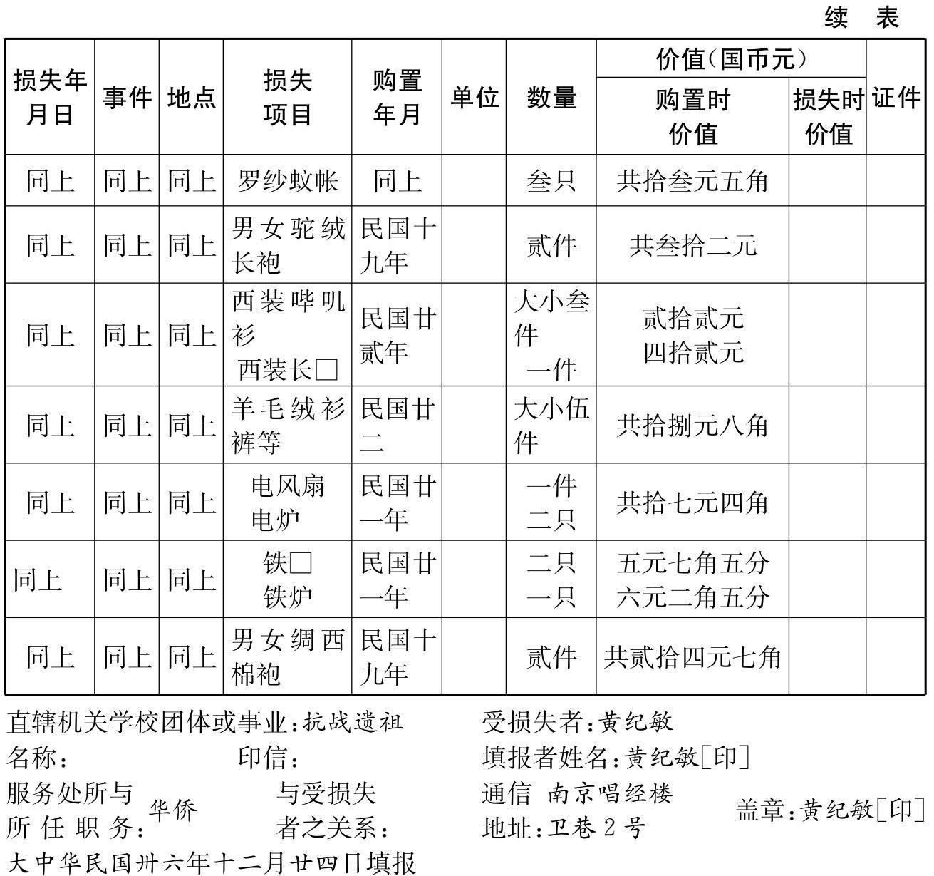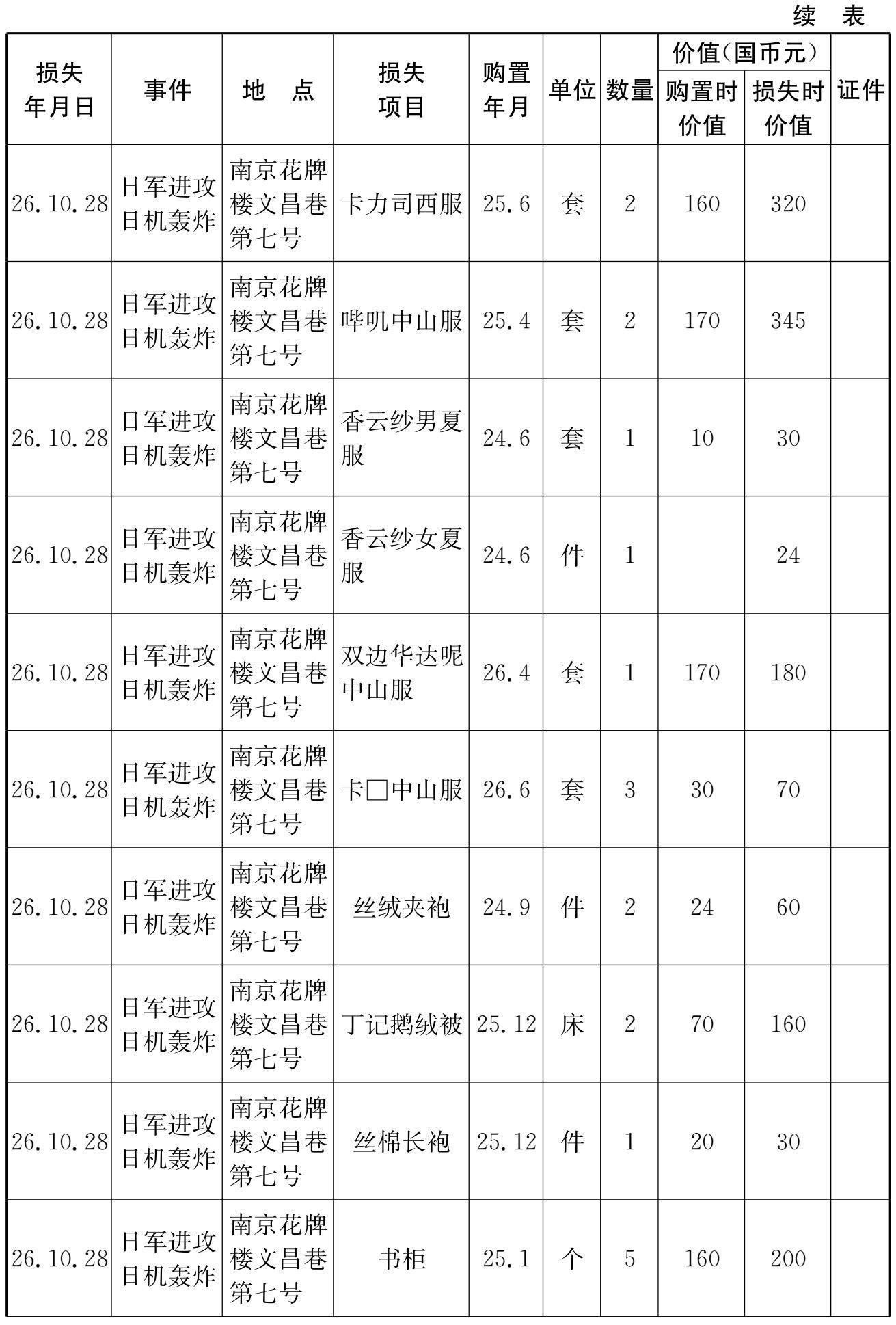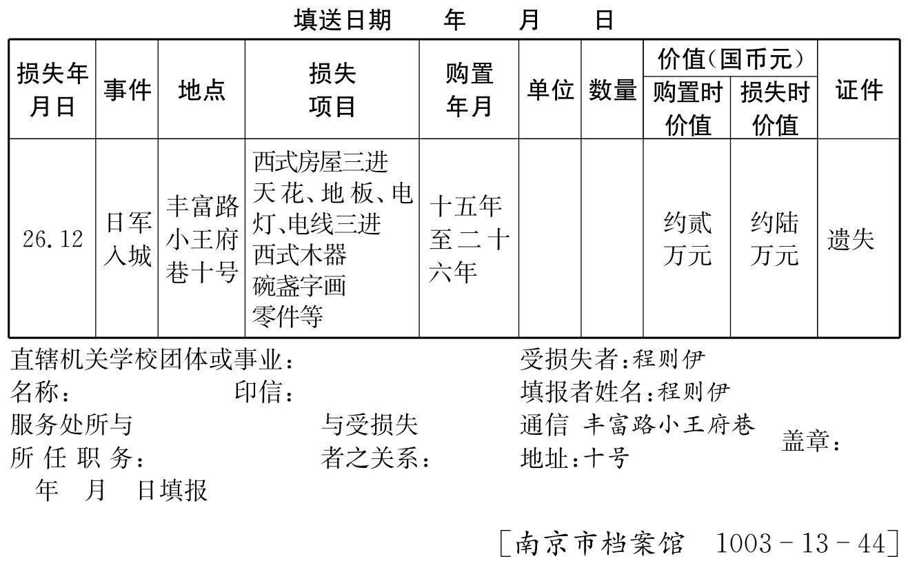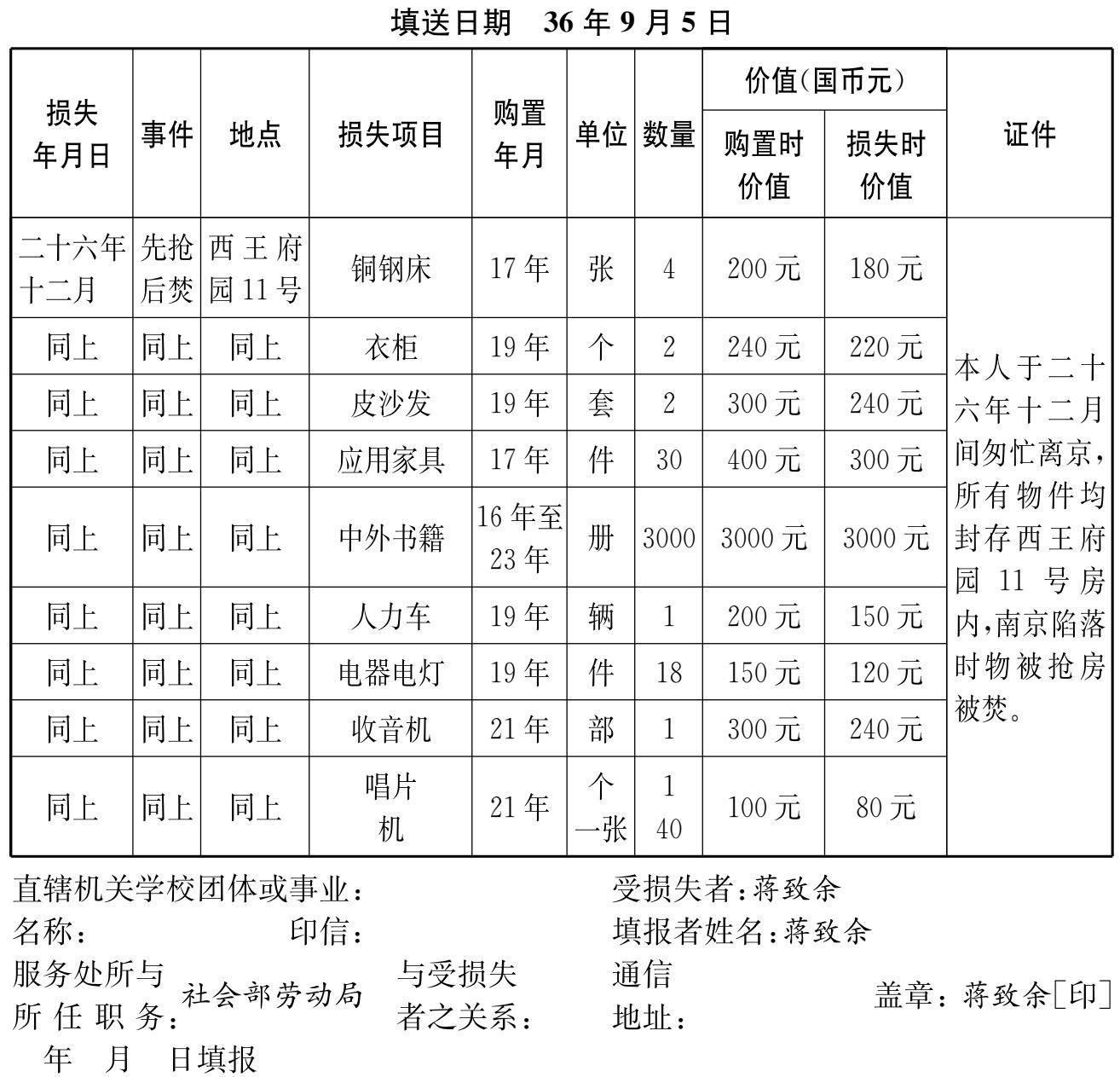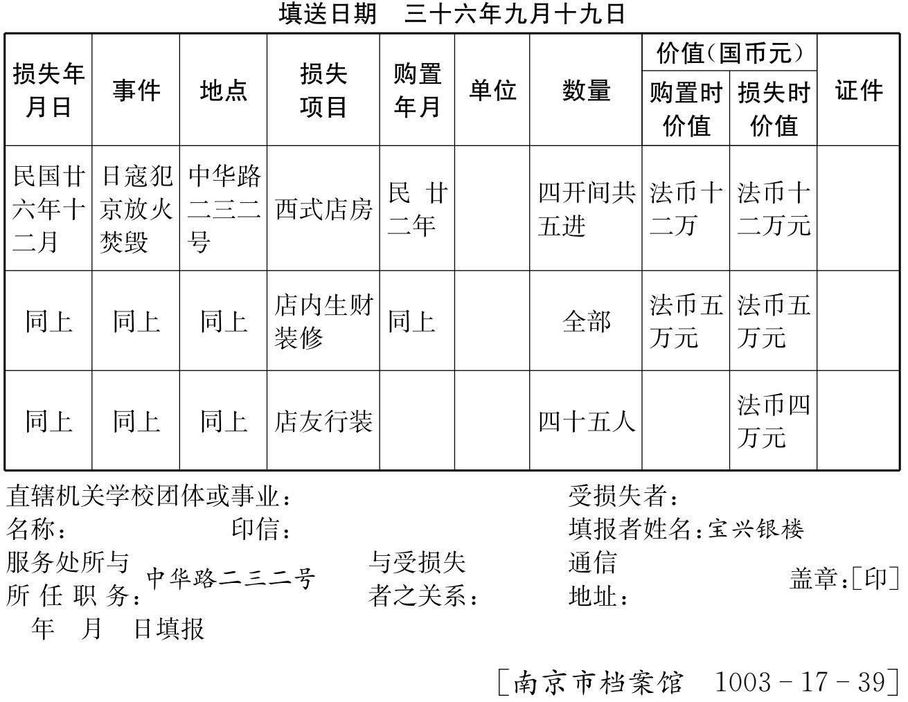 ② 本格及其上面几格填写位置可能有误,疑为“损失时价值”。原档如此。