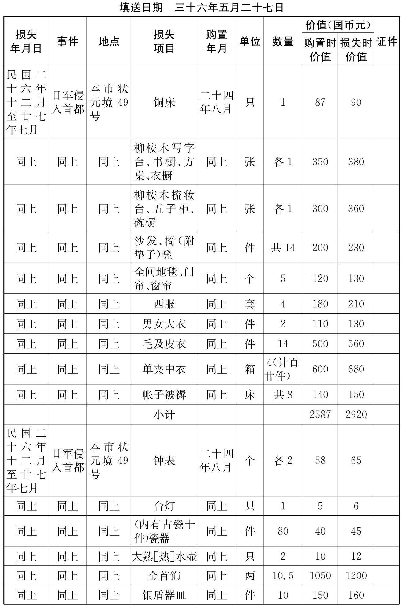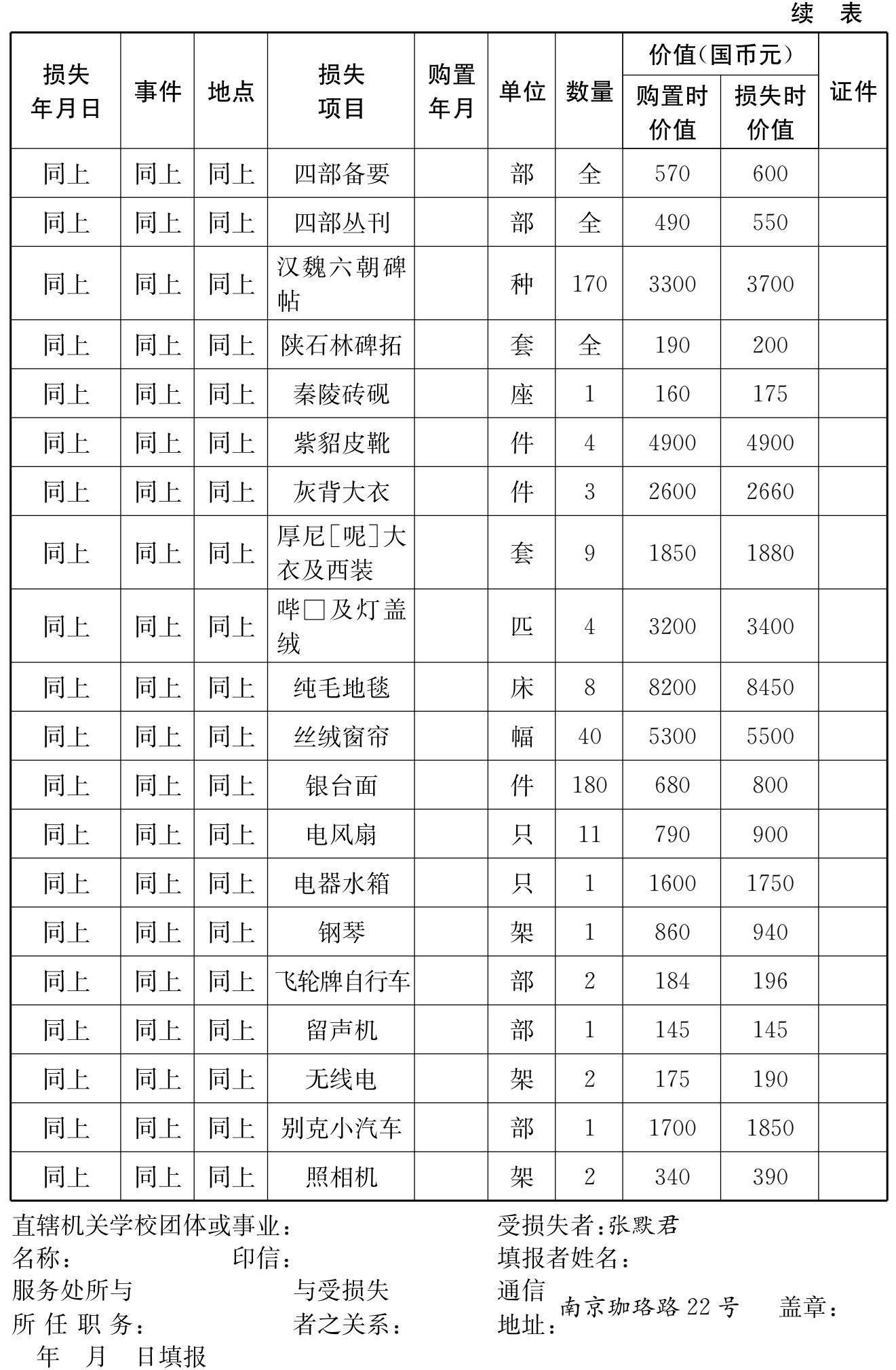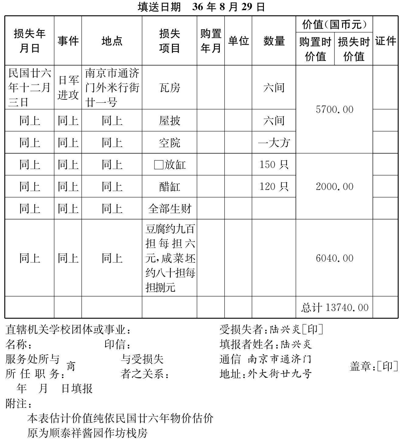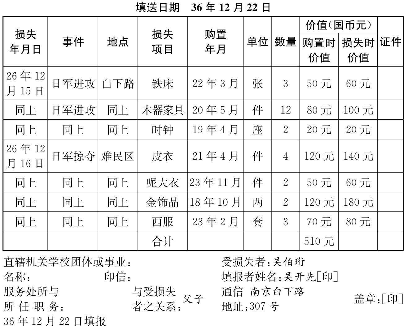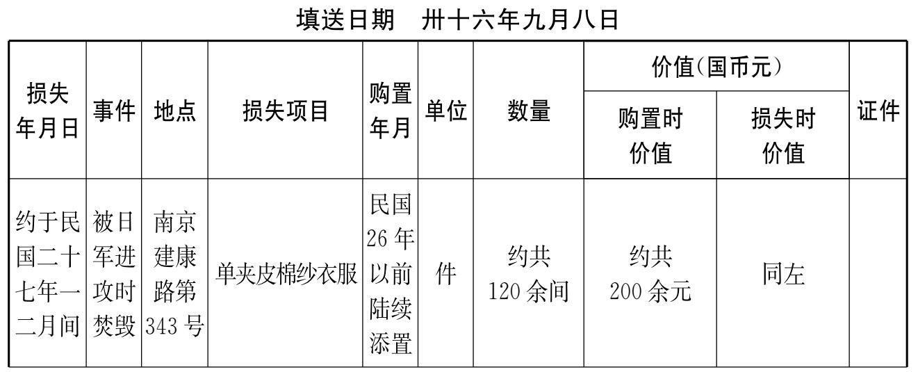 ② 本格及其上面几格填写位置可能有误,疑为“损失时价值”。原档如此。