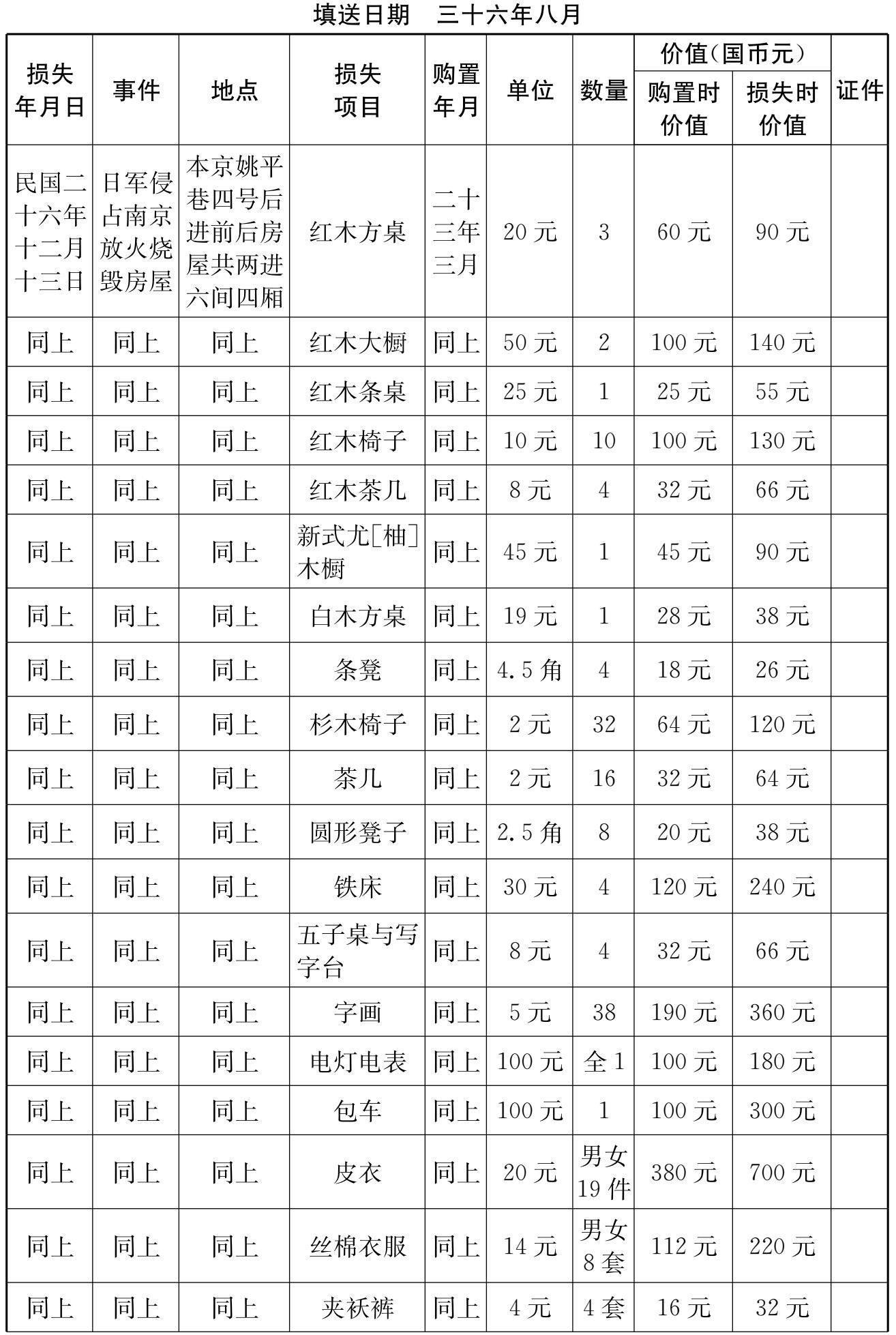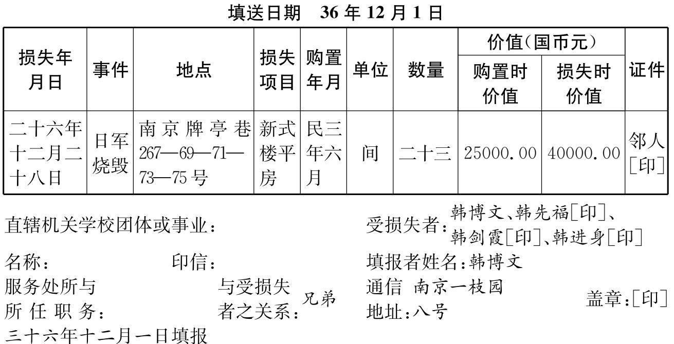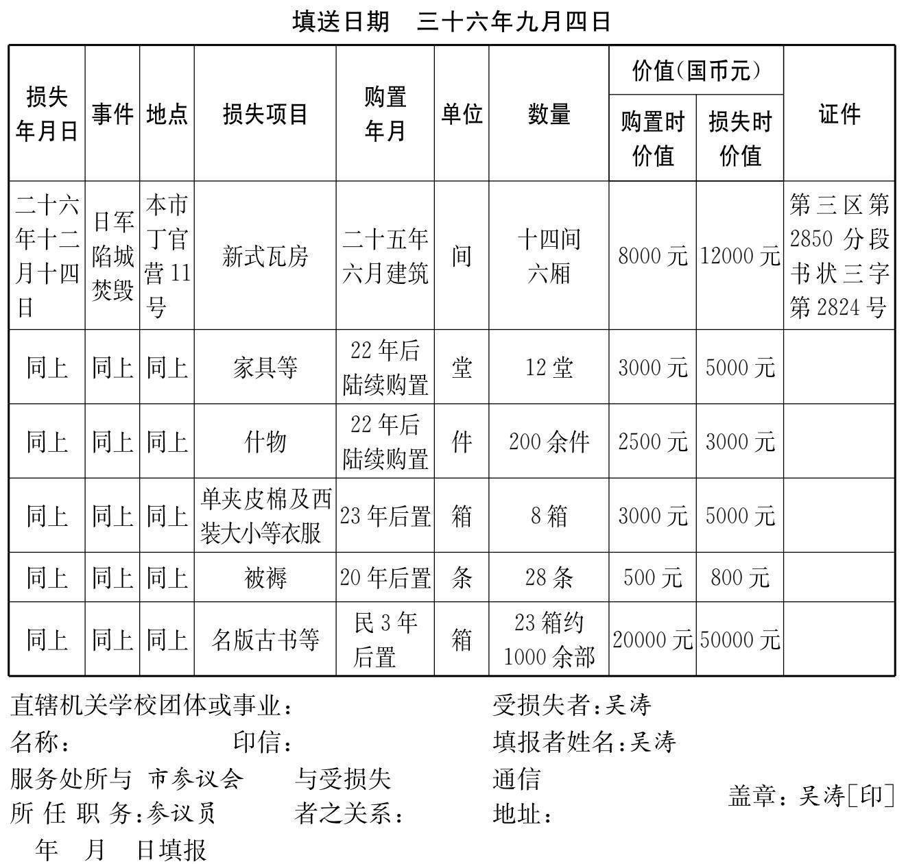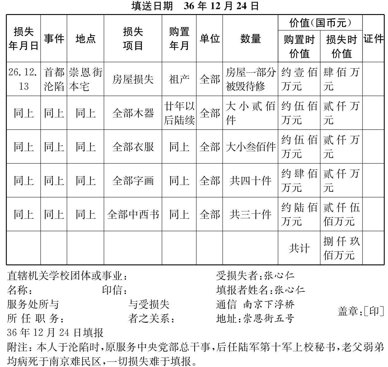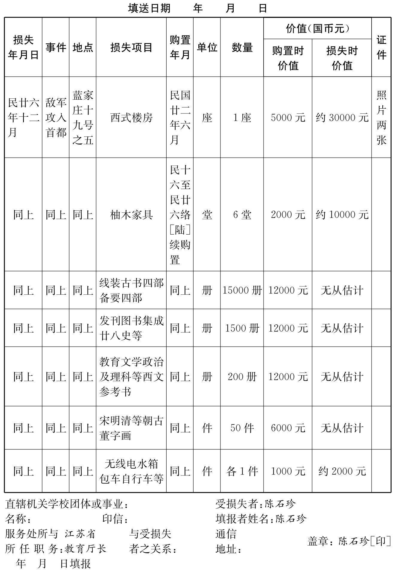 ② 本格及其上面几格填写位置可能有误,疑为“损失时价值”。原档如此。