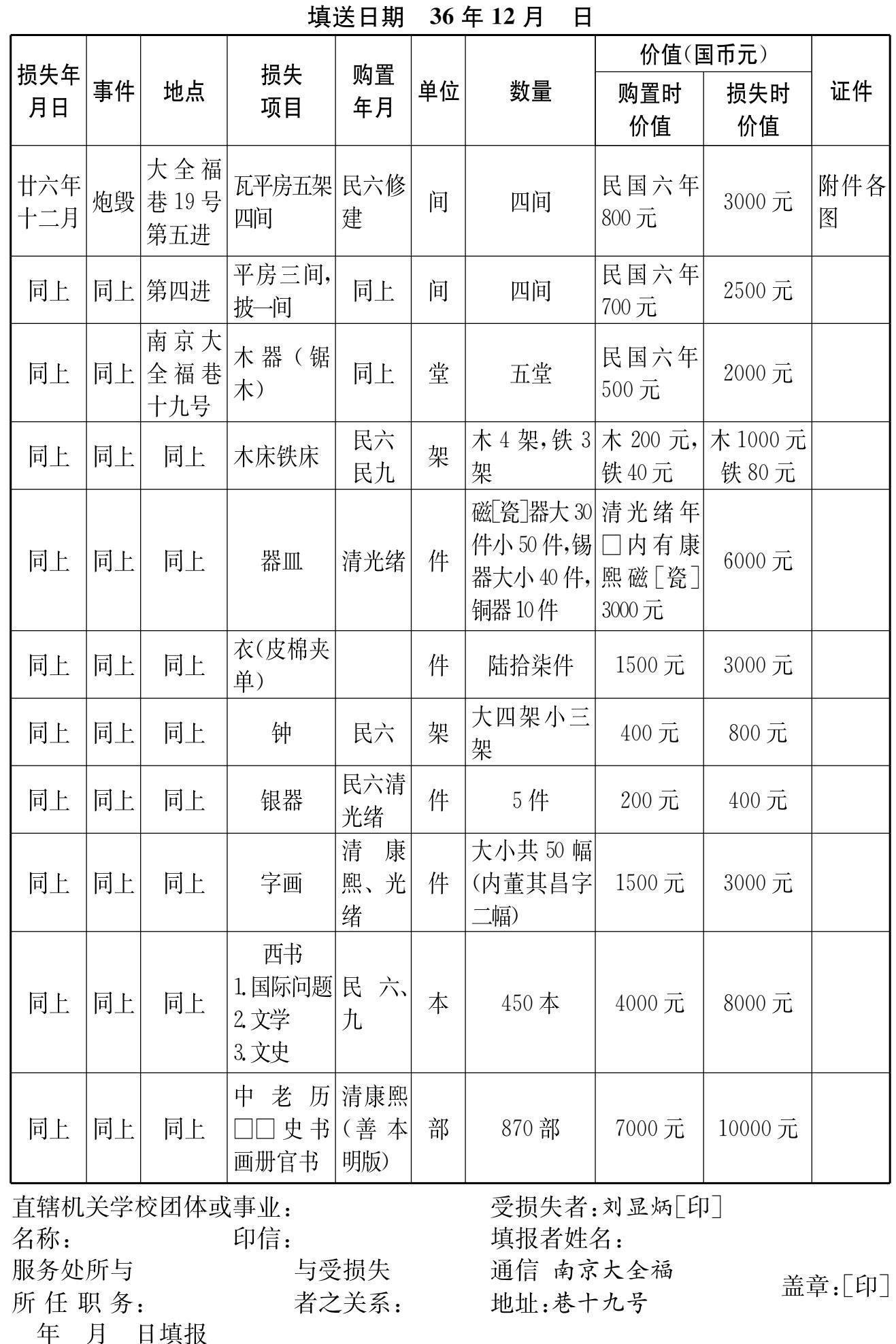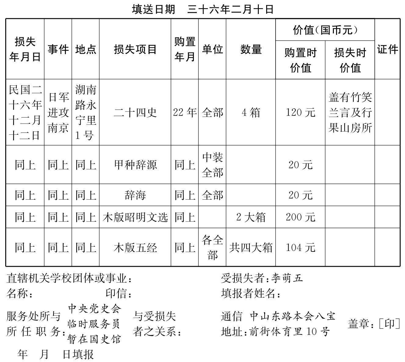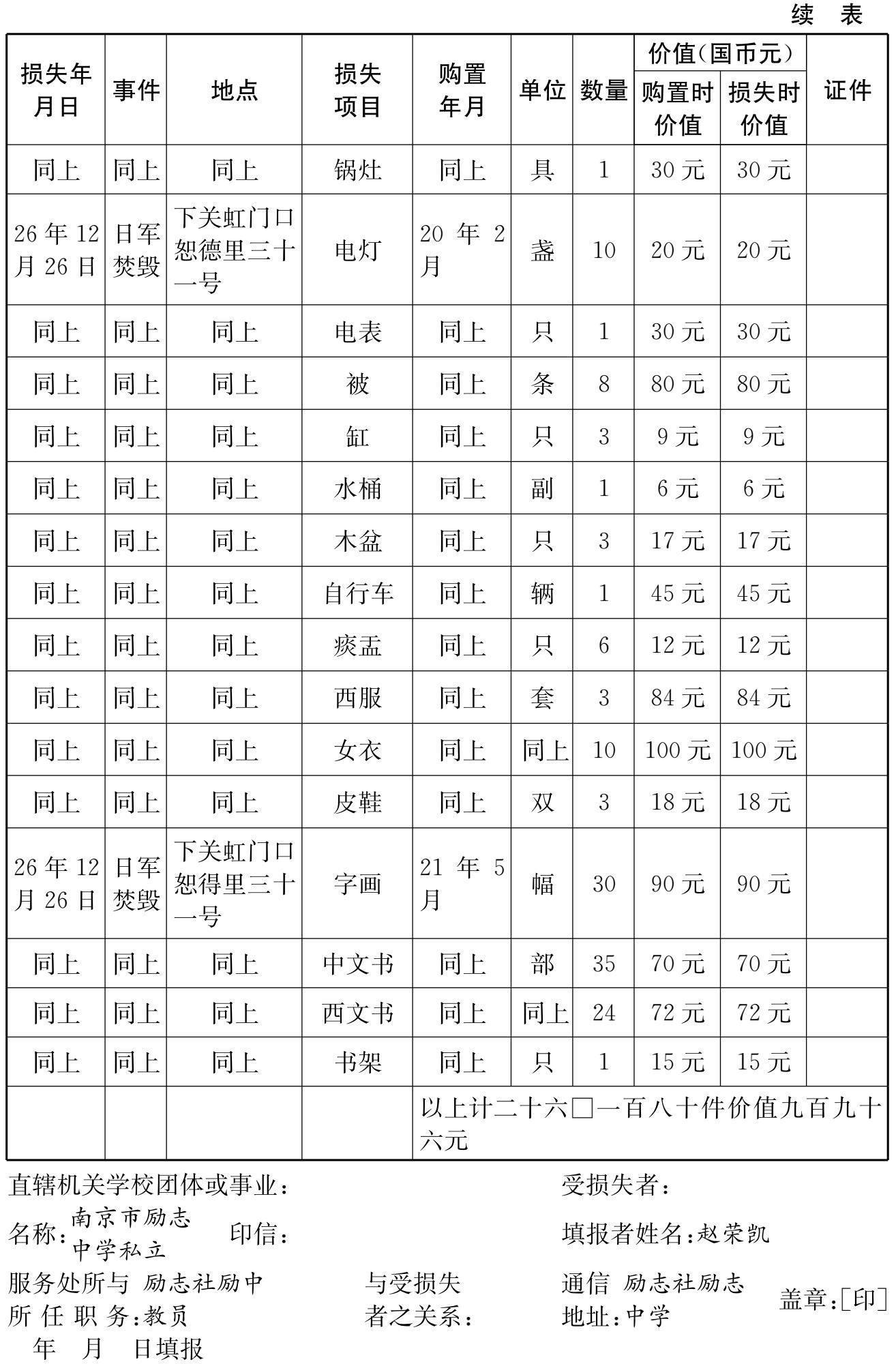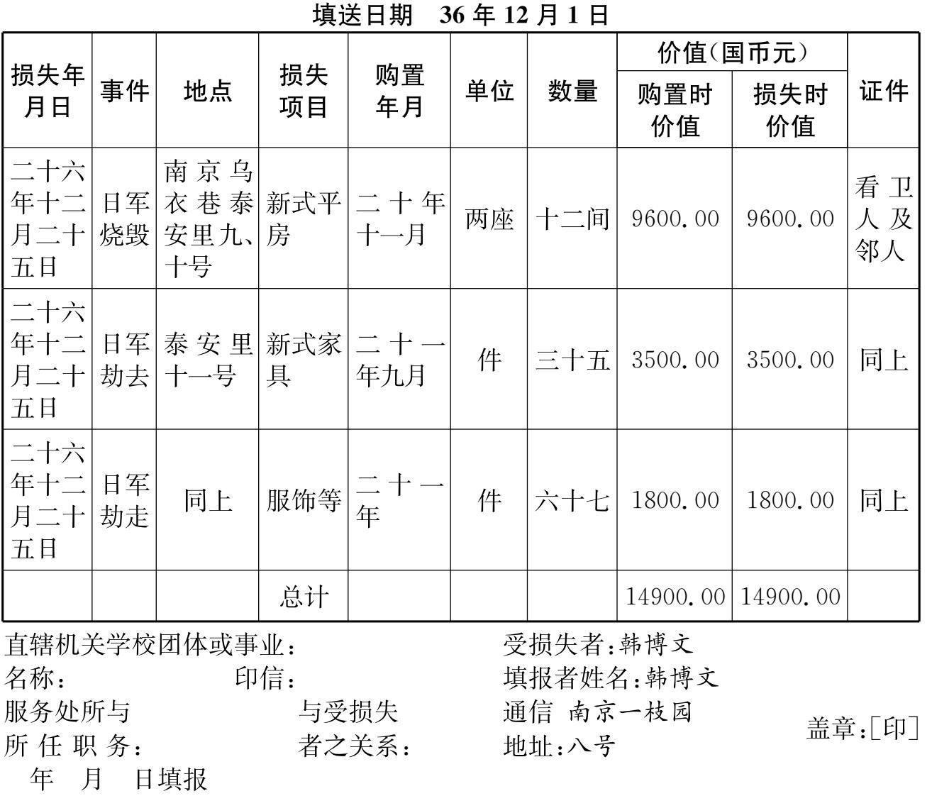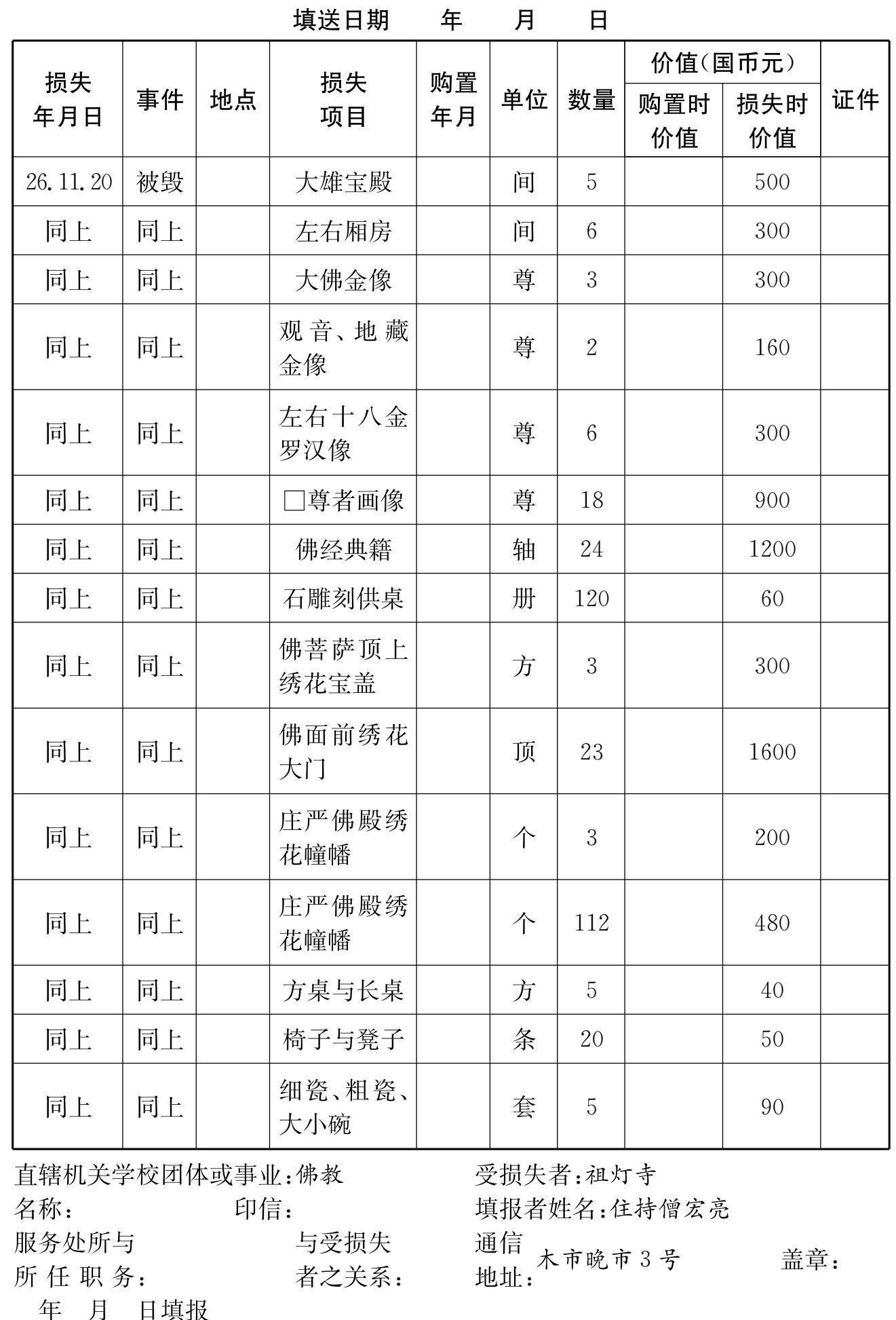 ② 本格及其上面几格填写位置可能有误,疑为“损失时价值”。原档如此。