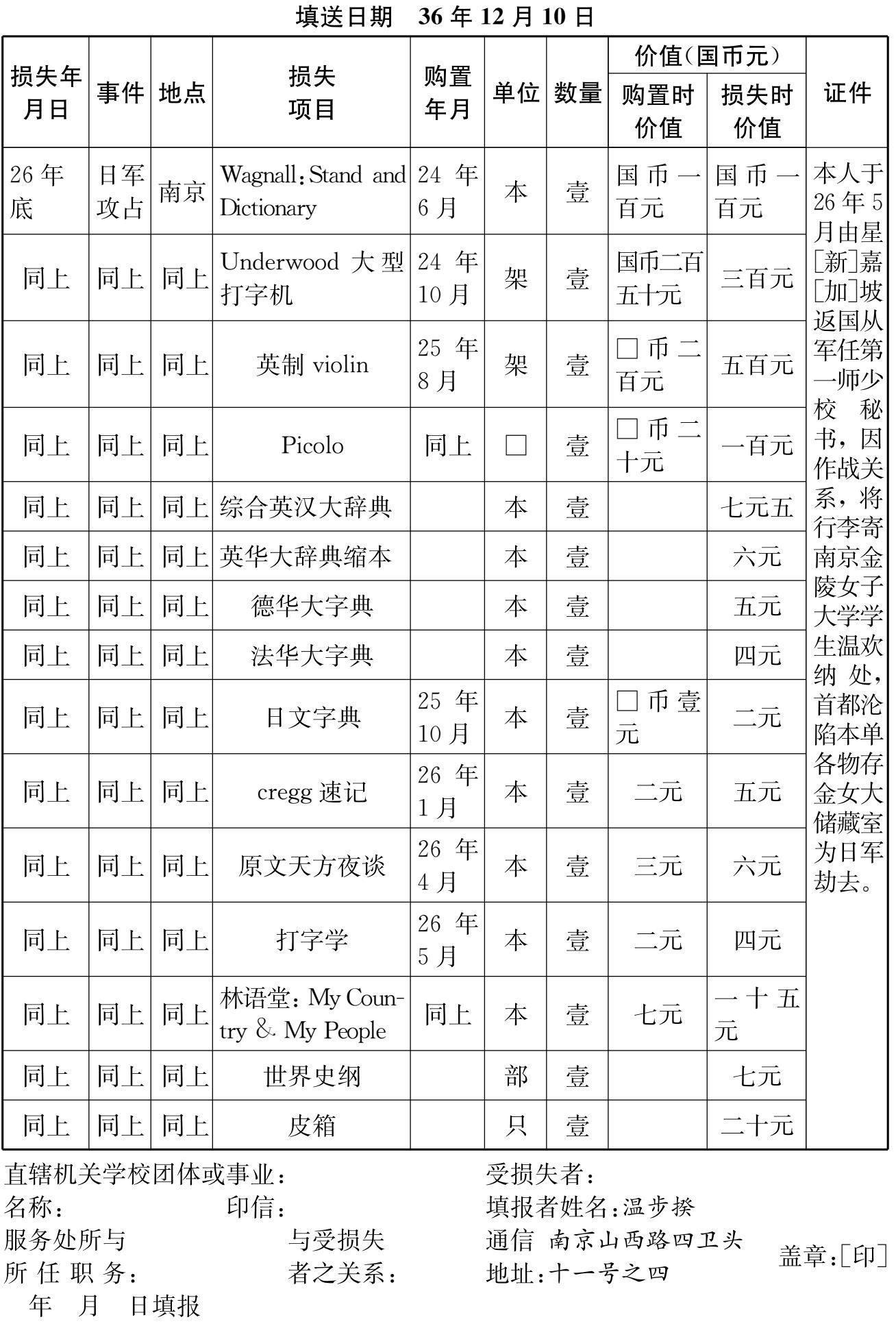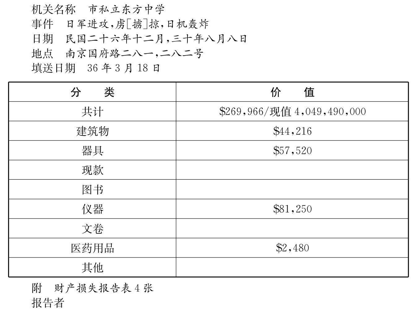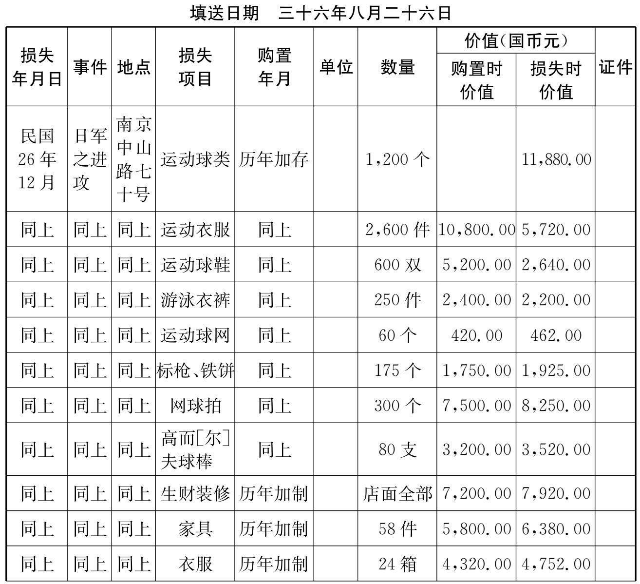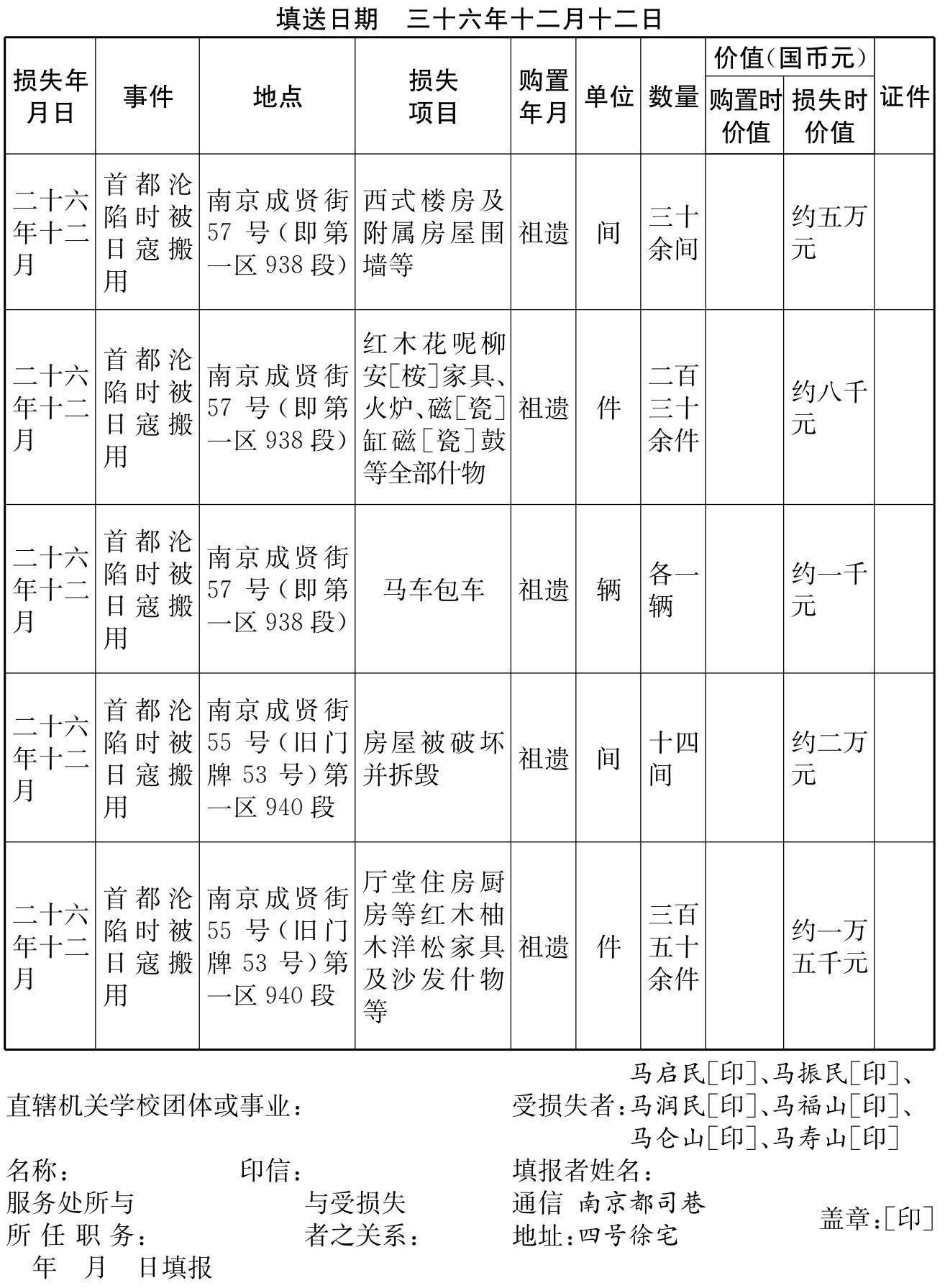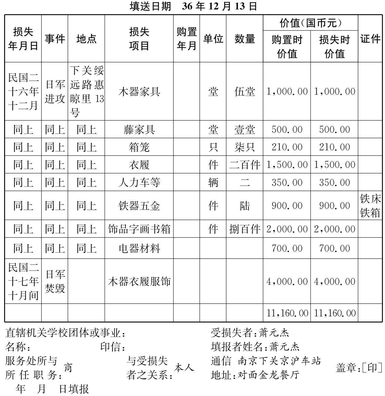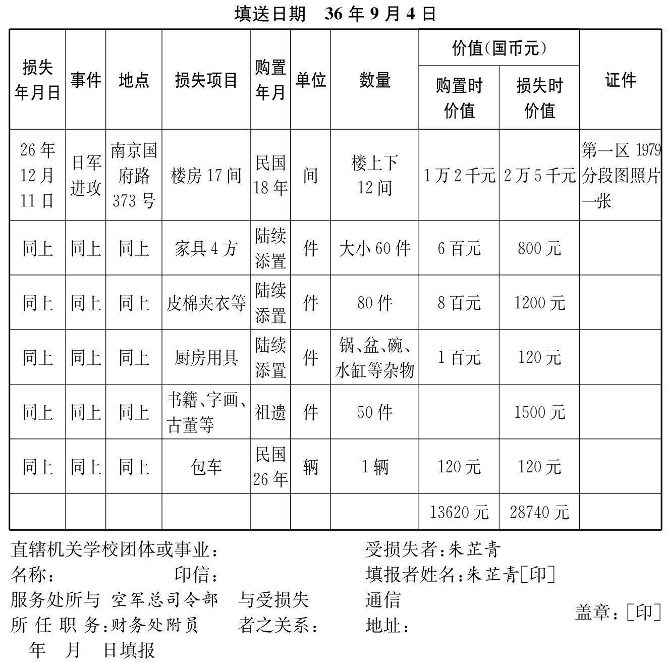 ② 本格及其上面几格填写位置可能有误,疑为“损失时价值”。原档如此。