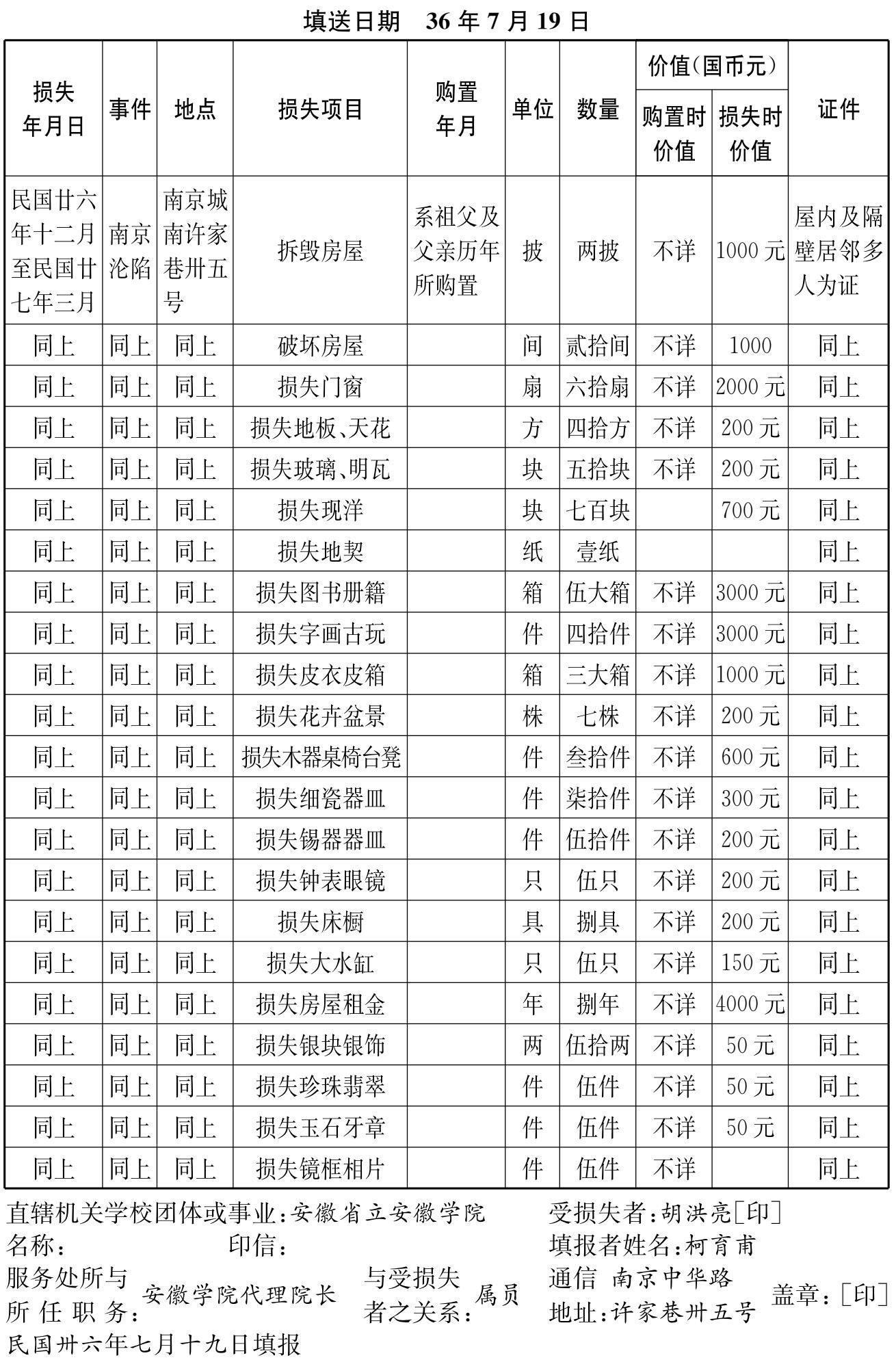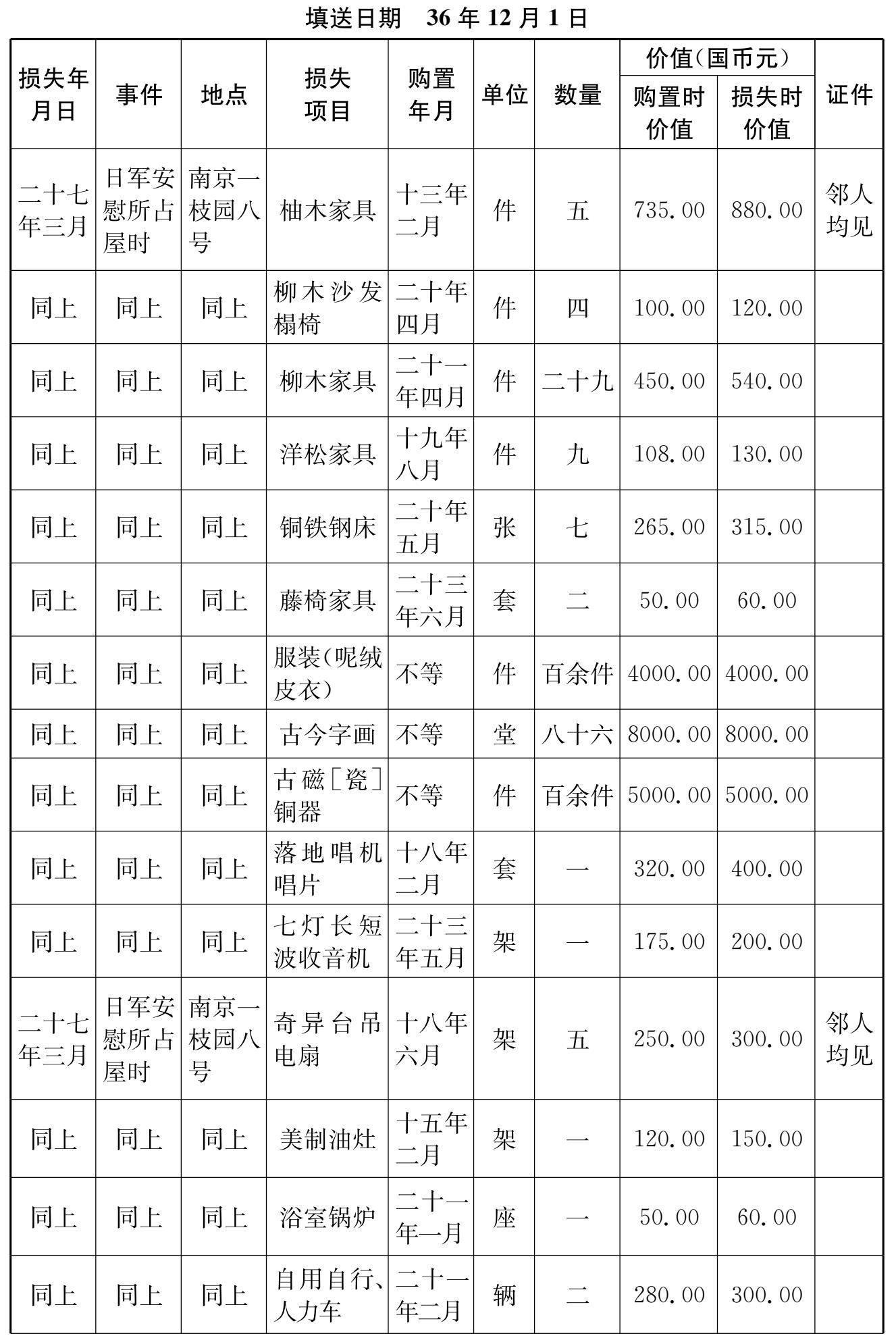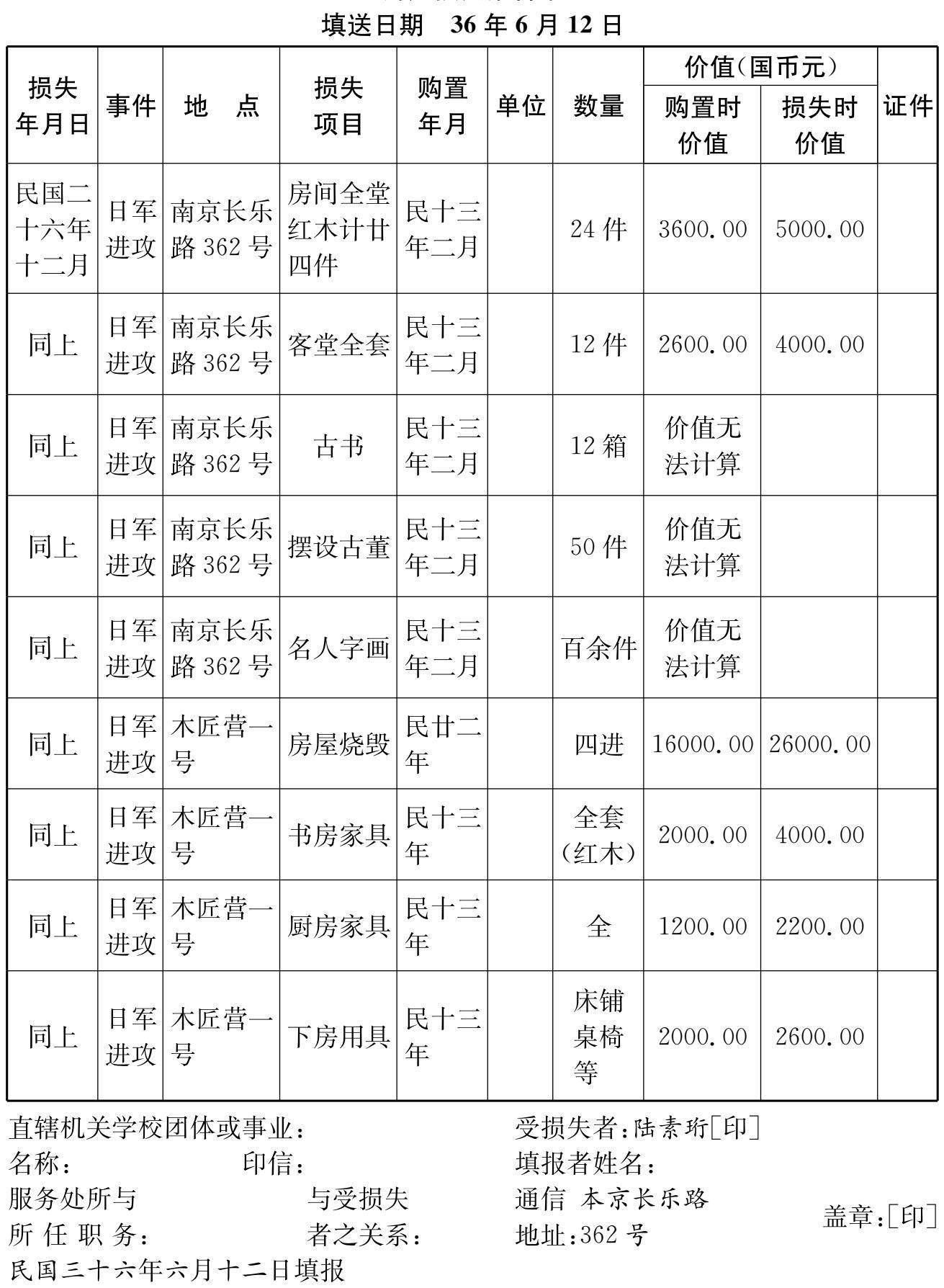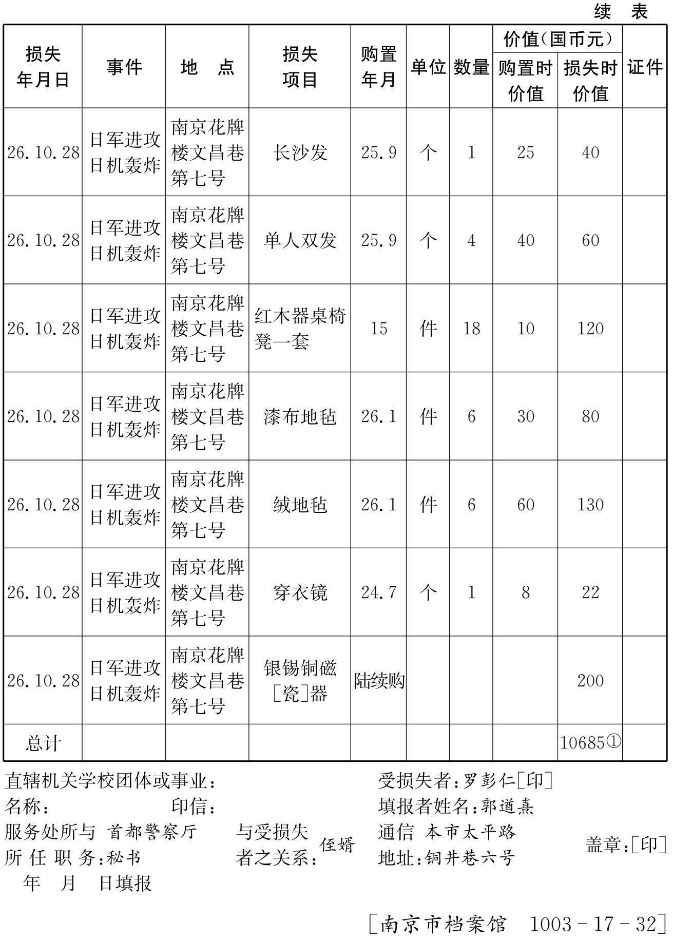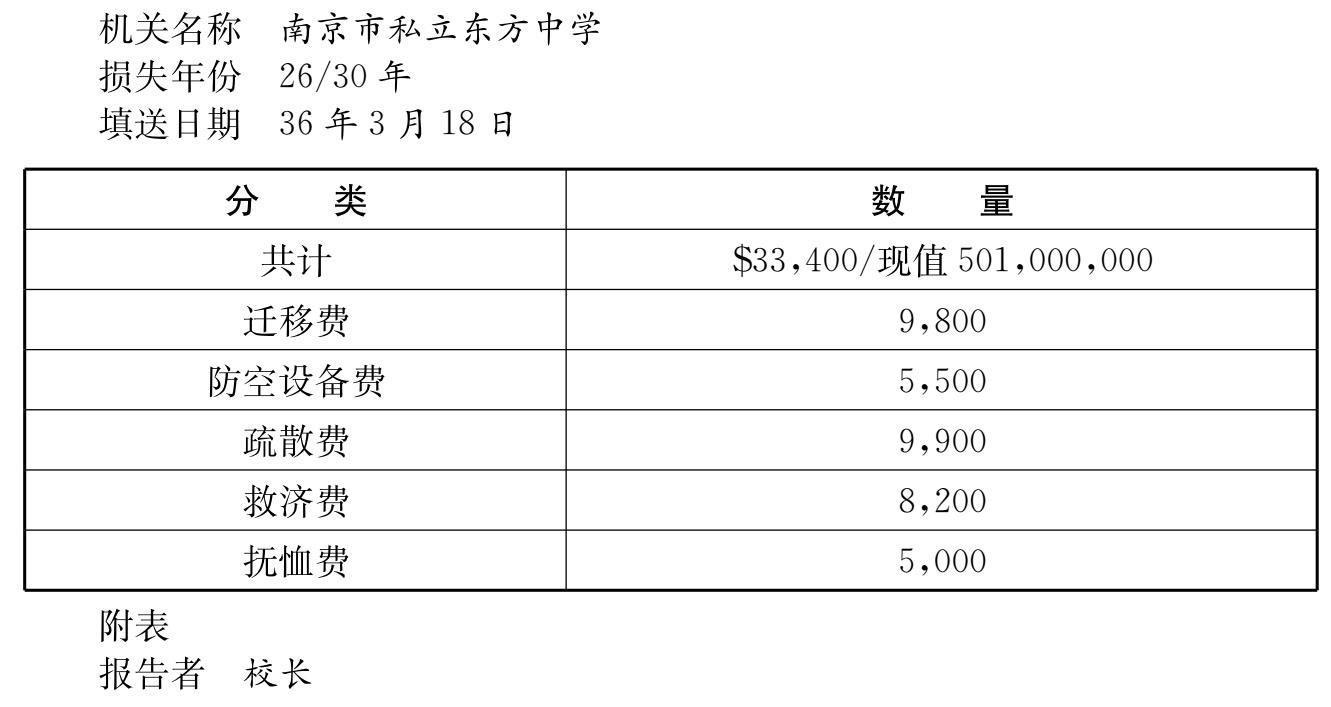 ② 本格及其上面几格填写位置可能有误,疑为“损失时价值”。原档如此。