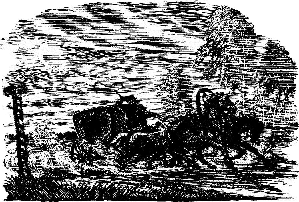 驿车在烟尘中辘辘飞奔,