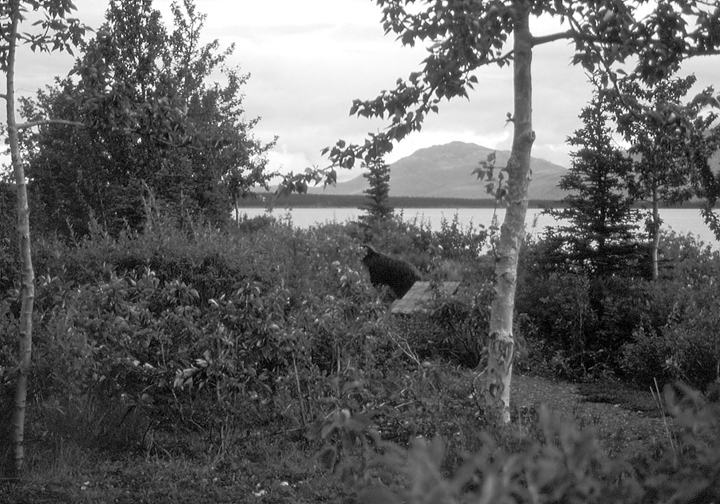 好不容易跑回帐篷,我迅速爬进去,用颤抖的双手从背包里拿出相机,向前挨近大熊,拍了张照片,再度全力狂奔,逃命而去。不知道大熊有没有注意到我,竟然一次也没回头往我这边看。