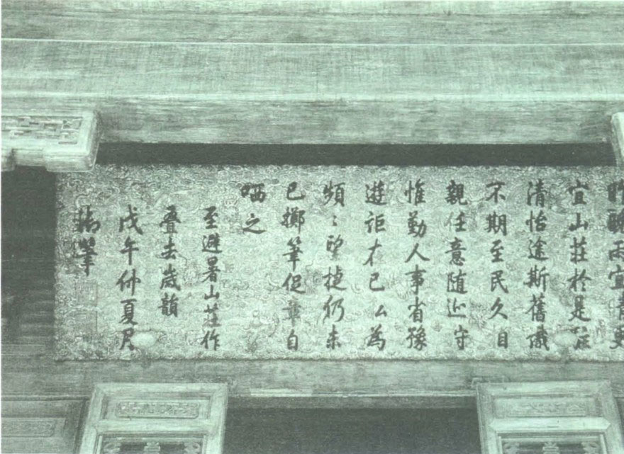 我在山庄松云峡细读乾隆写了六首诗的那座石碑时,在碑的西侧又读到他儿子嘉庆的一首。嘉庆即位后经过这里,读了父亲那些得意洋洋的诗作后不禁长叹一声:父亲的诗真是深奥,而我这个做儿子的却实在觉得肩上的担子太重了!( “瞻题蕴精奥,守位重仔肩” )嘉庆为人比较懦弱宽厚,在父亲留下的这副担子前不知如何是好。他一生都在面对内忧外患,最后不明不白地死在避暑山庄。