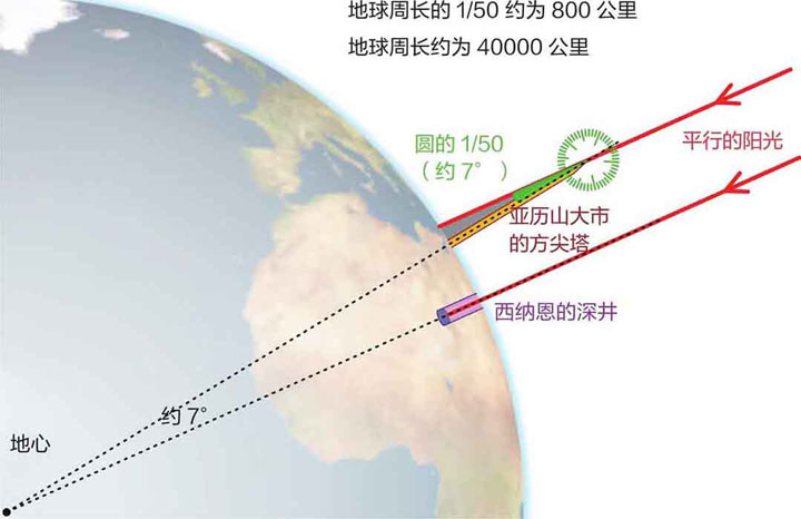 当然,在过去没有飞机的年代,这样的实验就做不成了。不过科学家依然想出了测量地球大小的好办法。世界上第一个准确地测出地球周长的人,是古埃及著名哲学家埃拉托色尼。