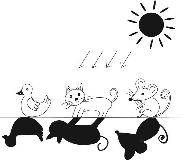 他是怎么发现这件事的呢?其实很简单。小朋友们都知道,在晴天出太阳的时候,我们总能在地面上看到自己的影子。这是由于我们的身体挡住了太阳光,让它无法照射到我们身后地面的缘故。更细心的小朋友还会发现,我们影子的形状其实和我们的身体差不多。换句话说,只要能知道一个物体影子的形状,我们就能大致推断出这个物体到底长什么样。亚里士多德就想,既然我们搞不清整个大地的形状,那我们能不能弄清大地影子的形状呢?幸运的是,我们确实能看到大地在天上的影子,这就是所谓的月食。